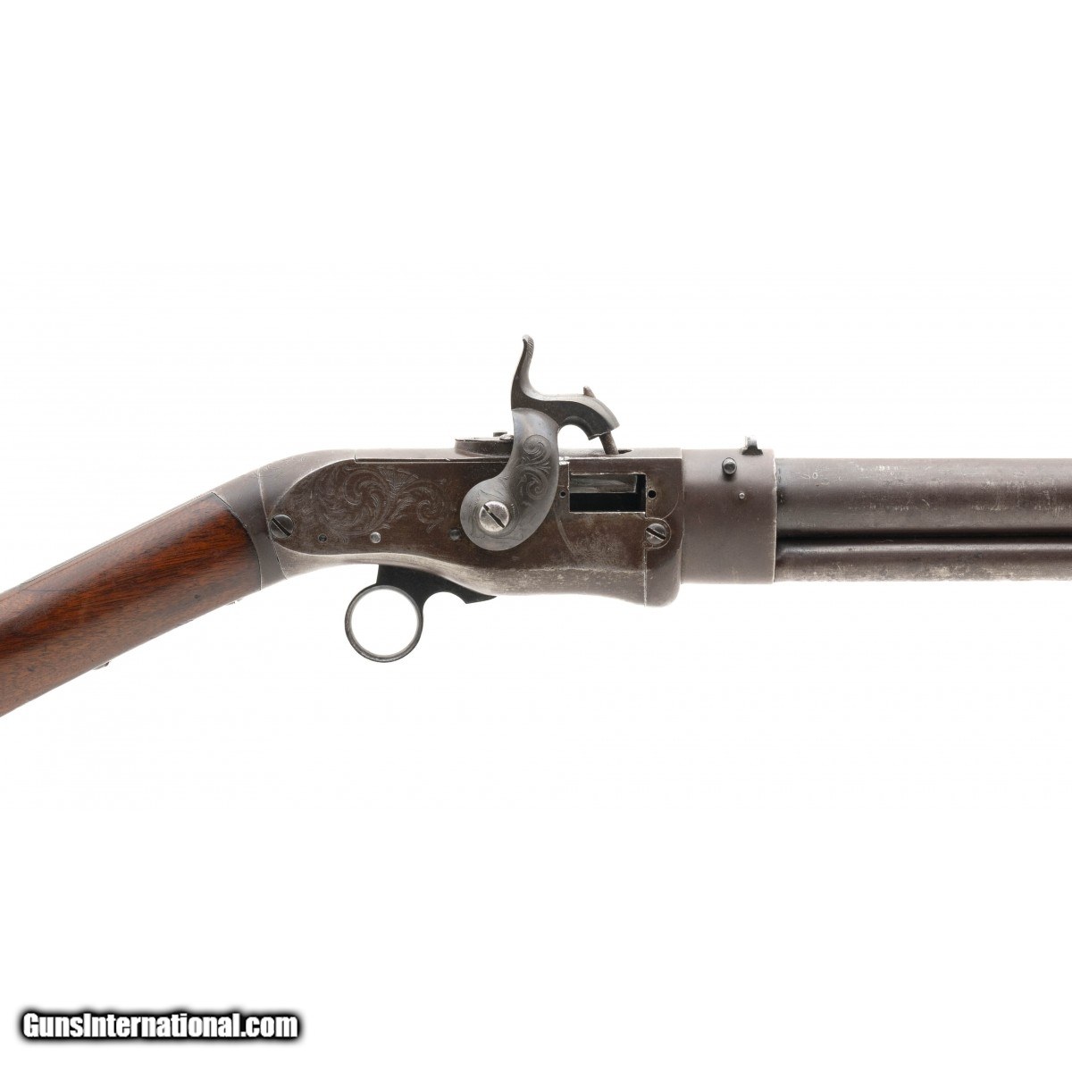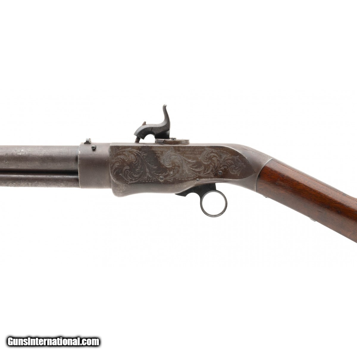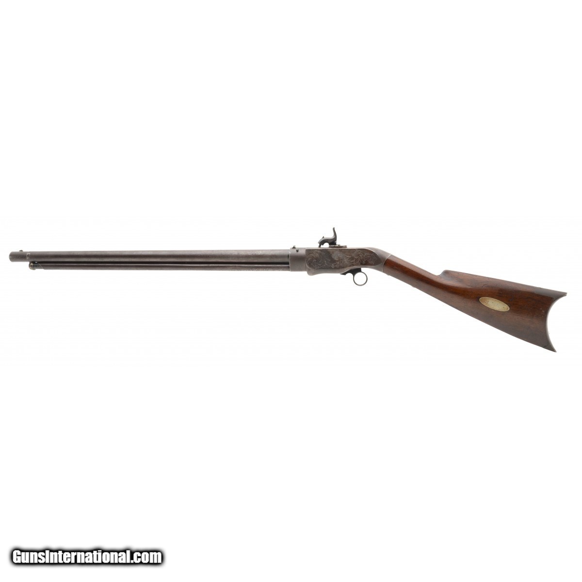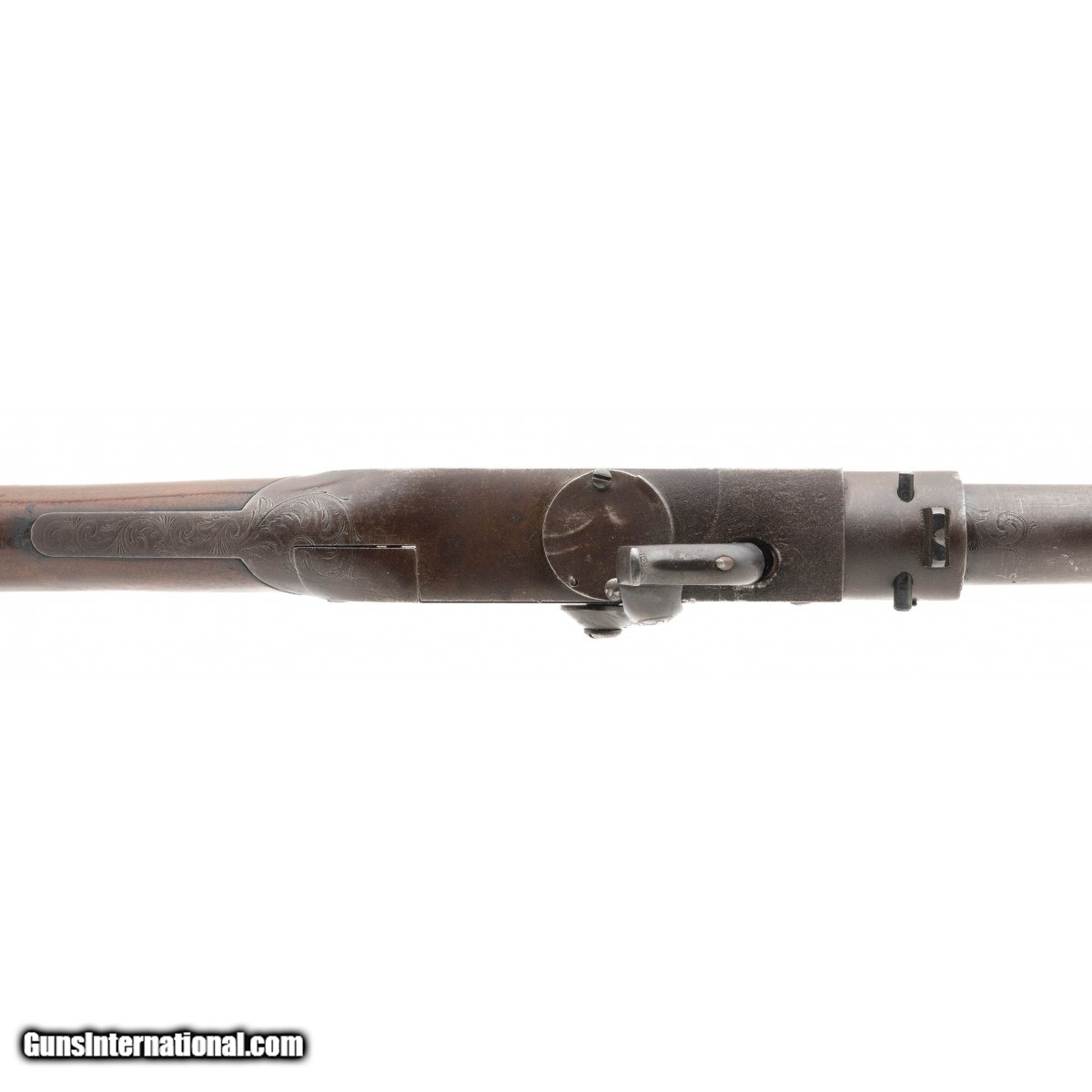 Description: "Serial 169. Made in the 1850s. 54 caliber with a 24 ½" barrel. Very fine gun with over 50% of the original brown finish. Wood is very good with most of the original varnish. All markings are nice and sharp. Action works well. SOLD Antique: Yes |