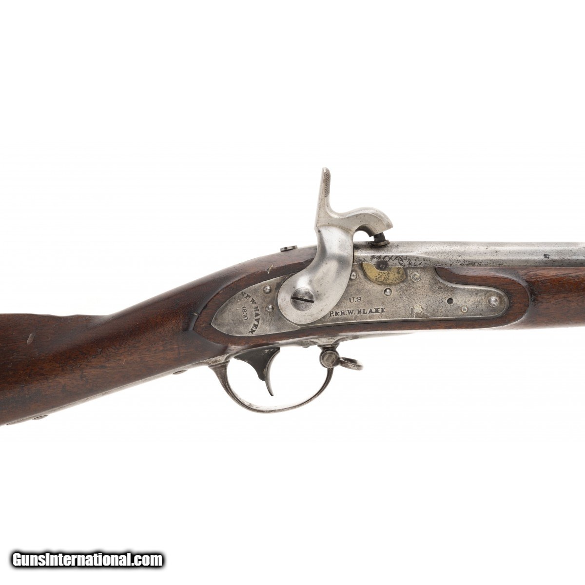 U.S. Contract model 1816 .69 caliber smooth bore musket by P. & E.W. Blake in overall good condition. Metal is in armory bright finish, lock is dated 1830. Wood is good with two handsome cartouches present. Action is nice and tight. An exceptional example of a converted 1816.
