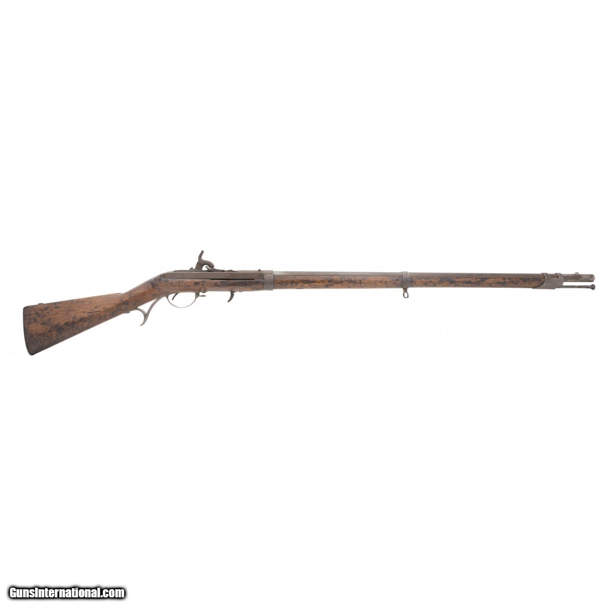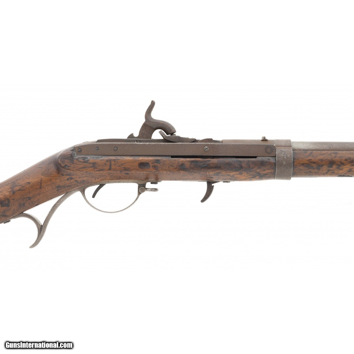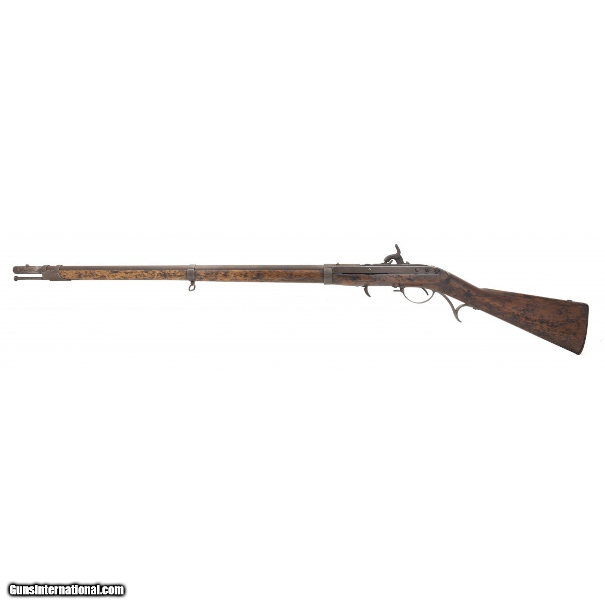 Description: " This is a flintlock Model 1819 that was arsenal-altered to percussion. The 32 5/8"" round 52 caliber barrel has a dark bore with strong rifling. As is correct, the rifling stops about 1.5"" short of the muzzle. All the metal is brown with even pitting. The breechblock is marked J.H. HALL/H. FERRY/US/1834. The stock is good with numerous storage/use dents and dings. The swivels and ramrod are present. The action functions correctly with the exception that half cock is weak. This is a representative Hall percussion alteration musket that has suffered from poor storage. It is priced accordingly. SOLD Antique: Yes |
