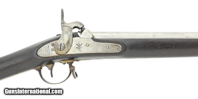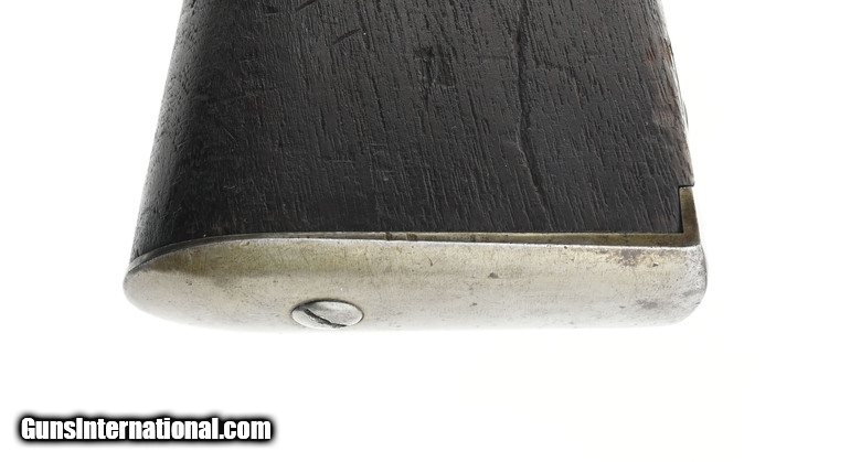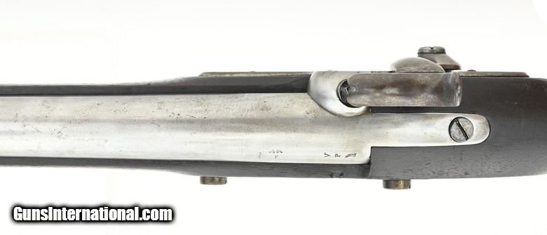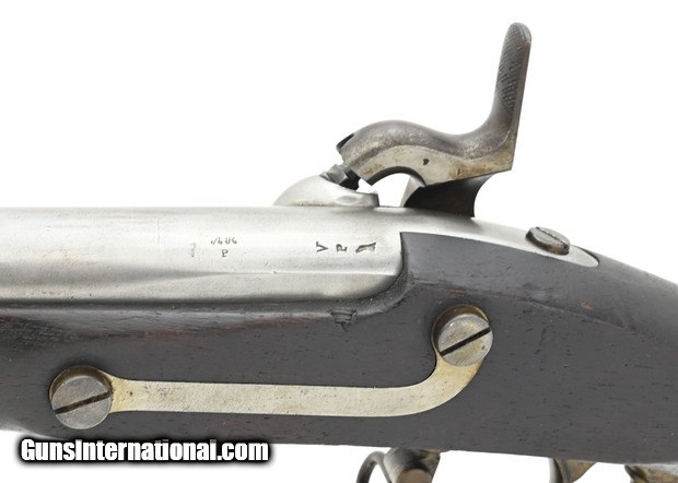 Description: " U.S. Model 1842 Percussion Musket. Made by Harpers Ferry Armory in 1847. The overall length is approx. 57.5”. The 42” round .69 caliber barrel has an excellent smooth bore. The breech is stamped V/P/eagle head with inspectors’ initials over P ahead of that. The lock has the eagle over US in the center and “Harpers/Ferry/1847” at the tail. There is no stock cartouche visible. All metal is bright with only very mild staining in a few places. The wood is fine with sharp edges and very few handling dings, including one at the barrel forward of the middle band. Both sling swivels and the ramrod are present. The action functions correctly. This is a great example of the last smoothbore .69 caliber U.S. musket. SOLD Antique: Yes |