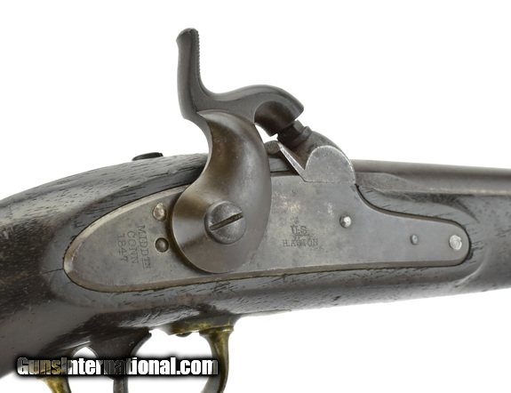Description: "U.S. Model 1842 Percussion Pistol by H. Aston, Middtown Conn. Lock dated 1847. Stock has excellent cartouches. Barrel marked U.S. and 1847 date on trench plug tang match the 1847 on lock. The action works perfectly. Barrel and lock have a smooth very pleasing patina. The butt cap has numerous surface dents which could be improved or removed by a good gunsmith. Pistol has the original captive ramrod. Stock is good plus with no chips or cracks. SOLD Antique: Yes |