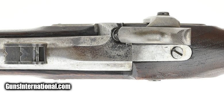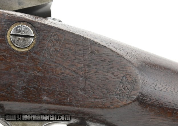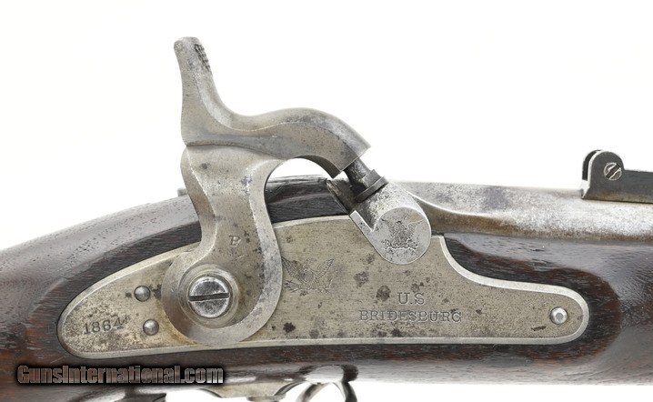 Description: " U.S. Model 1861 .58 caliber rifle-musket. Manufactured 1864 by Alfred Jenks & Son. Lock is “1864” dated and marked “US Bridesburg”. Barrel and lock are turning to a gray/brown patina. Stock has two nice cartouches. Very good overall Civil War rifle-musket. SOLD Antique: Yes |