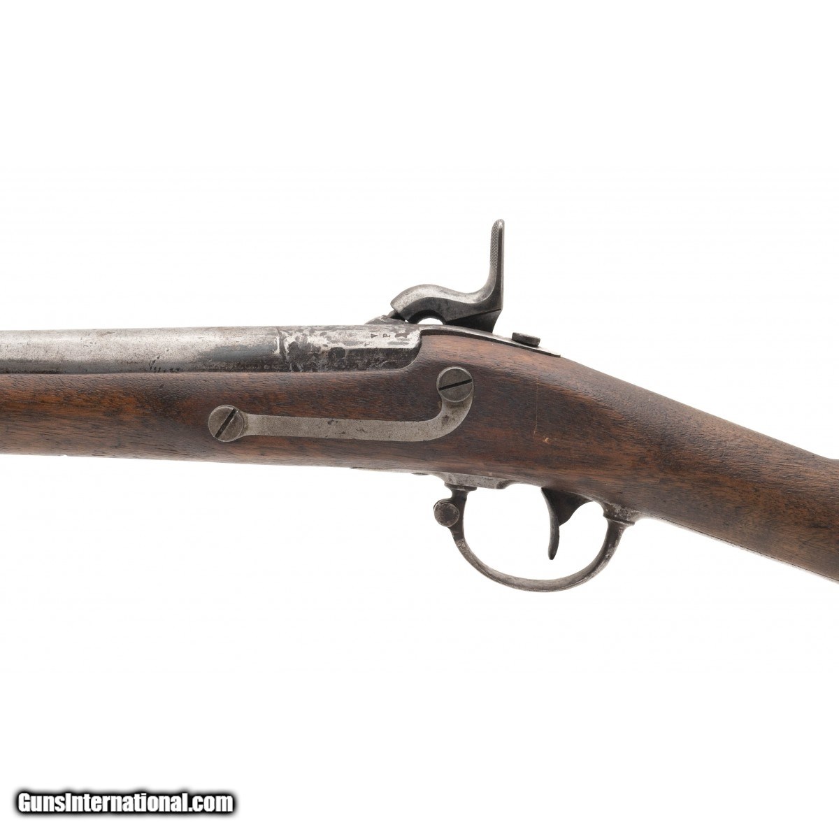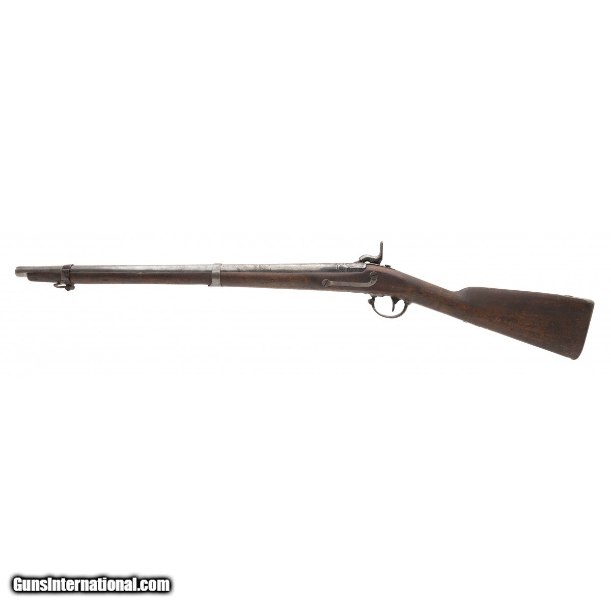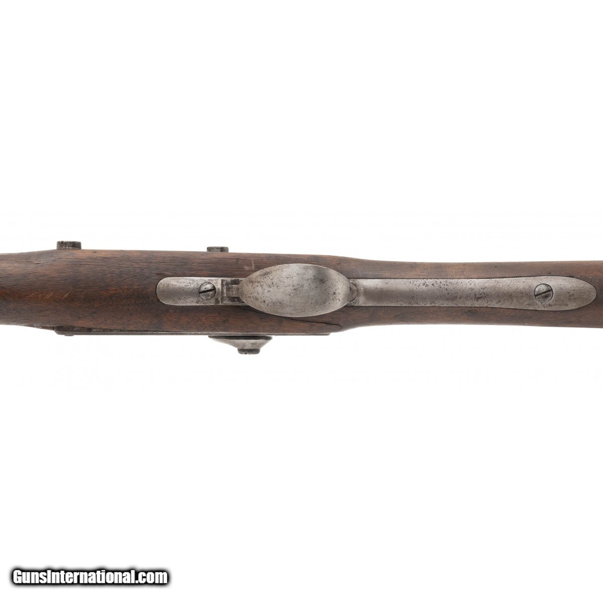 Lock is dated 1848 and marked ""Harpers Ferry"". Barrel has been shortened to 26"". Metal has a greying patina. Stock has an unusual arrow symbol on right hand side. Action works perfectly. Very reasonably priced.