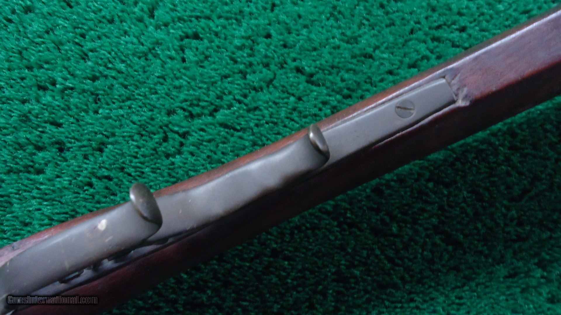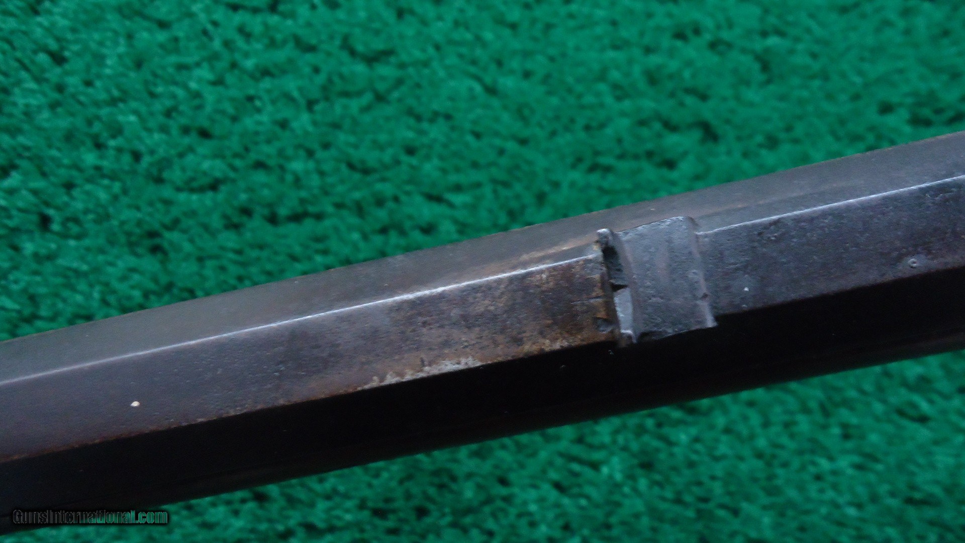 Description: Heavy weight 30 inch octagon barrel. Original sights and cleaning rod. Markings are worn and not very clear. Double set trigger. Wood is generally pretty good. Not a bad rifle for the money. Would look good on a cabin wall. Leroy Merz Antique Firearms specializes in antique and vintage Winchesters and other fine American firearms. Since 1965 Mr. Merz has taken part in the world of firearms and has been a contributor to many well known reference books. We have hundreds of additional guns in every price range at our home online. Search for Merz Antiques in google. SOLD Antique: Yes Rifle Caliber: .32 |
