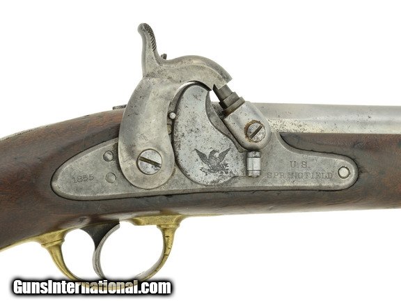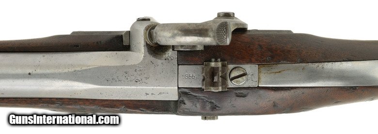 U.S. Model 1855 Pistol Carbine. Correct Tape priming parts are present and functional. Stock and pistol are both stamped number 14. Action works perfectly. Eagle on the door is perfect. Lock and breech plug are dated 1855. Metal parts are very good plus. The wood has minor dings and bruises.