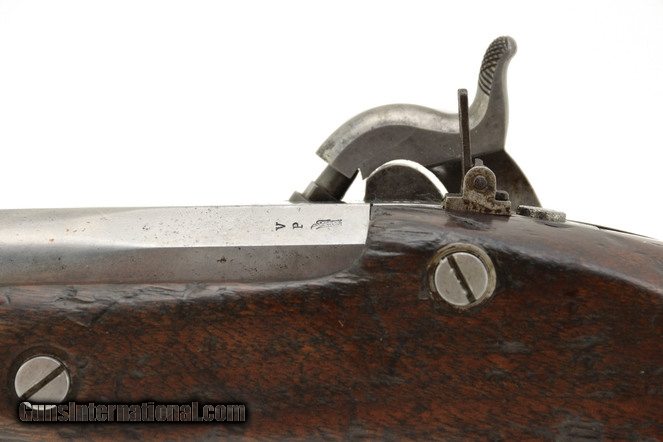 Description: U.S. Model 1855 Pistol Carbine. Correct Tape priming parts are present and functional. Stock and pistol are both stamped number 14. Action works perfectly. Eagle on the door is perfect. Lock and breech plug are dated 1855. Metal parts are very good plus. The wood has minor dings and bruises. SOLD Antique: Yes |