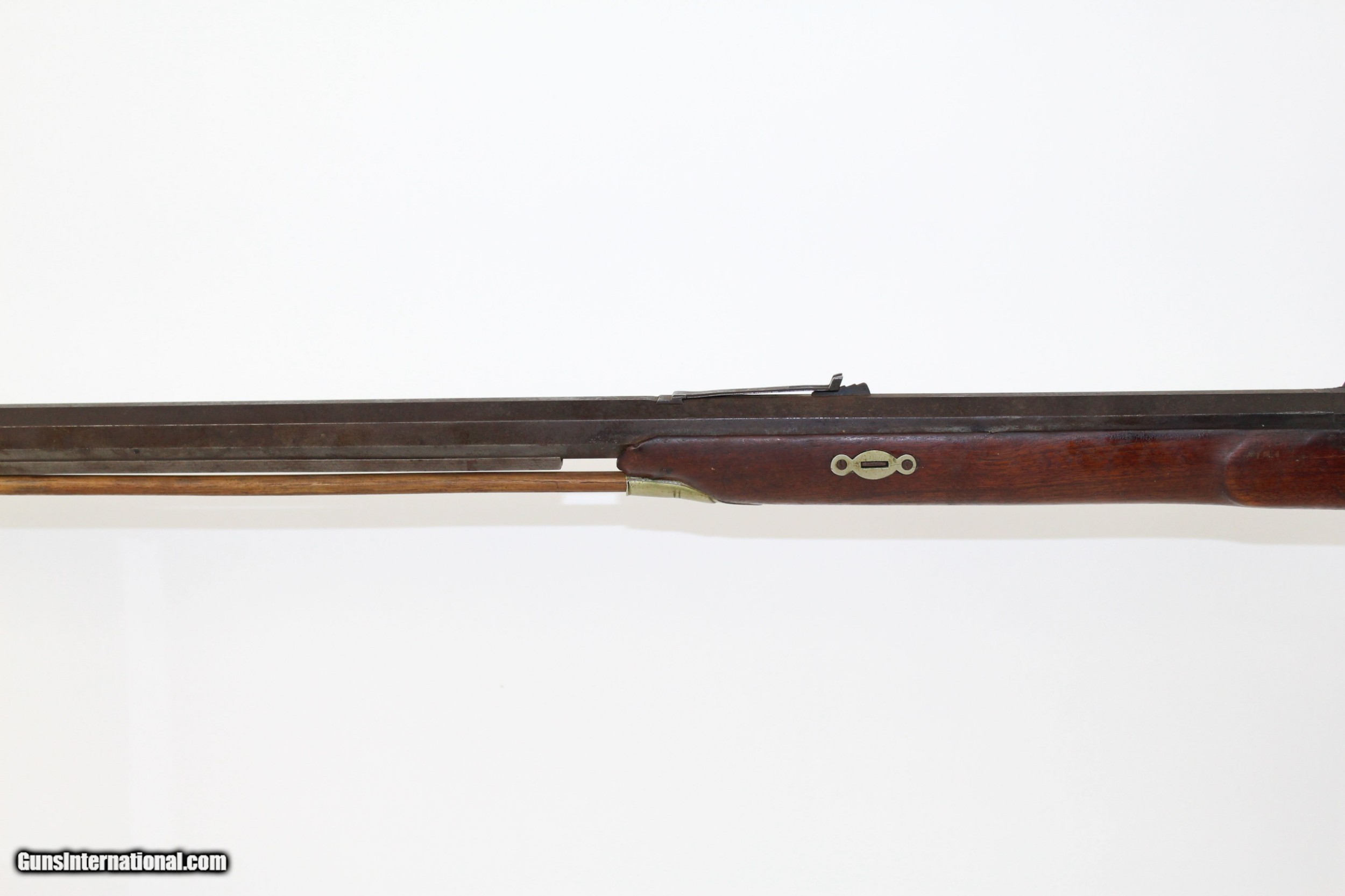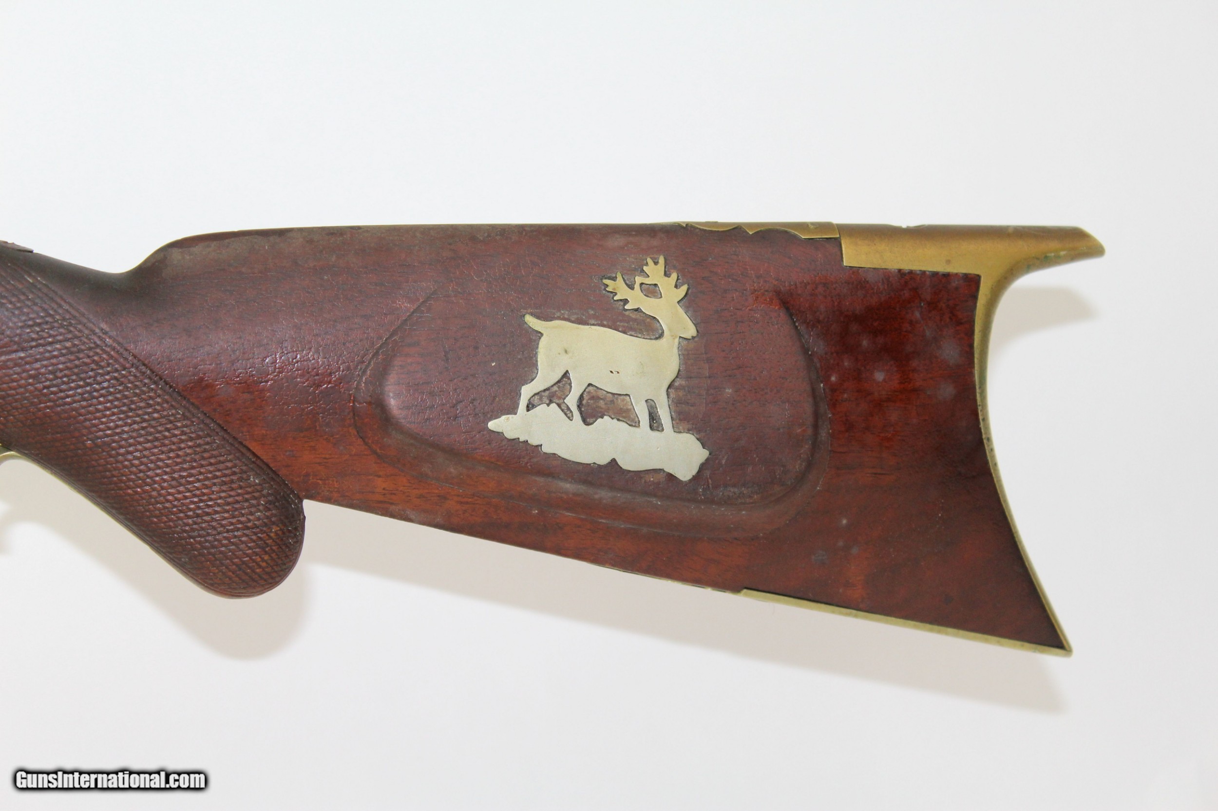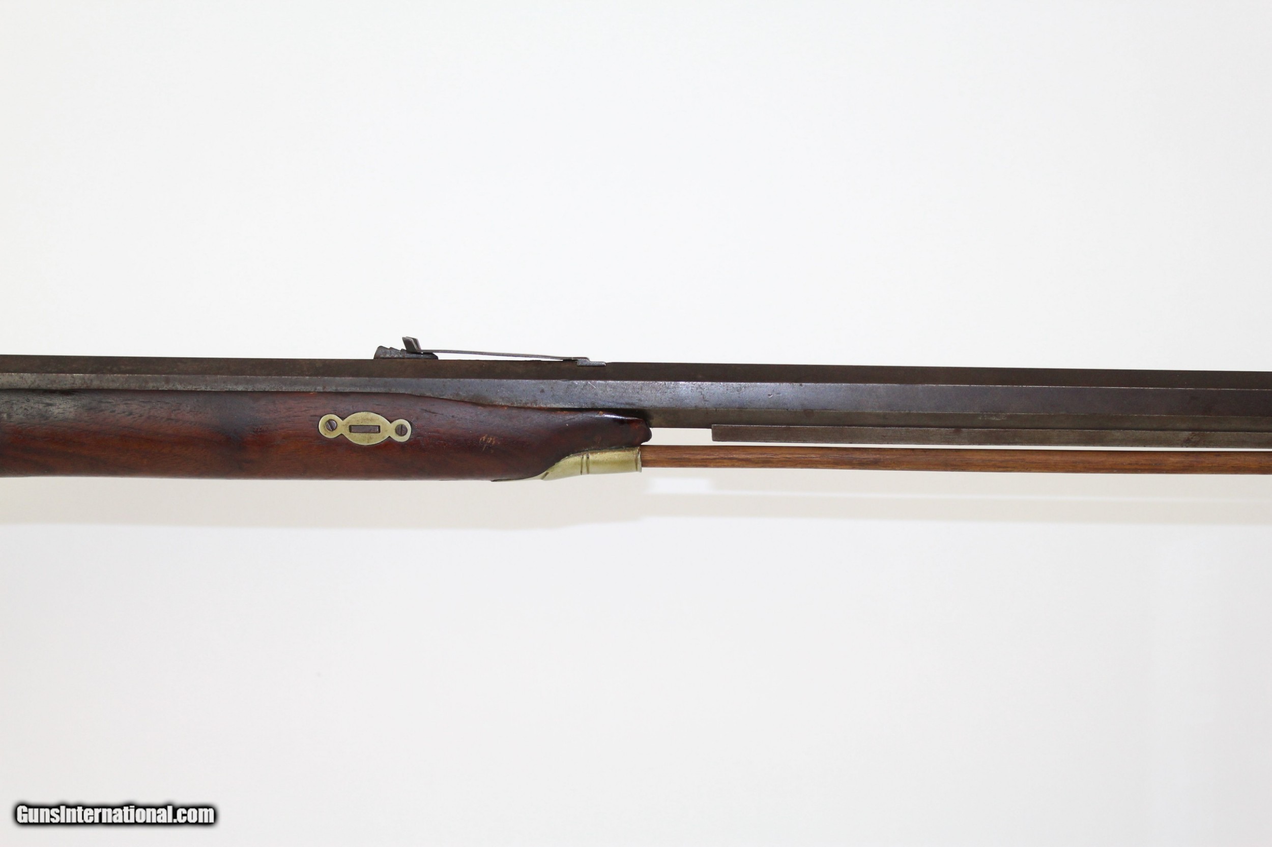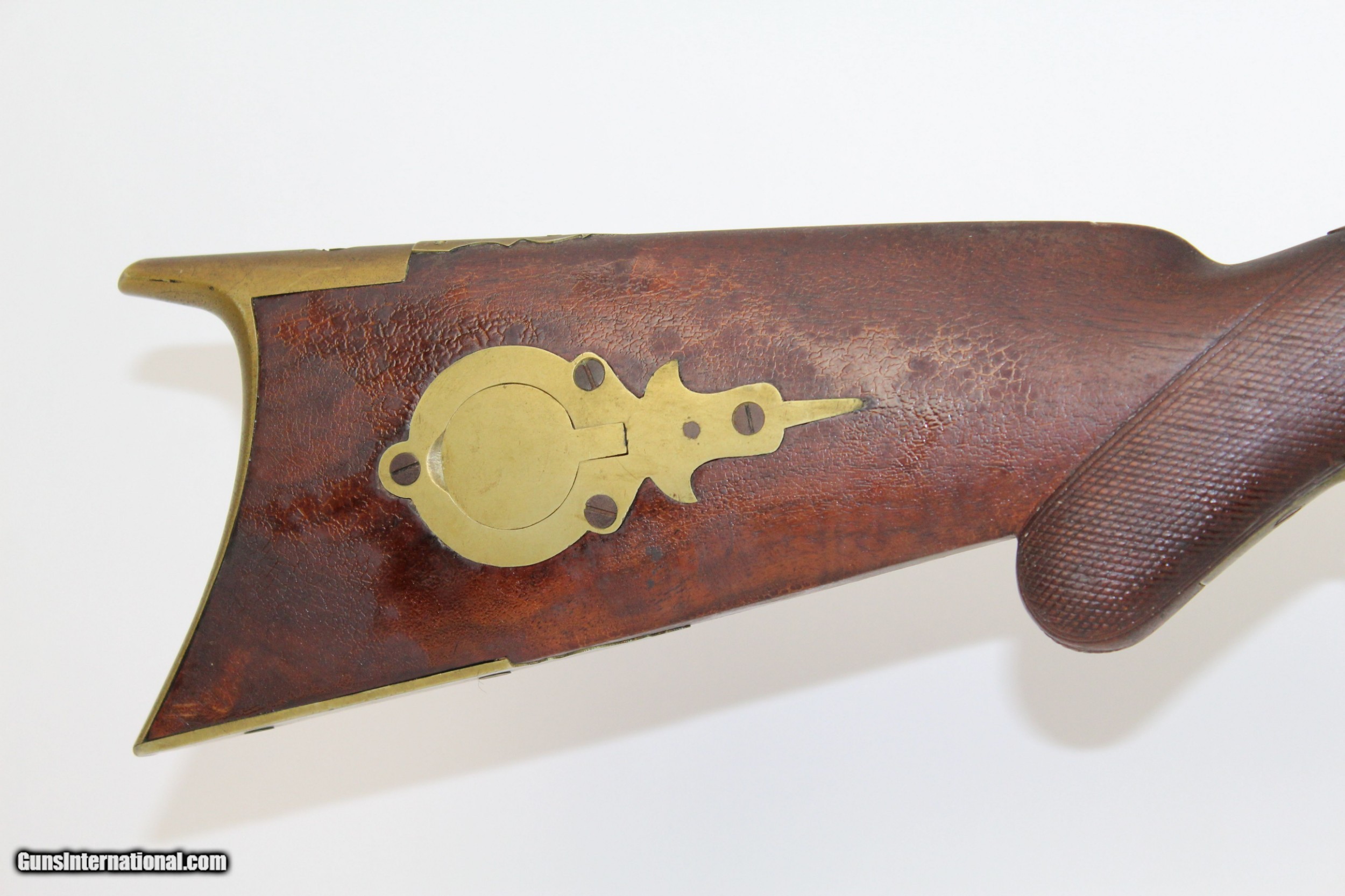 Description: Antique JE Harder PENNSYLVANIA HALF STOCK Rifle MADE Circa 1880’s in Clearfield, PA Here we present an antique J.E. Harder Back Action Half Stock Percussion Long Rifle, made circa the 1880s in Clearfield, Pennsylvania. John Harder was a long successful business man and gunmaker from Clearfield, Pennsylvania. After graduating from Lock Haven Seminary, he became the proprietor of Harder’s Gun Works established in 1878 at the age of 20. Mr. Harder was a thirty-second degree Mason and belonged also to other fraternalanizations. From early manhood he was politically identified with the Republican Party, and whether serving his friends or holding office himself, was always loyal to its principles. This rifle features a distinctly shaped stock with a pistol grip, dramatically curved trigger guard, double set triggers, and a patch box. The bore is .45 caliber. The cheek rest is inset with a stag. The top of the octagonal barrel is marked “J.E. HARDER/CLEARFIELD, PA”. The overall condition is good. The metal surfaces are dark with age. The markings are clear and legible. The stock has a small repair from the end of the barrel tang to the tail of the back-action lock. The bore is coated with a fine dust with sharp rifling showing through. The bore should clean up very nicely if one was of a mind to do so. The action is excellent, strong and crisp, especially with that double set trigger. Here is a great percussion rifle that would have been great for putting venison on the table or protecting the homestead! Own the original! This is a legitimate antique and not a reproduction. Barrel is 36-3/4 inches. Caliber: .45 percussion Overall condition as seen in photos. Very Fast. Very Safe. FREE SHIPPING WORLDWIDE. Delivered directly to your door by express mail! Guaranteed AUTHENTIC & Includes CERTIFICATE OF AUTHENTICITY. ancestryguns $1425 #6345 SOLD Antique: Yes |