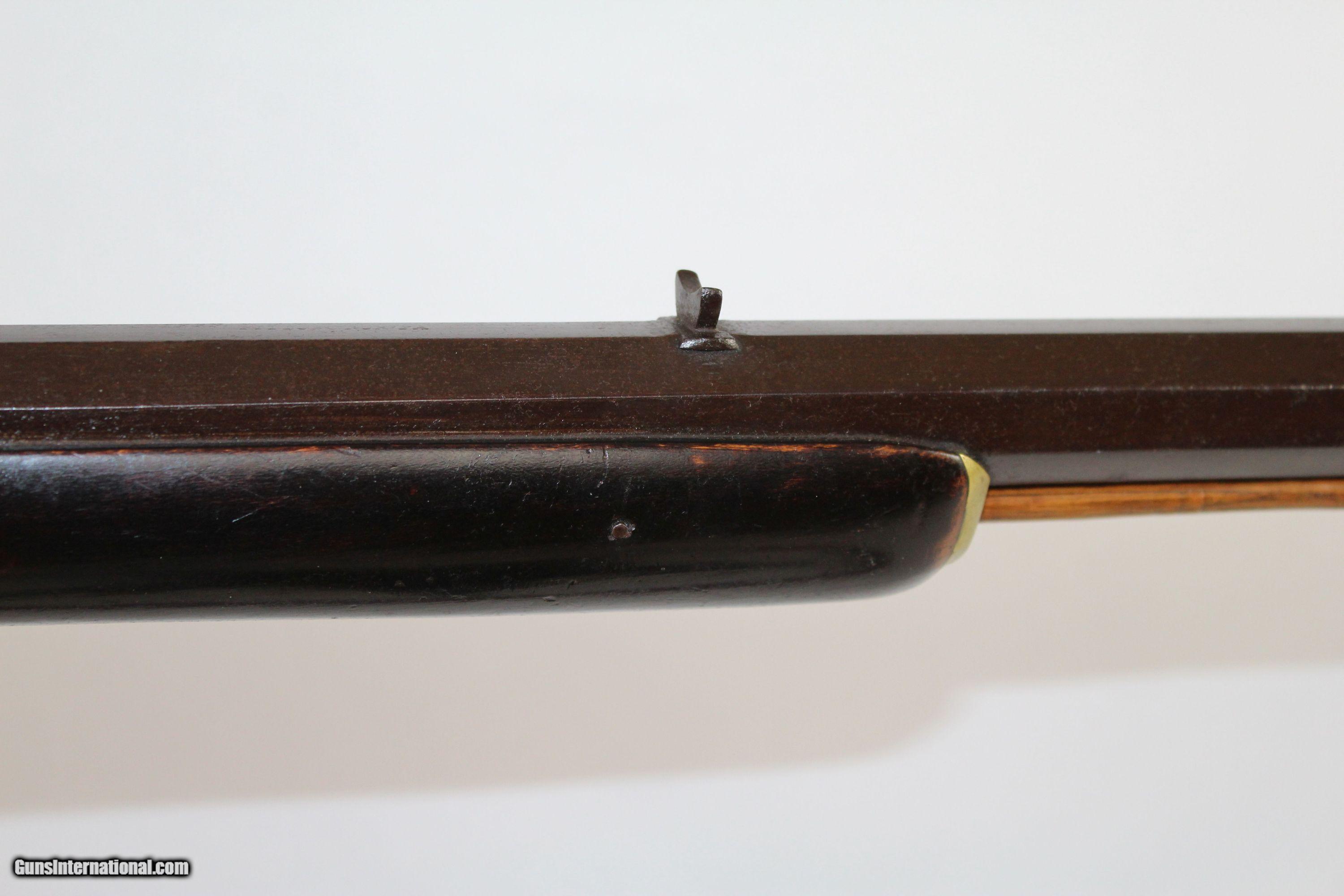 Description: Antique LONG RIFLE by “GREAT WESTERN GUN WORKS” By “J.H. JOHNSTON” of Pittsburgh, Pennsylvania Here we present an antique J.H. Johnston Great Western Gun Works Half Stock Percussion Long Rifle, made circa 1870. The company was started by James Hampton Johnston (1836-1915), son of gunsmith John H. Johnston (he was apprenticed to renowned gunsmith Henry Carlile of Shippensburg, PA). He grew up in Waynesboro, apprenticing under his father, then moved to Pittsburgh in 1860, just in time for the American Civil War. This was a most fortuitous move as Pittsburgh’s iron production made the town much wealthier as all manner of arms, munitions and other war-related goods were produced there. He was made master armorer at the Alleghany Arsenal there as the arsenal ramped up production to meet the Union’s demand for the war. It is estimated that this arsenal alone produced up to 10% of the munitions for the Union government during the war. After the war, in 1866, Johnston founded his Great Western Gun Works in Pittsburgh. It burned to the ground in 1868, but this young entrepreneur rebuilt and grew his business enormously. He had an extensive catalog, kept 25 skilled men on staff, and sold to every state and territory in the nation. In 1888, his son, John A. Johnston, joined the business, and in 1896, he took over for his father. He continued the family business until 1923. This specimen features a .32 caliber bore in a heavy octagonal barrel. The overall length is relatively short and handy. The trigger is a double set variety for a very light, crisp trigger break. The brass patch box still has a nice deposit of grease in it. Butt plate is a brass crescent. The trigger guard is also of brass with a bit of a pistol grip shape. The top of the barrel is marked “J.H. JOHNSTON/GREAT WESTERN GUN WORKS/PITTSBURGH PA”. The overall condition is good to very good. The metal surfaces are deep, dark brown. The markings are legible. The stock is smooth and in good shape. The bore is in good condition with good rifling. The action is strong. Set the rear trigger first, then cock the hammer for a nice crisp break. Own the original! This is a legitimate antique and not a reproduction. Barrel is 27-7/8 inches. Caliber: .32 Percussion Overall condition as seen in photos. Very Fast. Very Safe. FREE SHIPPING WORLDWIDE. Delivered directly to your door by express mail! Guaranteed AUTHENTIC & Includes CERTIFICATE OF AUTHENTICITY. ancestryguns $1450 #5460 SOLD Antique: Yes |