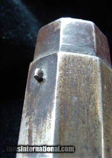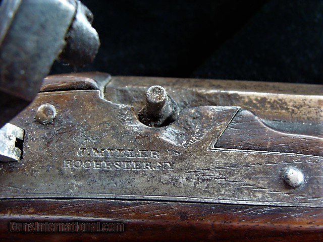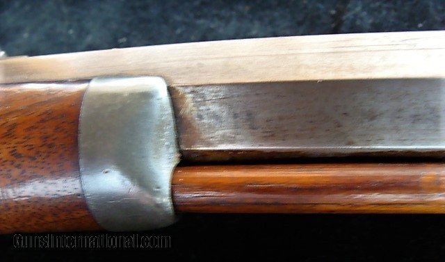Description: From a mid-west sale, a beautiful antique percussion Mule Ear heavy Octagon barrel (1 inch across the flats) target Rifle. The 30" barrel has had a 1 inch false muzzle added for target shooting. The heavy barrel is 44 caliber and has a fixed rear and blade front sight but behind the tang there is a hole for an adjustable target peep sight and what I can see of the bore looks good. The walnut wood stock is in good condition with no chips or cracks but has several dents and dings from over 100 years use (see photos). The stock has a brass crescent butt plate, trigger guard and entrance thimble along with two steel ram rod thimbles (see photos). The lock has a strong spring and functions as it should. The side bar lock plate and top barrel flat is stamped J. Miller Rochester New York (see photos). The metal has a mottled brown patina with some spotting on the barrel(see photos). The hickory wood ram rod is plain and has no tips (see photos). This is an excellent old original target gun that is functional and complete therefore I am offering this gun with a 100% satisfaction guarantee, if it does not live up to your expectations in any way return it for a full and speedy refund including your return shipping. (see my feedback) We trade guns. Satisfaction guaranteed. NO FFL REQUIRED....CAN BE SHIPPED TO A RESIDENTIAL ADDRESS.