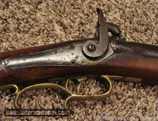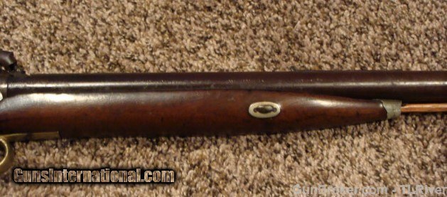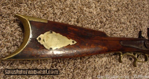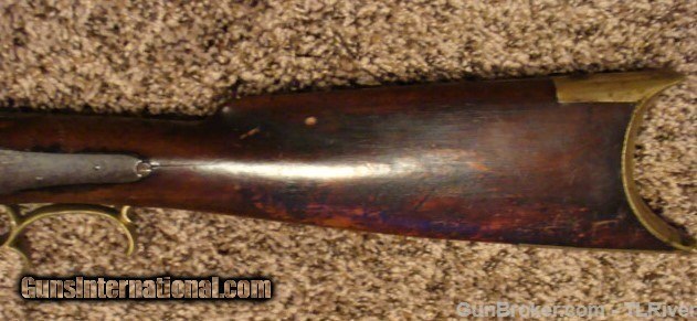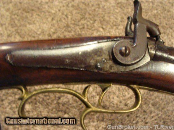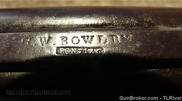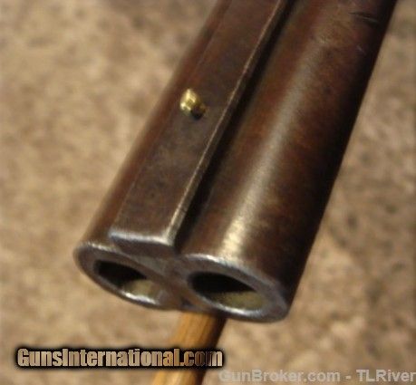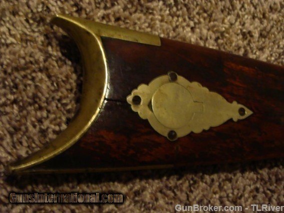 Description: From a mid-west sale, a very nice antique percussion Rifle/Shotgun side by side combination gun with patch box. The 32 1/2" round barrels are 41 caliber rifled and 40 caliber smooth bore with a raised solid rib. The bores appear dark (I have not cleaned this gun). The barrels are topped with an adjustable rear and a post front sight (see photos). The wood stock is in good condition with no chips but has a small age crack behind the lock and patch box and several dents and dings (see photos). The stock has a German Silver entrance thimble and wedge plates with iron barrel thimbles. Brass crescent butt plate, trigger guard and two piece patch box (see photos). The gun is 49" overall with 32 1/2" barrels. One trigger works both hammers independently. The locks have strong springs for both hammers and functions as it should. The back action lock plates are unmarked and the top of the barrel rib is marked "GW BOWLBY / PONTIAC." At the sale they said G W BOWLBY was a gunsmith who practiced in Pontiac Michigan from 1826 to 1863. The metal has a very nice brown patina with some spotting on the barrels(see photos). The hickory wood ram rod is plain and has no tips (see photos). This is an excellent old original combination gun that is functional and complete therefore I am offering this gun with a 100% satisfaction guarantee, if it does not live up to your expectations in any way return it for a full and speedy refund including your return shipping. (see my feedback) We trade guns. Satisfaction guaranteed. NO FFL REQUIRED....CAN BE SHIPPED TO A RESIDENTIAL ADDRESS. I do not recommend firing any used weapon until it has been thoroughly examined by a certified gunsmith Cashiers check or money order only. Shipping by UPS $35.00 which includes a tracking number emailed to you. Insurance is optional. Missouri residents pay 8.45% sales tax where applicable. Three day inspection “No Questions Asked” return policy. SOLD Antique: Yes |