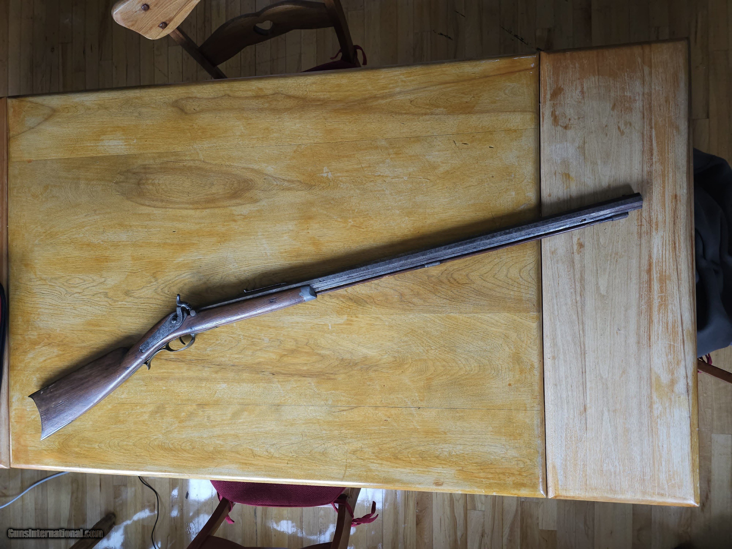 Description: Percussion rifle in shootable condition, hammer works as intended. waterfowl and brand(?) name engraved on lock. 36in barrel .45 caliber. Comes with soft rifle case. No FFL. SOLD Antique: Yes Rifle Caliber: .45 |