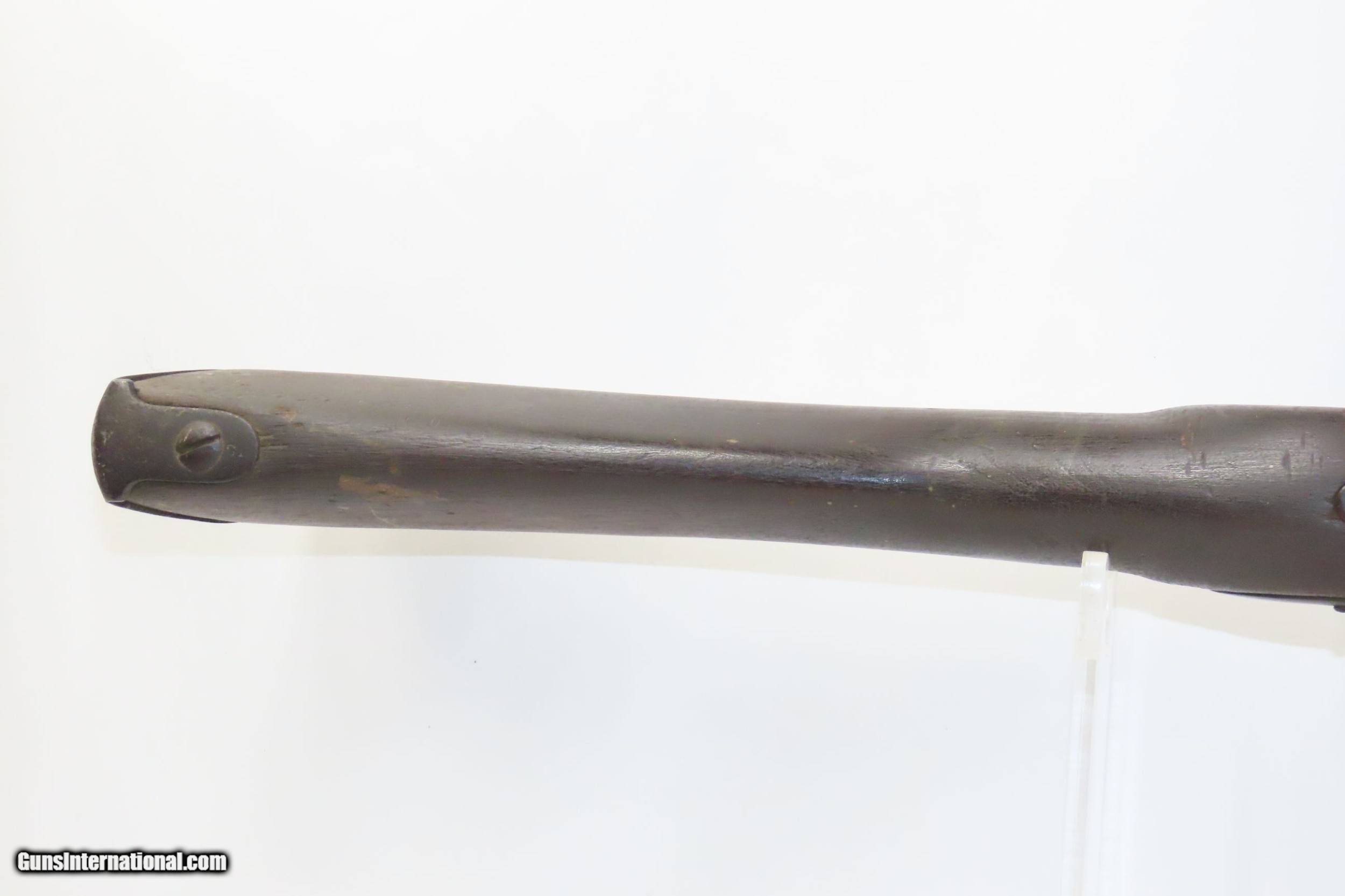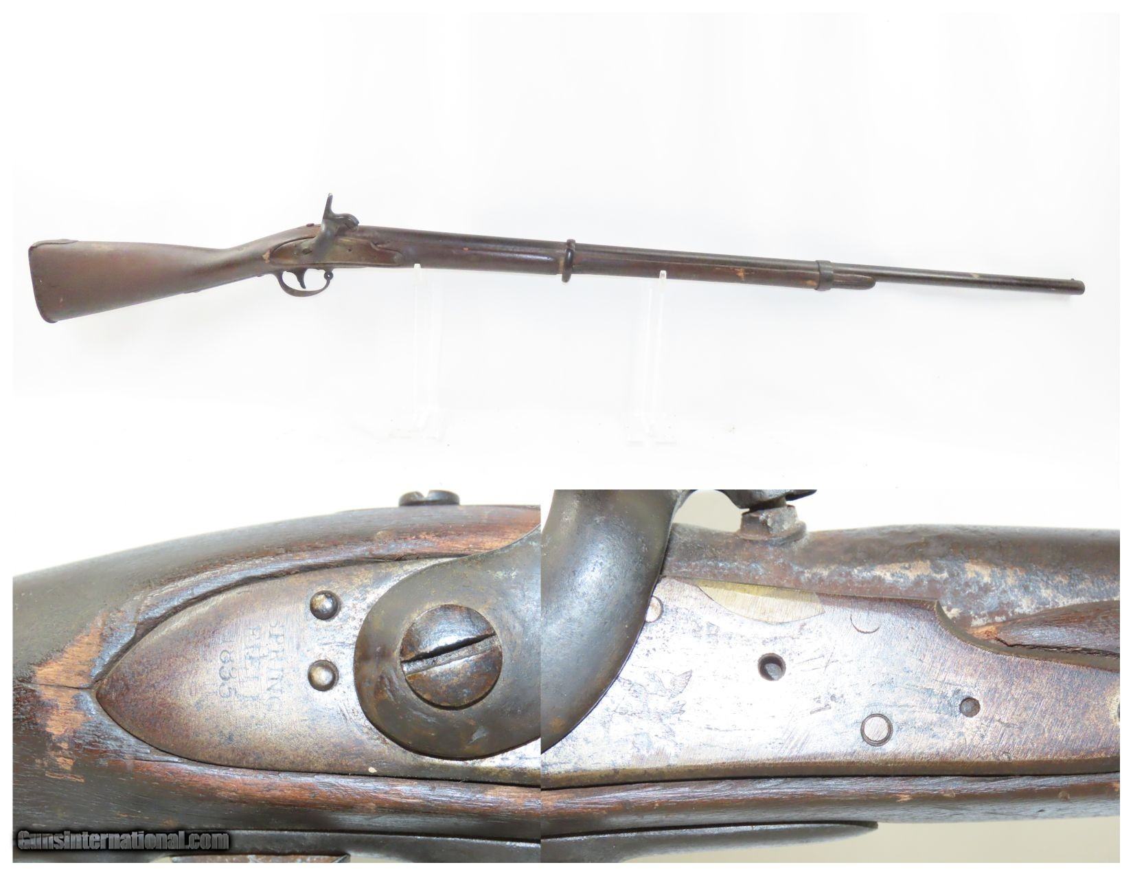 Description: Antique US SPRINGFIELD ARMORY Model 1816 Percussion .69 Cal. Musket-Shotgun Converted Flintlock to Percussion ; U.S. Military Weapon Here we present an antique Springfield U.S. Model 1816 Cone Conversion Musket-Shotgun, manufactured at the armory at Springfield, Massachusetts, circa 1835. This musket would have started out life as a smoothbore flintlock and likely converted around the start of the American Civil War. The War of 1812 revealed many weaknesses in American muskets. In an attempt to improve both the design and manufacture of the musket, the Model 1812 musket was created. The Model 1816 made further improvements and replaced the Model 1812. Harpers Ferry became America’s second national armory after the site was personally selected by George Washington, with the Springfield Armory being the first. The U.S. Congress authorized the building of the new foundry in 1794, and by the following year, was producing hundreds of arms for the national army, which was primarily flintlock muskets and pistols. Inspired largely by the French Charleville Model 1777 musket, Harpers Ferry began producing the Model 1816. The M1816 was a smoothbore, muzzle loading weapon which used a .69 caliber musket ball. A trained shooter could fire between two and three rounds at a range of up to 200 yards per minute. The M1816 was in production at Springfield (325,000) and Harpers Ferry (350,000) between 1816 to 1844 with around 675,000 muskets produced during this run. It saw service during the Mexican-American War and was even pressed into service during the Civil War in both the updated percussion and the old flintlock format. In the 1850’s, many 1816’s, just as this one is, went through the conversion from flintlock to the more reliable percussion system. The advent of the Model 1842 Musket made the M1816 obsolete, but not unserviceable. Eventually, most made their way to storehouses and armories. Beginning in 1848, when more than 700,000 of all types of flintlock muskets were reported in storage, the most serviceable were converted to percussion ignition. Three types of alteration were performed. All alterations involved grinding the flash pan down and replacing the hammer. The "French Style" conversion added a drum and nipple to the flashhole. The "Belgian Style" involved plugging the vent hole with a weld and tapping a nipple directly into the barrel. This is the type of conversion that was only done at Harper's Ferry and Springfield and is sometimes referred to as an "armory conversion." The last type of conversion was used late in the renovation process, beginning about 1852, and involved adding a bolster to the breech of the barrel, so it is termed the "Bolster Style" of conversion. This musket was converted to percussion using the Belgian Style Alteration method, more commonly known as the “Cone Type” conversion. All external lock parts were removed with the screw hole plugged, the pan ground flush with lock plate (leaving the remnants intact) and the small existing cavity in the pan filled with brass to give it a level or squared off profile along the top. The vent hole of the barrel was plugged with a nipple screwed into the threaded receptacle at the top of the barrel, set off center towards the lock side. Then, adding the distinctive arsenal military hammer. The overall condition is good. Original patina. Strong action. The bore is in good shape for its age. Solid stock. The ramrod is absent. “1835” dated lock. Legible markings. The barrel bands are loose. Own the original! This is a legitimate antique and not a reproduction. Barrel is 39-1/2 inches. Caliber: .69 Percussion Overall condition as seen in photos. Very Fast. Very Safe. FREE SHIPPING WORLDWIDE. Delivered directly to your door by express mail! Guaranteed AUTHENTIC & Includes CERTIFICATE OF AUTHENTICITY. ancestryguns $900 #226502 SOLD Antique: Yes |