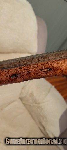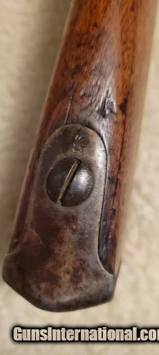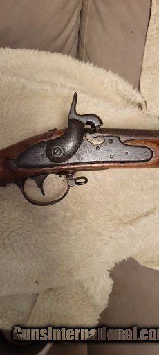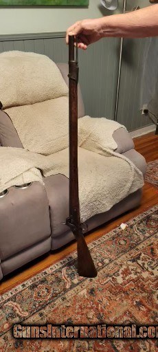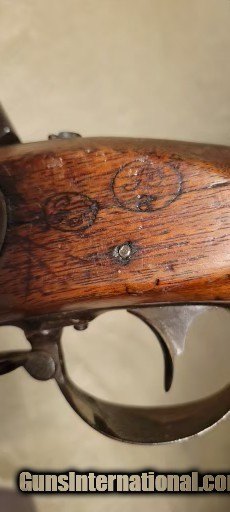 Description: 1833 Springfield flint to percussion conversion. Arsonal Made to artillary configuation. Look closely at the two wood inlays, they match the stock perfectly held in by two small brass pins. Two nice cartouches. An excellent shooting gun. 69 caliber smooth bore SOLD Antique: Yes Rifle Caliber: .69 |