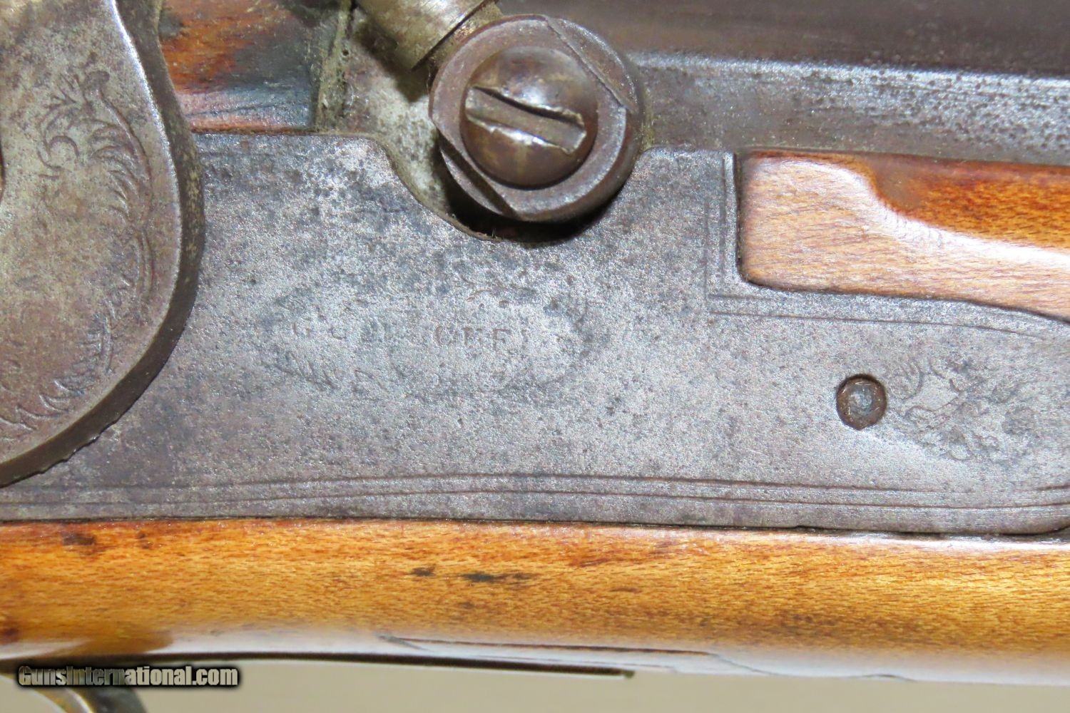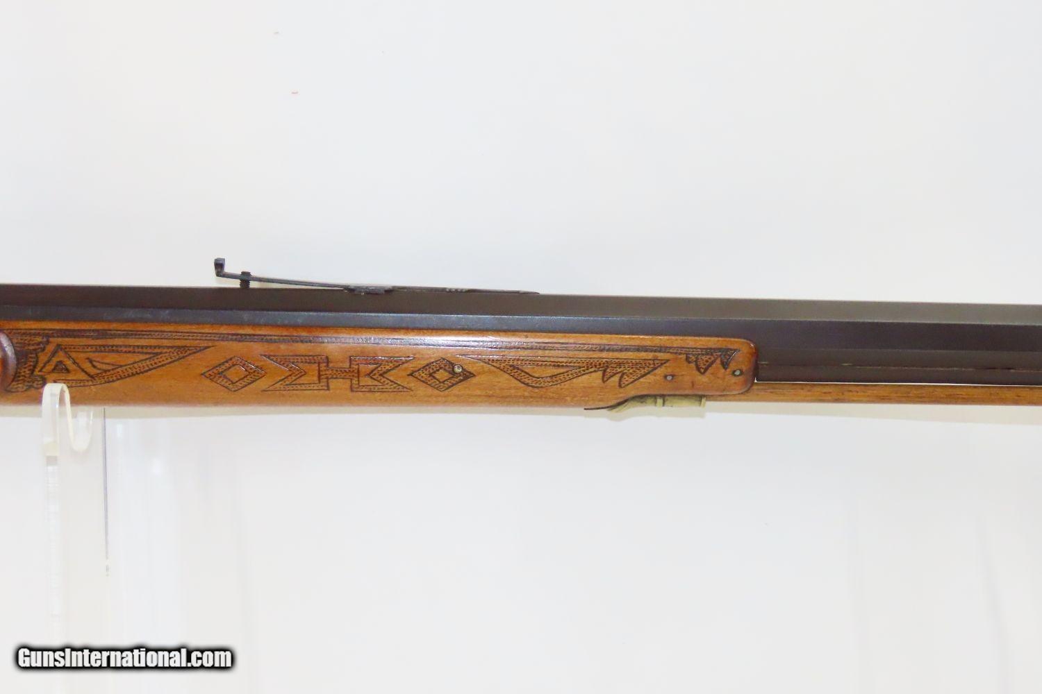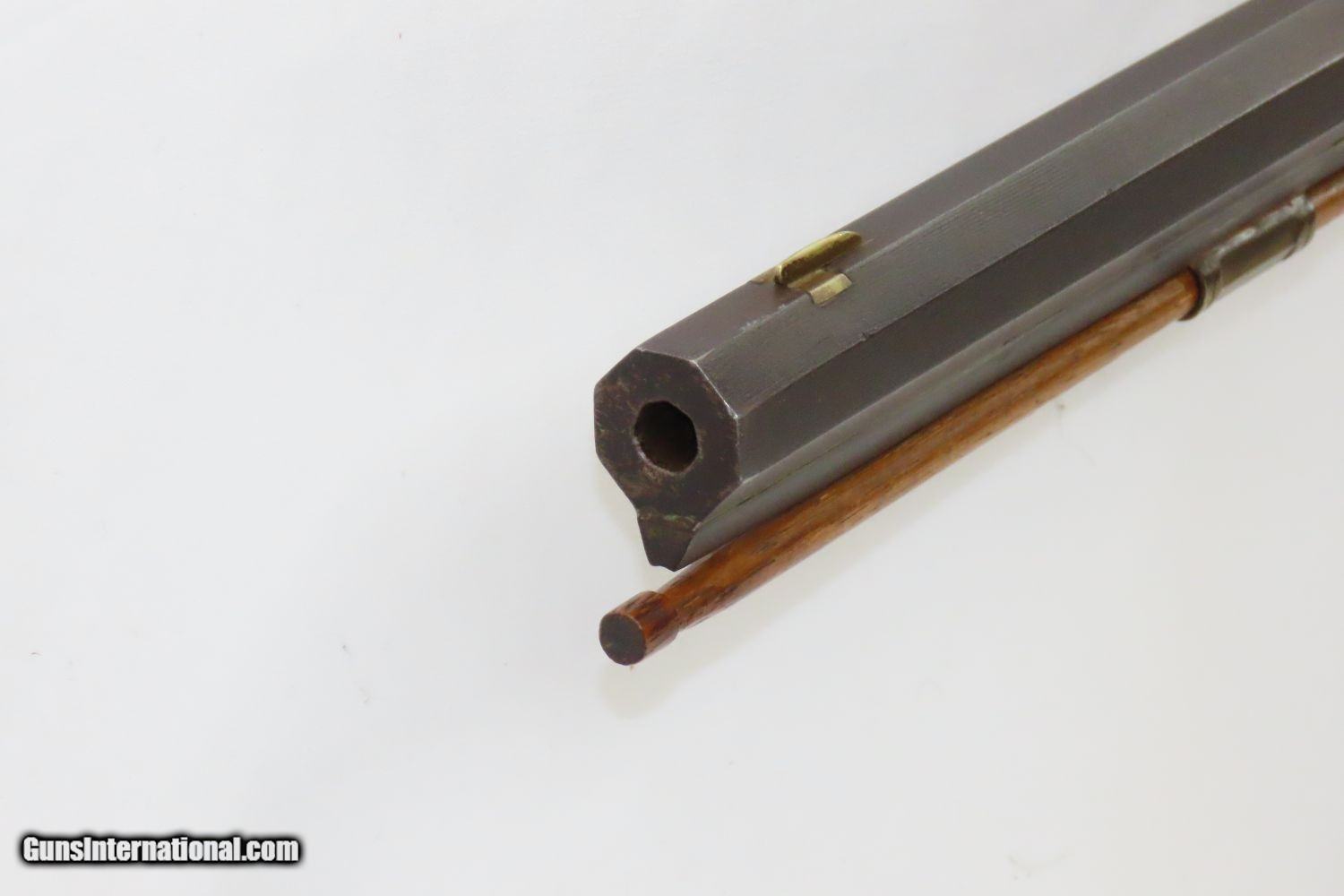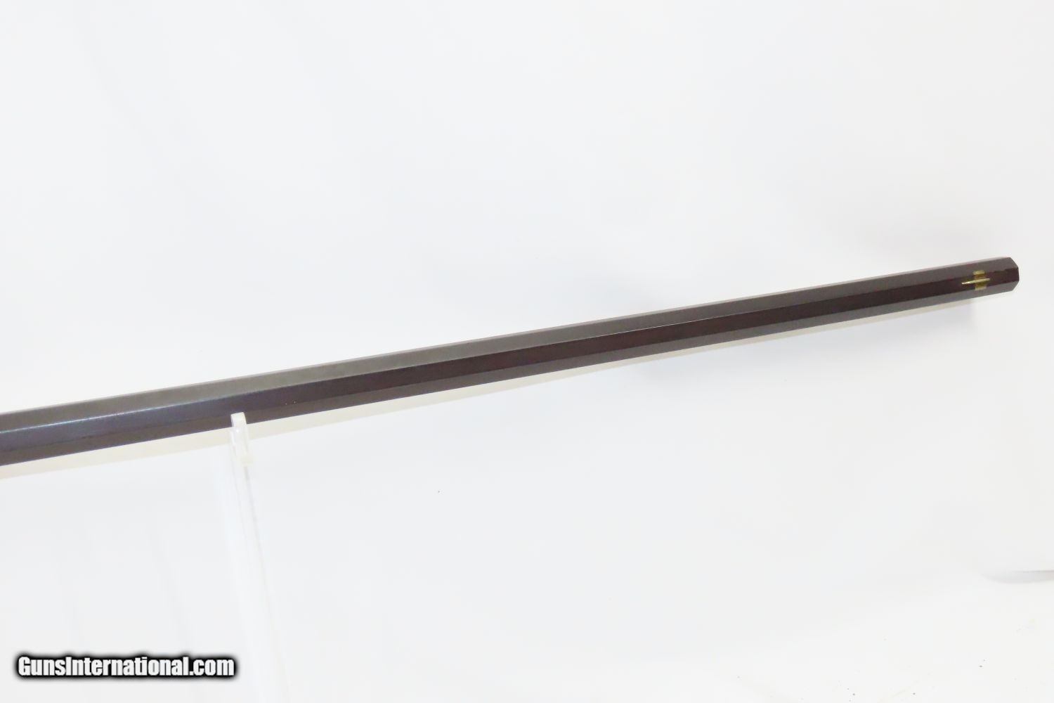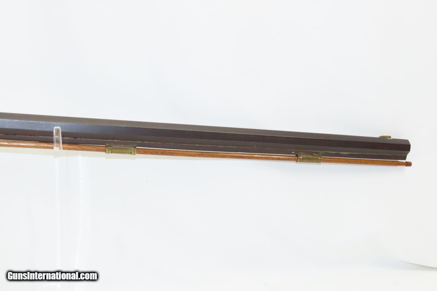 Description: ATTRACTIVE Scrolled Maple Stocked LONG RIFLE .35 Caliber Percussion Antique Small to Medium Game Frontier Long Arm Here we present an antique Percussion Half-Stocked Long Rifle. Though this rifle has been restocked, all of its primary parts are from the 1840s-60s era, including the G. Goulcher lock. This example features a long, 39-inch octagonal barrel. Such a weapon would have been used for self-defense and providing protection for the homestead. Though faint, “G. GOULCHER” can be read on the lock. Goulcher was active in New York in the 1850s and 1860s, and some have even speculated that he only made locks. Rifle manufacture in the mid-to-late 19th Century was rapidly changing over from thousands of craftsmen all over the United States and on the Frontier making and selling their wares, to the large factories with standardized assembly lines and modern manufacturing techniques. Many makers’ names of the so-called Kentucky long rifles have been lost over time. This rifle is one such example. This is an interesting piece all around! The overall condition is very good. Strong action. The bore is in good shape. Ornately scroll inscribed, solid stock. Golcher engraved lock. Here’s a true looker for the collection! Own the original! This is a legitimate antique and not a reproduction. Barrel is 39 inches. Caliber: .35 Percussion Overall condition as seen in photos. Very Fast. Very Safe. FREE SHIPPING WORLDWIDE. Delivered directly to your door by express mail! Guaranteed AUTHENTIC & Includes CERTIFICATE OF AUTHENTICITY. ancestryguns $1285 #210397 SOLD Antique: Yes |