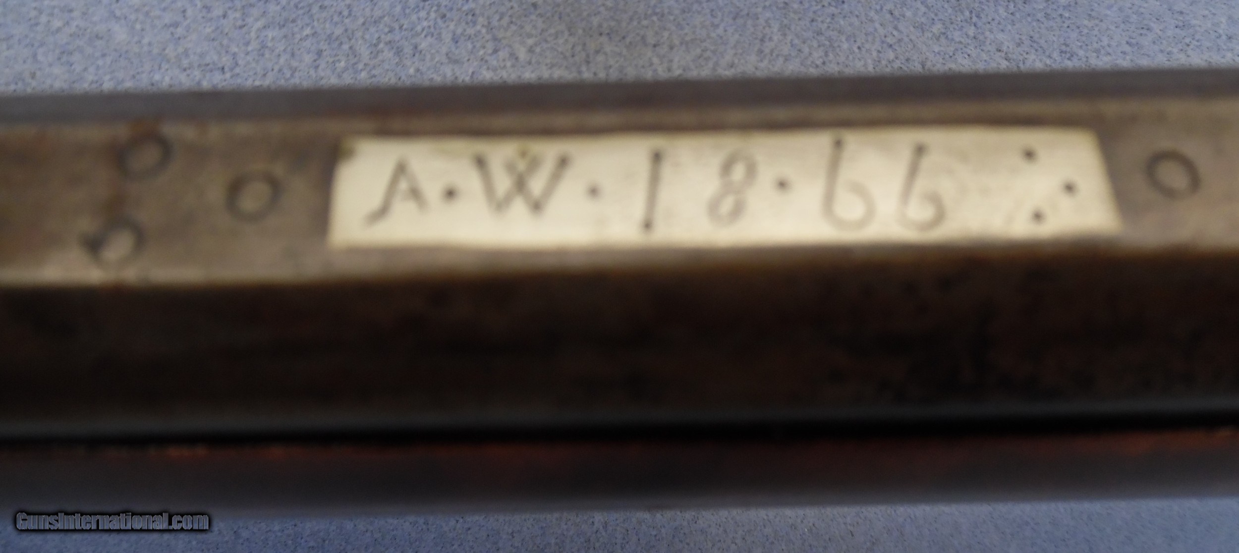 Description: Will consider reasonable offers. This AW 1866 cap lock made of beautiful wood with inlays, and a brass patch box and also the barrel is inscripted. The lock is engraved. The barrel is 38 3/8 inches long, with light visible rifling and some corrosion. The overall length is 54 inches. The caliber is a 348 or there abouts. The double set trigger does not function properly. This is from my private collection, 4 more guns available Once Payment has been received, I will arrange shipping via UPS. Shipping is an additional charge. A 3 day inspection period applies to this purchase. If you choose to return the item, upon return of the firearm in purchased condition with all parts and accessories, the purchase price will be refunded. No shipping charges will be refunded. SOLD |