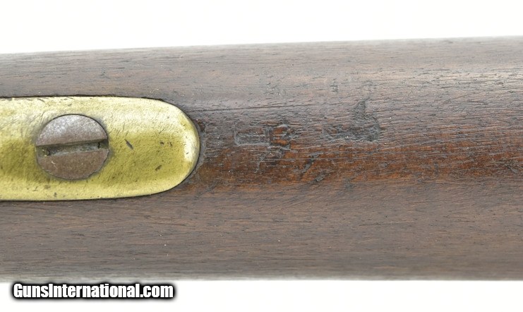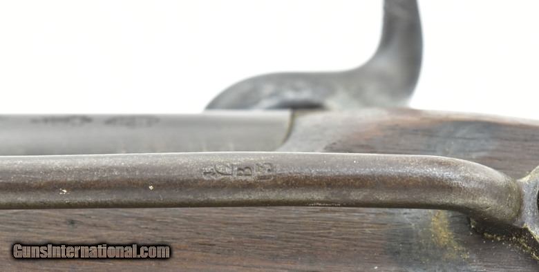 Description: British Pattern 1842 cavalry carbine. 20â…›” round smoothbore barrel with fine bore. Lock has crown “VR” over “Tower” dated “1847” with a crown broad arrow ordnance mark to the right. Metal is very good with smooth brown patina, areas of minor pitting on lock and hammer. Usual proof marks are on the barrel, which is approximately .65 caliber. Wood is very good with a small piece missing at the rear of the lock. Brass furniture Is nicely aged with butt plate tang having a “G/43” issue mark. Sling ring, bar and captured cleaning rod are present. Action functions properly. A scarce early percussion carbine in really nice condition. SOLD Antique: Yes |