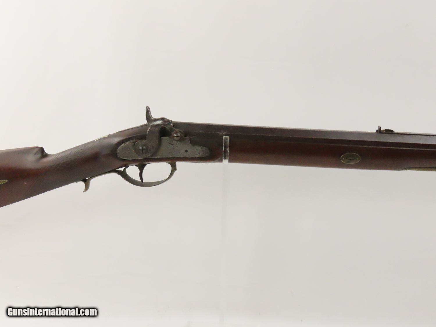 Description: CAPTAIN HAPGOOD Made MASSACHUSETTS Long Rifle GUNSMITH SOLDIER POLITICIAN Made Circa the 1840s in SHREWSBURY, MASSACHUSETTS Here we present an antique Half-Stock Long Rifle, made circa the 1840s by Joab Hapgood (1804-1890). Joab had an interest in gunsmithing at a very early age. He apprenticed under Silas Allen, Jr. for 5 years before starting off on his own at the age of 21. Joab’s gun store in Shrewsbury, MA was called “J. Hapgood Gun Store”. His business grew and became quite successful. He ended up having had many journeyman and apprentices of his own. Joab moved his business from Shrewsbury to Boston in 1847, thus giving us an early Hapgood rifle! The barrel on this rifle is marked “J. Hapgood/Shrewsbury” on the top. Joab Hapgood later became known as “Capt. Joab Hapgood” and fought in the Civil War. It is speculated he even participated in the Battle of Gettysburg. Joab was also more than just a solider as he held many political offices and was a well-known inventor. He was an elected official in Worchester County holding positions such as Selectman, Moderator, Clerk, and Assessor. Joab also invented a special plow for planting trees and new ways to cut out the grooves in barrels. Many gunsmiths at the time adopted his methods. In 1864 Joab sold the business and returned to Shrewsbury until the date of his death in 1890. Hapgood muskets and rifles tell us stories of a warrior, politician, family man, entrepreneur, and inventor. Mr. Hapgood has left quite the legacy indeed! This is a superior long rifle with a long, octagonal barrel with a .42 caliber bore, equipped with open rifle sights. Trimmed in brass, the patchbox is of a unique style with a spire-shaped finial and engraved around the edges. The wrist of the stock is checkered with broad diamonds. Modest but nice engravings on the lock and the butt plate as well. The lock reads “JAMES/GOULCHER”. The top of the barrel is marked “J HAPGOOD/SHREWSBURY”. The overall condition is near fine. The bore is sharply rifled and in great shape. The action is strong. The markings are clear. A fabulous piece of American history from Shrewsbury, Massachusetts! Own the original! This is a legitimate antique and not a reproduction. Barrel is 40-5/8 inches. Caliber: .42 Percussion Overall condition as seen in photos. Very Fast. Very Safe. FREE SHIPPING WORLDWIDE. Delivered directly to your door by express mail! Guaranteed AUTHENTIC & Includes CERTIFICATE OF AUTHENTICITY. ancestryguns $2850 #190276 SOLD Antique: Yes |