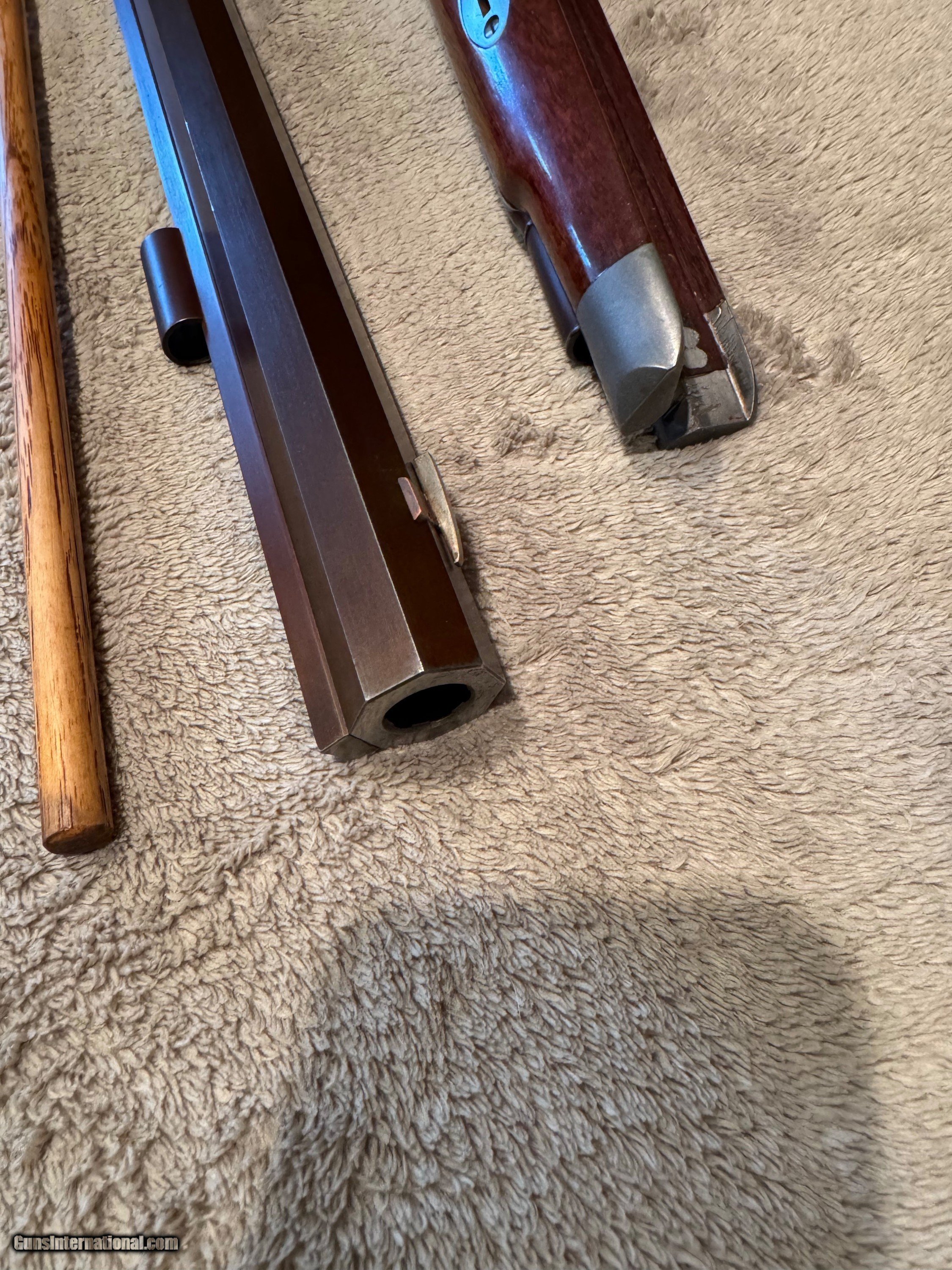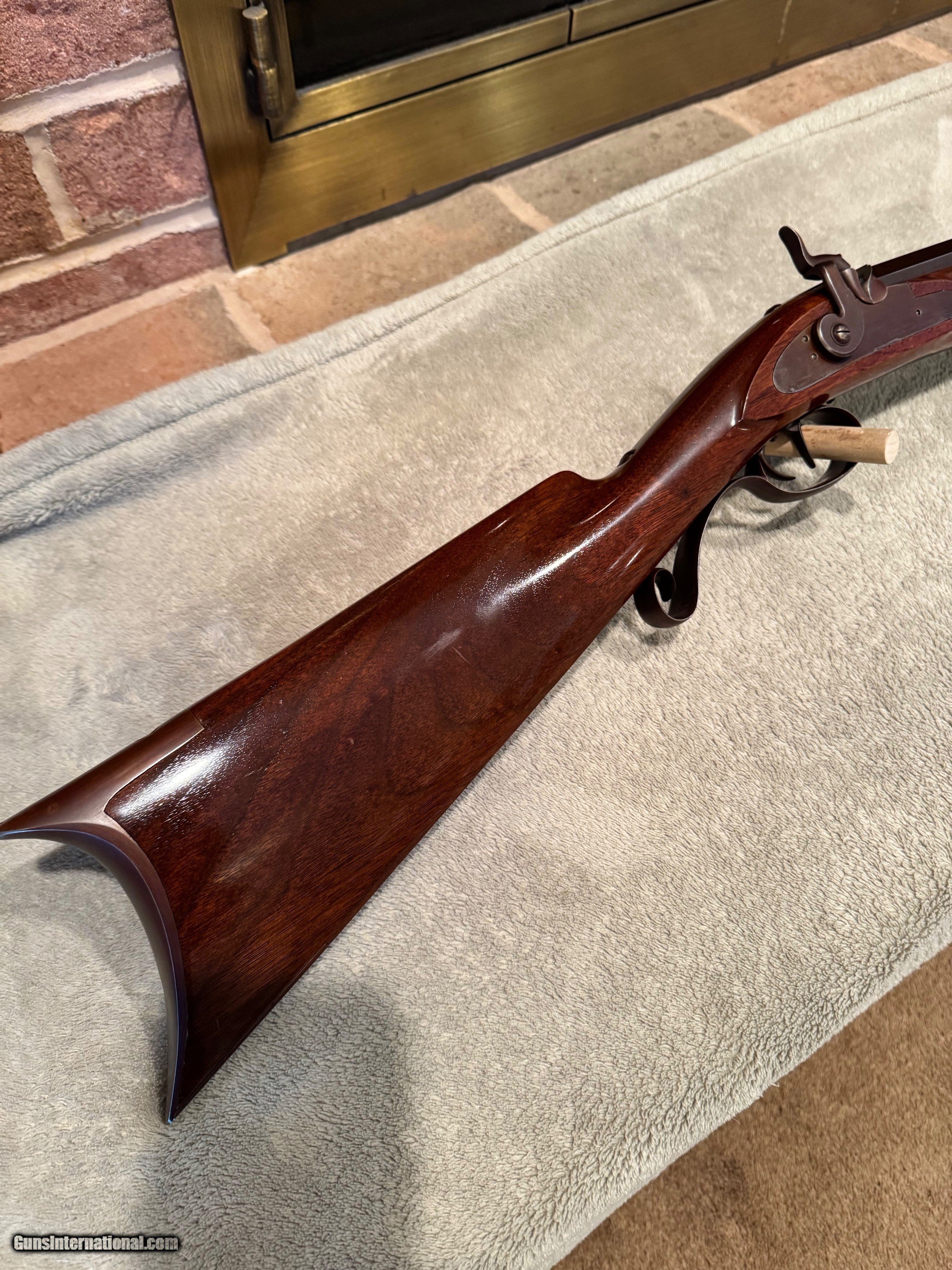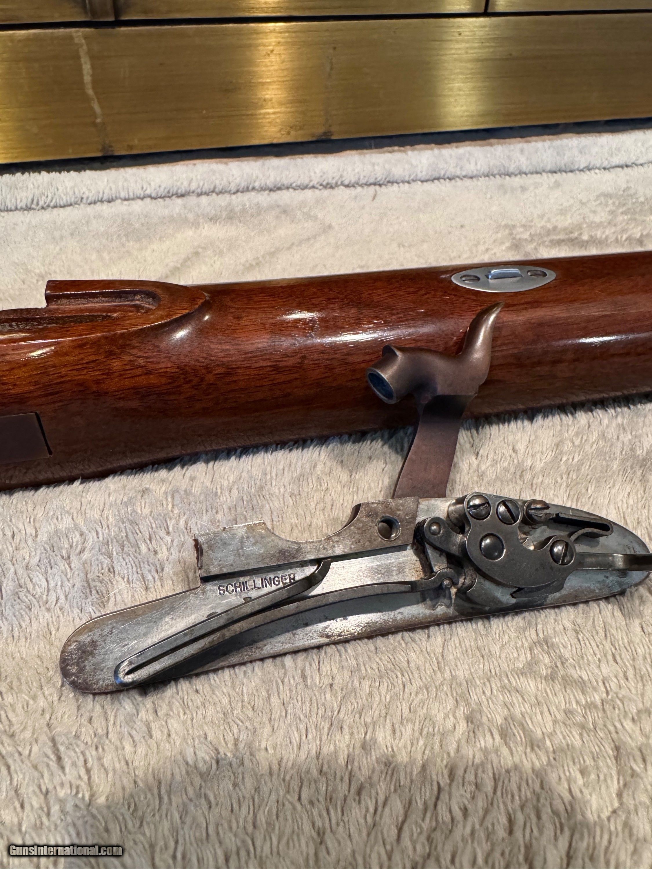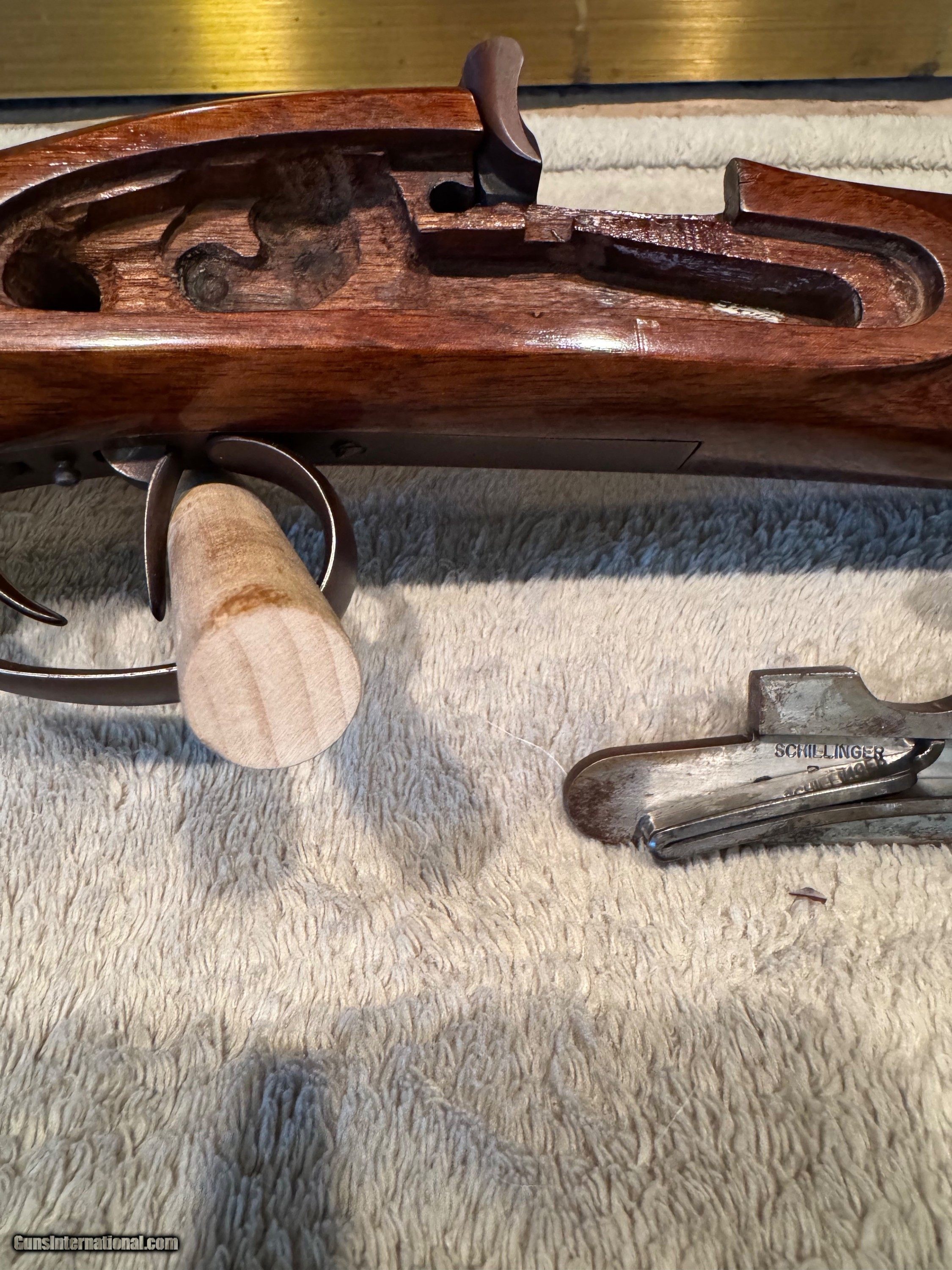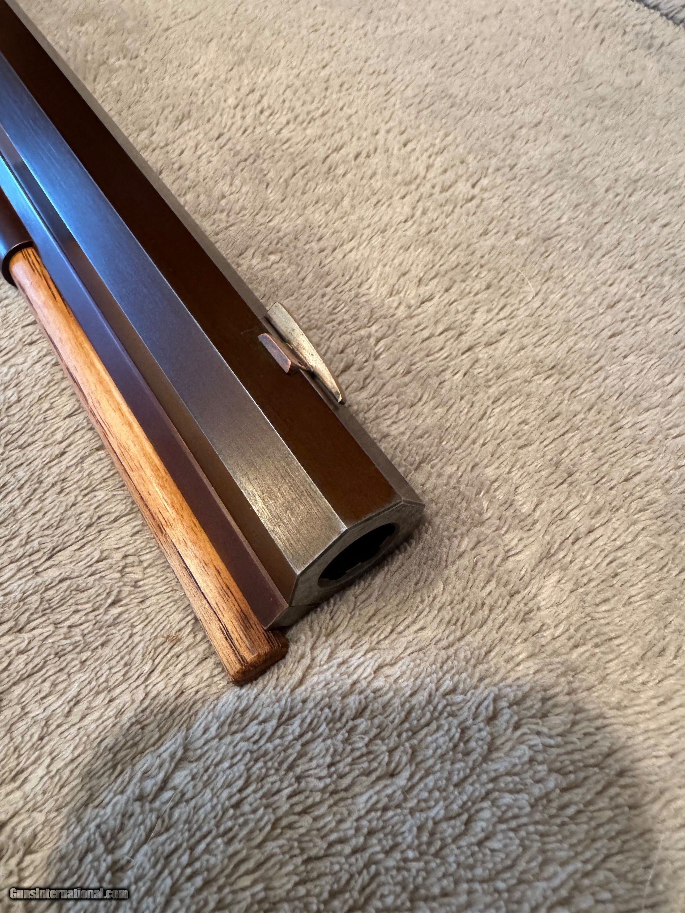 Description: This well made unknown maker rifle has a 32" tapered octagon barrel with a rear buckhorn sight and blade front sight, copper base silver blade. Rifle is in very good condition and ready to shoot. Length of pull: 13 5/8" Barrel length: 32" Barrel profile: tapered 1.120" at Breech, .970" at muzzle outer dimension. Trigger: Double set trigger Lock: SCHillinger name in side of lock (percussion) Stock: Walnut Caliber: .54 rifled, radius on bottom of rifling. Nose cap or Forearm tip: Poured Pewter. Money Order or Personal Checks excepted. Shipping $50.00 FFL is not required. Manufacturer: Unknown Model: Hawken Barrel Length: 32” Bore Info: .54 Condition: Good Metal Condition: Good Wood Condition: Good Bore Condition: Very good Barrel Type: Octagon Stock: Walnut Price: $1,100.00 Shipping: $50.00 Buy Now Contact Seller |