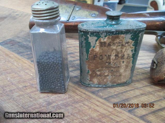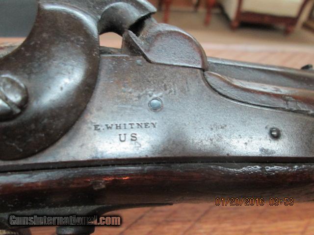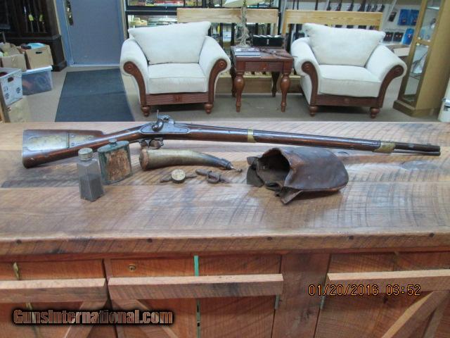 Description: ELI WHITNEY 1841 "MISSISSIPPI RIFLE" 54 CAL.BP (MFG. 1848) ALL ORIGINAL WITH PERIOD POWDER HORN,1858 MARKED PERCUSSION CAPS,SHOT BALLS,LEATHER BAG,FULL TIN OF PERIOD RIFLE POWDER, HAND MADE BULLET STARTER AND PERIOD LEATHER POSSIBLES BAG. 33" BARREL WITH GOOD SHOOTABLE BORE.ORIGINAL RAMROD,ALL ORIGINAL STOCK WITH BRASS FURNITURE AND PATCH BOX.METAL RETAINS VERY LITTLE FINISH,BUT HAS NICE BROWN PATINA.NICELY MARKED SIDE LOCK WITH E.WHITNEY FRONT AND N.HAVEN OVER 1848 REAR.MFG. IN NEW HAVEN CT. 1848. GUN WEIGHS IN AT 9 LBS. SOME WOOD WEAR AT POWDER FLASH ONLY. VERY NICE 1848 GUN WITH PERIOD EXTRA'S. 2959.00 PLUS 40.00 SHIPPING. CHECKS TAKE 10 DAYS TO CLEAR,M/O'S TAKE 5 DAYS TO CLEAR,NO CREDIT CARDS TAKEN. CALL DANNY AT 828=698=8804 IF NEEDED.GOD BLESS! SOLD Curio/Relic: Yes |