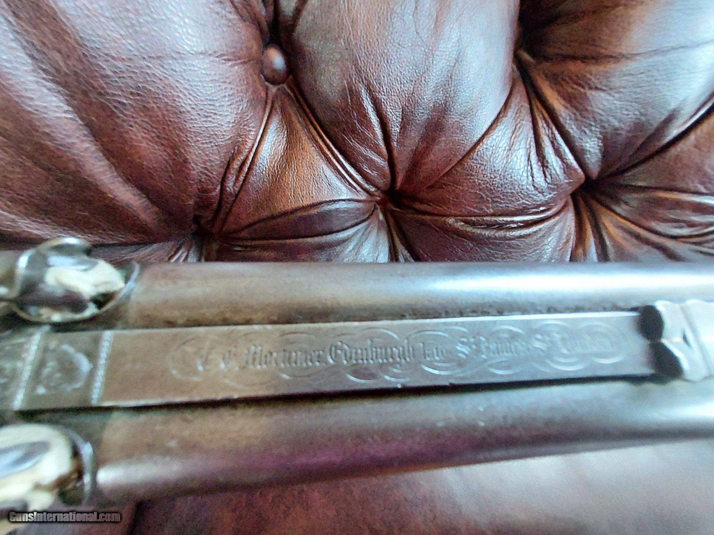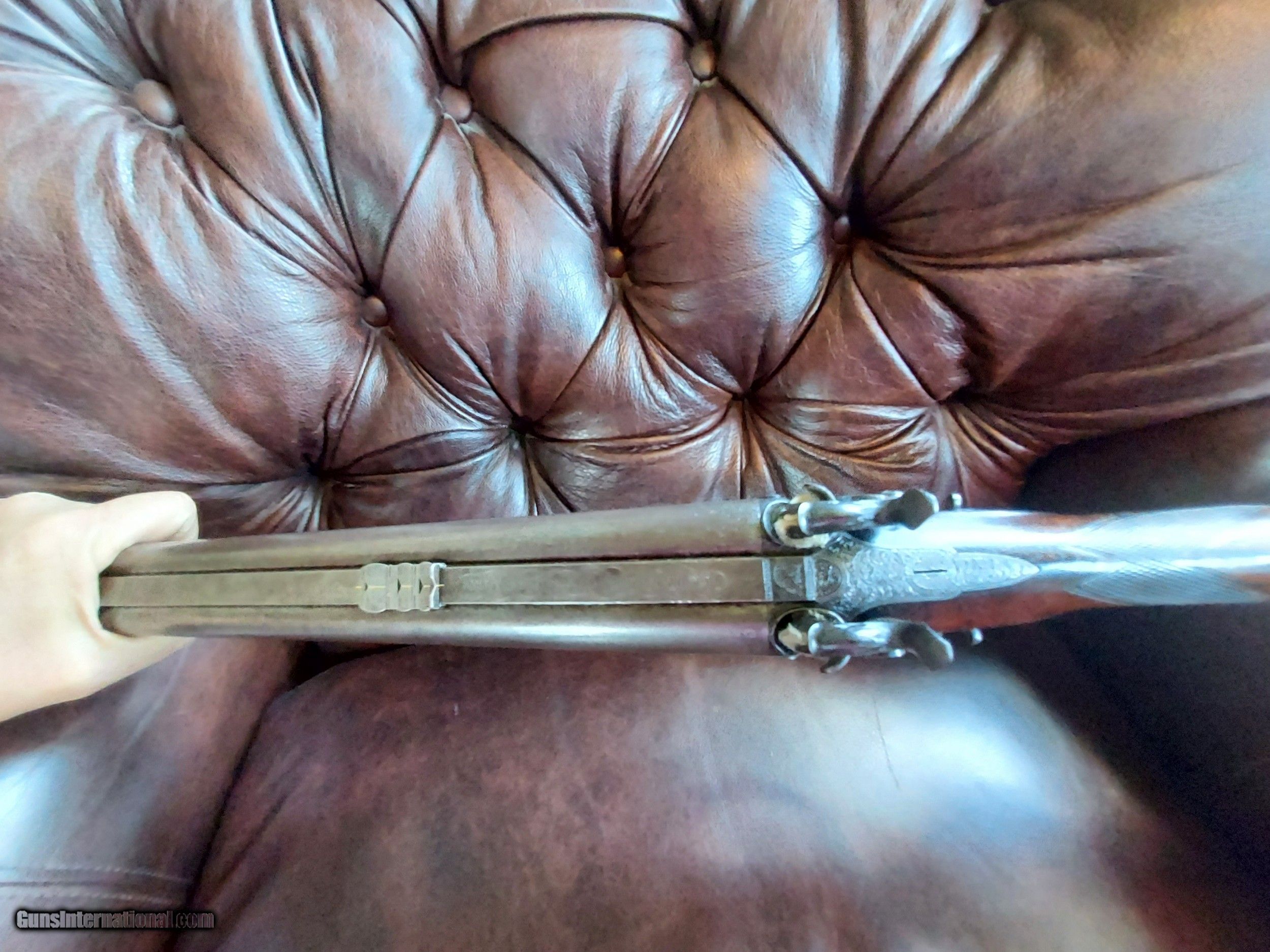 Description: This 18 bore percussion rifle has an excellent bore with no pitting. It is elaborately engreved with a 27 1/2" round barrel. There are no dents in the barrels and the triggers are both very crisp. The barrel is marked with the London Address. Offers considered SOLD |