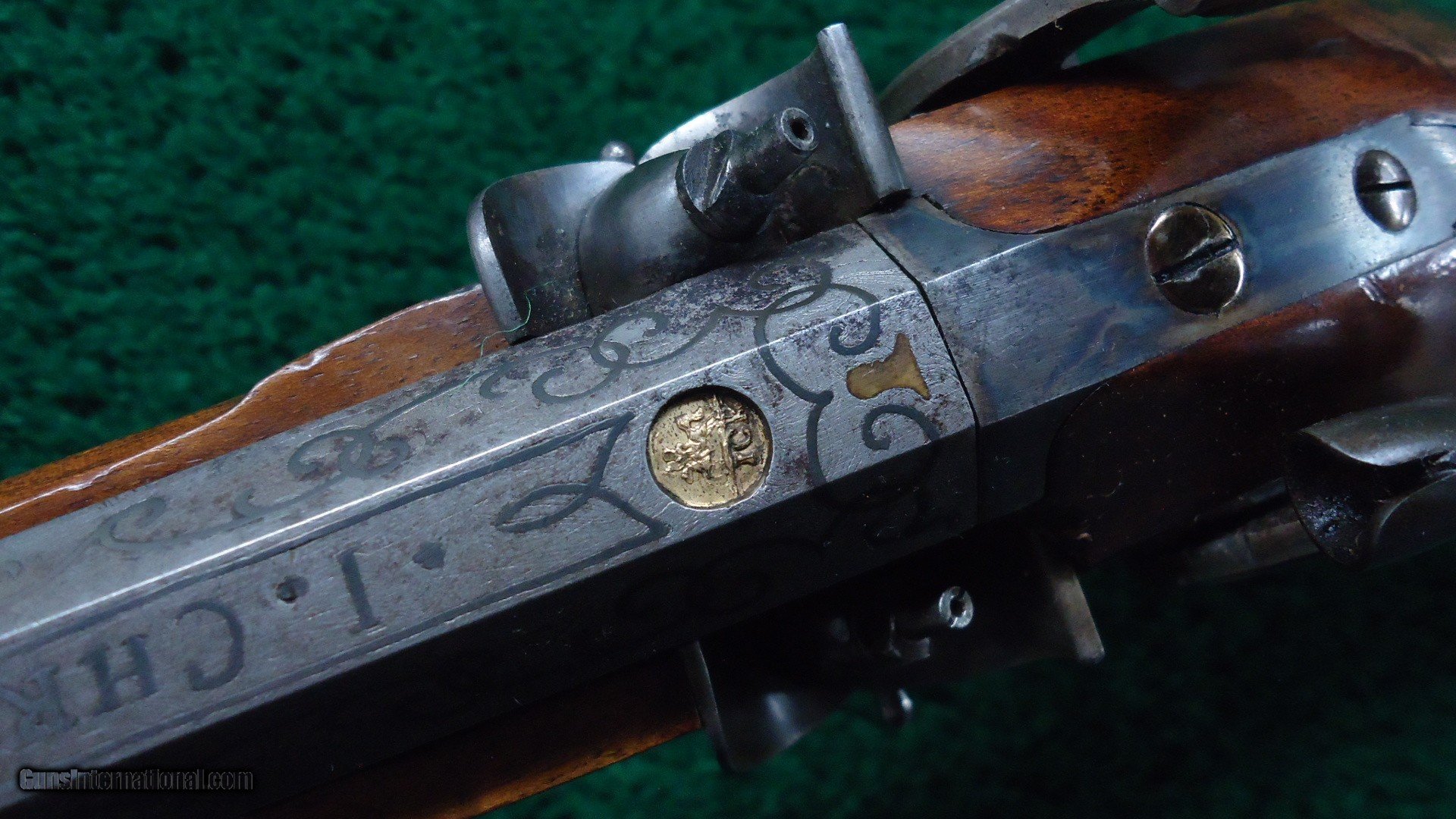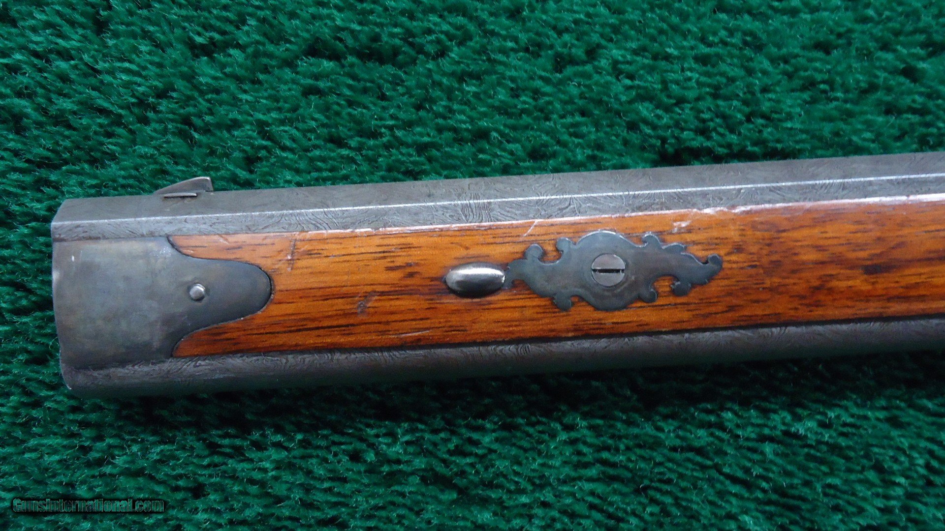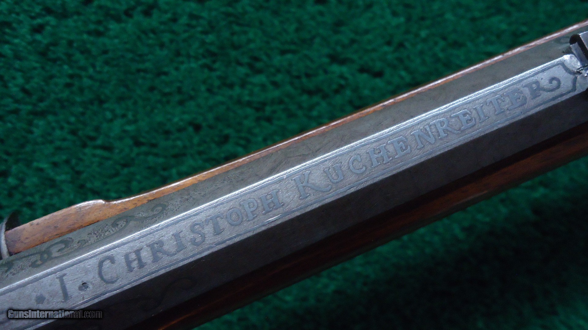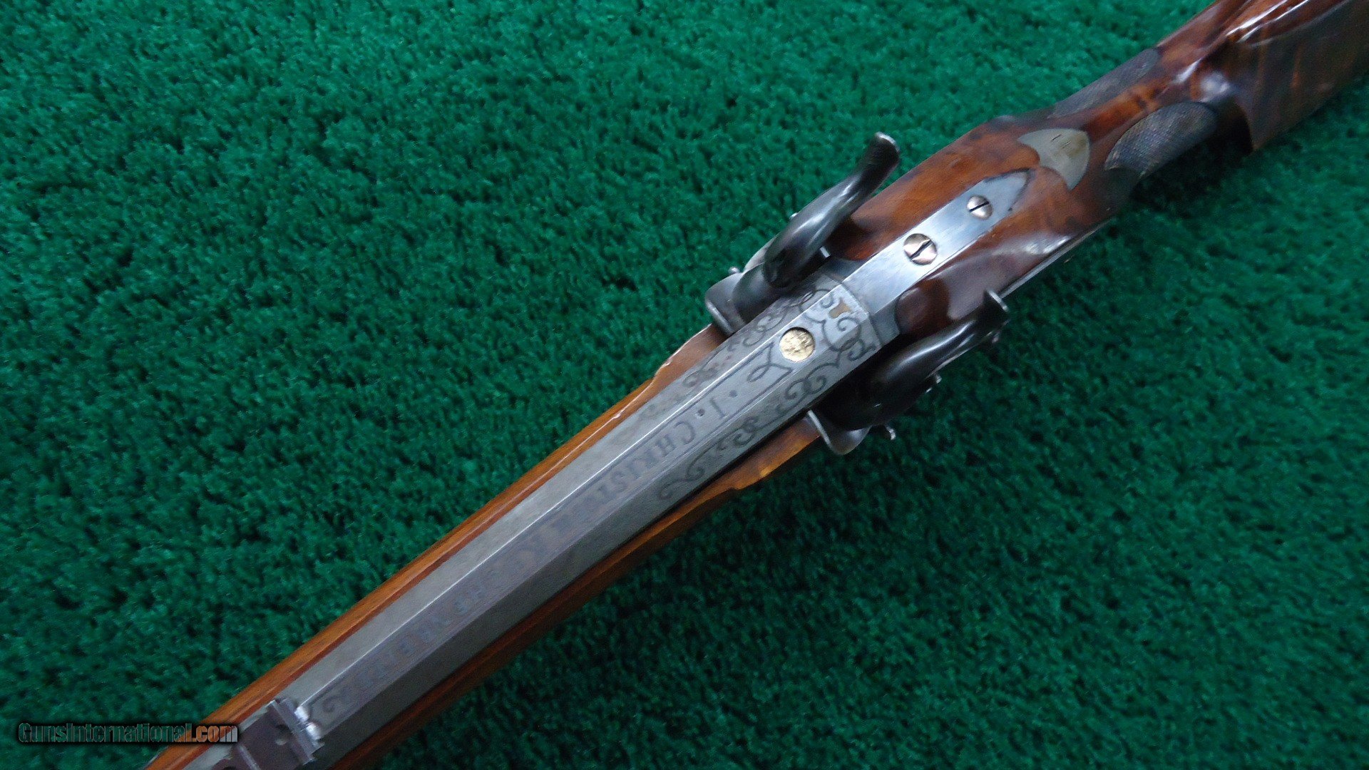 Description: This gun has a couple dozen silver inlays. Trigger guard is silver as is the buttplate. Both upper and lower barrels have silver inlays as well as the name "Kuchenreuter". Bores are 52 caliber rifle over 58 smoothbore. 30 inch Rifle barrel is full octagon and shotgun barrel is half octagon. Sights include silver blade front sight and flat top rear sight. Lock plates are super imposed over each other. Condition is great overall. Hammers have most all original case colors. Wood is excellent with most original varnish and sharp checkering. This is a very fancy ornate gun. You don't find craftsmen like this any more. Just a fantastic gun! Leroy Merz Antique Firearms specializes in antique and vintage Winchesters and other fine American firearms. Since 1965 Mr. Merz has taken part in the world of firearms and has been a contributor to many well known reference books. We have hundreds of additional guns in every price range at our home online. Search for Merz Antiques in google. SOLD Antique: Yes |