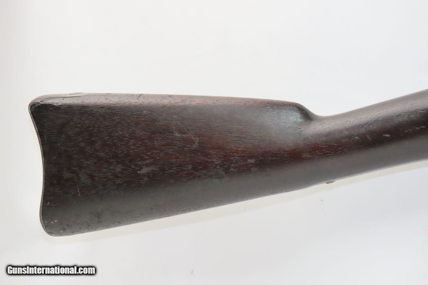 Description: FENIAN NEEDHAM Conversion JENKS & Son BRIDESBURG Rifle .58 Centerfire 1867 Like Those Used by FENIAN BROTHERHOOD Invasion of Canada Here we present an antique Needham Conversion of a U.S. Civil War Alfred Jenks & Son Bridesburg U.S. Contract Rifle-Musket manufacturer circa 1863 and representing a fascinating series of events in world history. Bridesburg Rifle Muskets were purchased as surplus just after the American Civil War by a secret Irish-American society calling themselves the Fenian Brotherhood. The Brotherhood plotted to invade and take over Canada (a British commonwealth) in order to negotiate the independence of Ireland from Britain. The first attack happened in June 1866 just over the border from Niagara, New York. The attack involved 600 Fenians against a column of Canadian Volunteers, and the attack was successful. However, upon retreat back to the U.S. they were arrested, and the guns confiscated. A short time later, the guns were released back to the group via political connections and a second attack was plotted. The Rifle Muskets were quite obsolete by this time, so the Brotherhood updated them using the patent of J&G Needham of England. The work was done in a shop in Trenton, New Jersey to about 5,000 rifles in 1869. This time the invasion was through Vermont in May of 1870 and involved 200 Fenians. This attack failed and resulted in their capture, ending a little-known chapter in world history. This breech-loading rifle is chambered for the .58 Centerfire cartridge, and is Civil War dated on the lock “1863”, along with “BRIDESBURG” and a federal eagle. The overall condition is very good. Strong action all around. Bright bore with nice rifling. The walnut stock is solid with an expected amount of wear. There is a Fenian “IN” marking on the left stock flat. Own the original! This is a legitimate antique and not a reproduction. Barrel is 37 inches. Caliber: .58 Centerfire Overall condition as seen in photos. Very Fast. Very Safe. FREE SHIPPING WORLDWIDE. Delivered directly to your door by express mail! Guaranteed AUTHENTIC & Includes CERTIFICATE OF AUTHENTICITY. ancestryguns $2265 #215114 SOLD Antique: Yes |