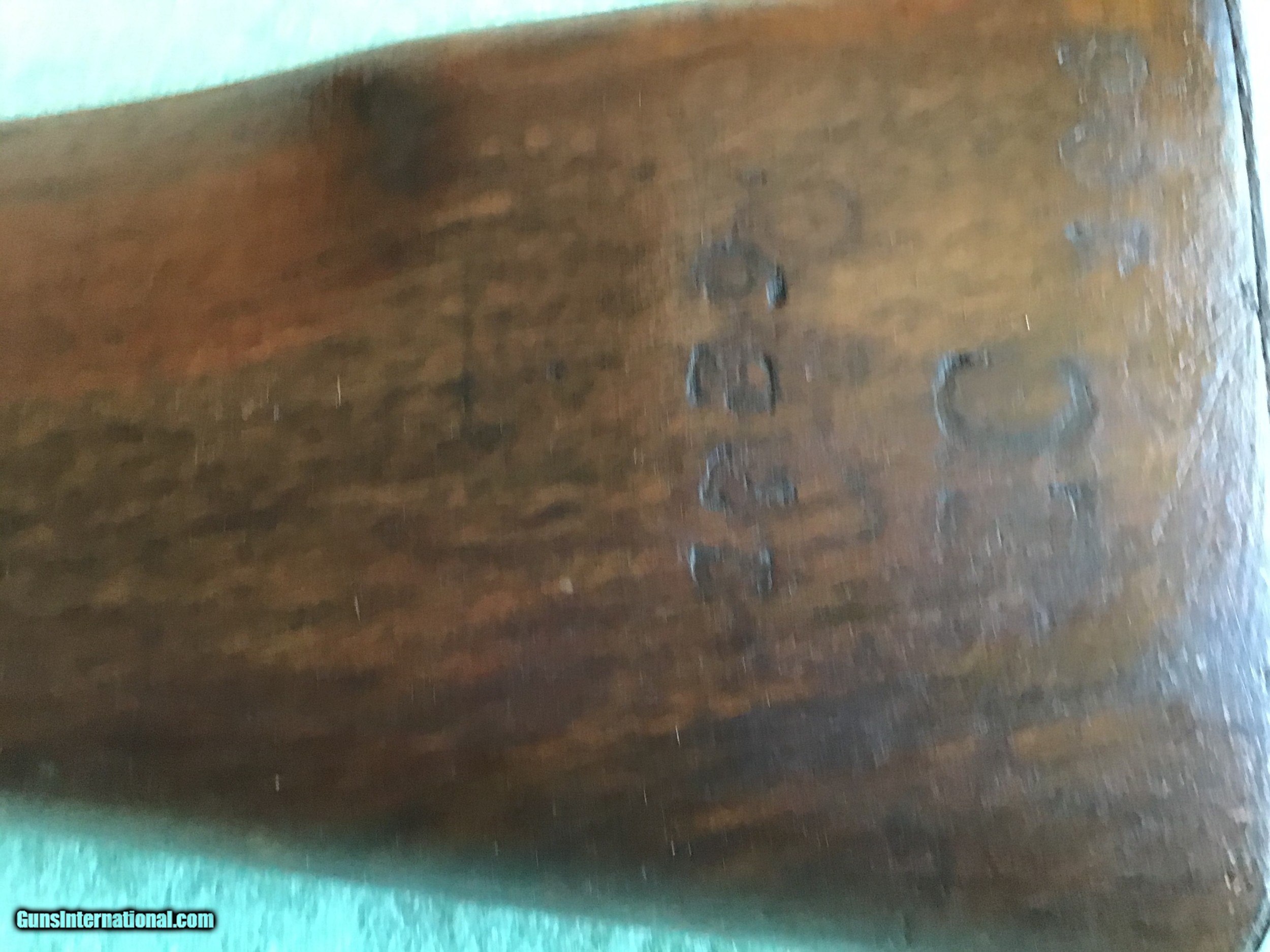 Description: French Model 1822 Musket Converted To Percussion (Civil War Import) made at M R de L Etienne in France as a Flintlock in 1830 as marked on the barrel and later converted to percussion. The full length original stock is in very good Condition with only a few minor dents and light wear and marked 1739 (possible sr. Number) along with a unit and rack number. The barrel is full length with a smooth dark brown patina and stamped 1830 (date) 1739 (possible sr. Number), Cda18 and measures approximately 69 caliber. The tang is marked Mo.1822 T for the model. The tip of the nipple is broken. The lock functions as it should. All metal parts have a smooth dark brown patina. Both original sling swivels and the ramrod are present. This is a very good representative of a civil war import musket. Shipping will be actual cost approximately 50 dollars. Feel free to call me with any questions 218-839-9272 or email chriskobberdahl2gmail. SALE PENDING SOLD Antique: Yes Manufacturer: French Model: 1822 Serial Number: 1739? Caliber Info: 69 approximately Condition: Very good Metal Condition: Very good Wood Condition: Very good Bore Condition: Dark |