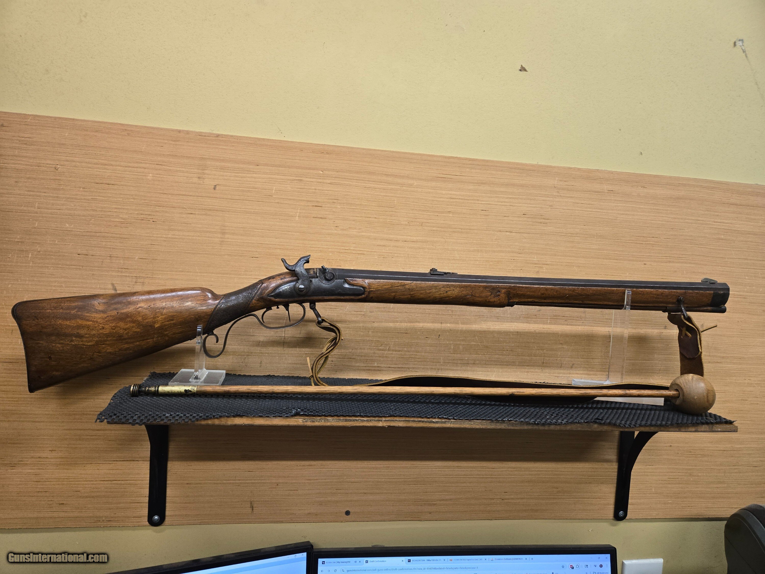 Description: CONSIGNMENT USED GOOD CONDITION GERMAN JAGER RIFLE PRECUSSION .62 CAL -- 25" OCT BARREL -- DOUBLE SET TRIGGERS THAT HAS TO BE SET TO COCK HAMMER BELIVED TO BE PRODUCED MID 1800'S IN GERMAN -- BORE IN GOOD CONDITION WITH DEEP RIFLING ****PLEASE CALL IN THE WITH THE SELLER’S INVENTORY NUMBER IF INQUIRING ABOUT A FIREARM****** WE DO NOT SHIP FIREARMS AND/OR FIREARMS’ PARTS OUT OF THE 50 UNITED STATES, SO DON’T ASK—YOU NEED TO KNOW IF FIREARM IS LEGAL FOR YOUR STATE PRICE REFLECTS PAYMENT BY MONEY ORDER / CASHIERS CHECK. A 3% PREMIUM IS ADDED FOR CREDIT CARDS. WE DO ACCEPT PERSONAL OR BUSINESS CHECKS, BUT THERE IS A GRACE PERIOD OF 10 BUSINESSS DAYS ON THEM. Shipping is $60 for handguns and $50 for long guns. Shipping to Alaska and Hawaii will be more based on the weight of firearm. WE DO OFFER LAYAWAY PLANS FOR 30,60, OR 90 DAYS.NOT ON CONSIGNMENT GUNS THERE IS A $5.00 CHARGE FOR EVERY 30 DAYS ITEM IS ON LAYAWAY. WE ALSO REQUIRE A 20% DOWN PAYMENT ON TOTAL OF LAYAWAY SALE. LAYAWAYS ARE NON- REFUNDABLE. HERE IS HOW THIS PROCESS WORKS. YOU WOULD CALL US AT 540-337-9218 WITH LISTER # TO PURCHASE THE GUN. THEN ONCE I HAVE RECEIVED PAYMENT AND AN FFL (FEDERAL FIREARMS LICENSE) FROM A LICENSED DEALER IN YOUR AREA OF YOUR CHOICE. WE WILL THEN SHIP THE GUN TO THEM. YOU WOULD THEN PICK UP THE GUN AT YOUR LOCAL DEALER AND DO PAPERWORK THERE. Please have your FFL Dealers contact information when you call. DOMINION OUTDOORS 15 ANGELA COURT FISHERSVILLE, VA 22939 540-337-9218 540-337-2422 fax M – F 9 a.m. to 6 p.m. ETZ Sat 9 a.m. to 4 p.m. ETZ ****PLEASE CALL IN THE WITH THE SELLER’S INVENTORY NUMBER**** ***PLANO HARD CASES AVAIABLE FOR PURCHASE $25.00 WITH THE PURCHASE OF A FIREARM** *** Online prices compared to in store prices will vary. *** SOLD |