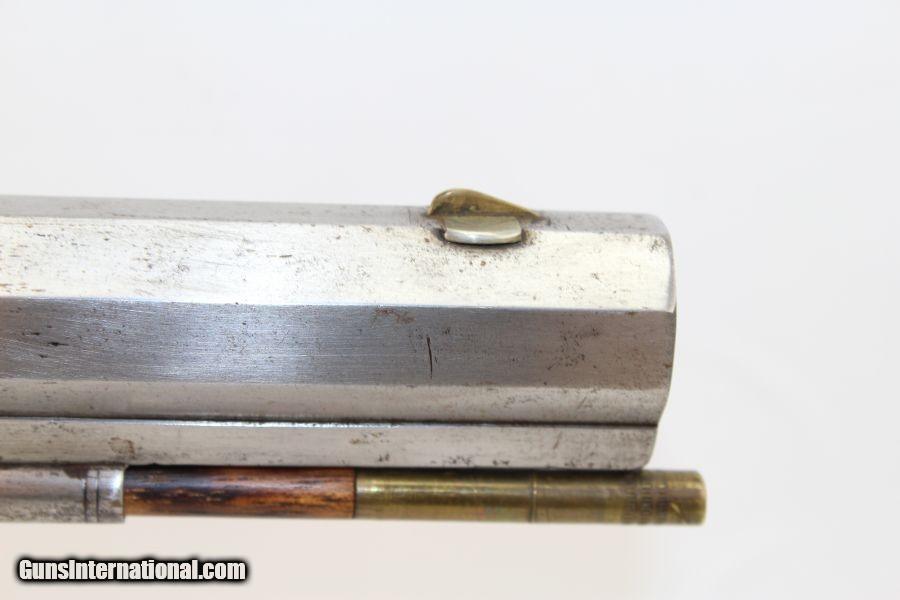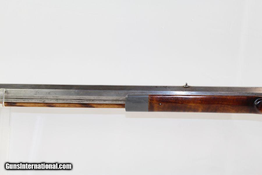Description: HANDSOME Maple Stocked Antique LONG RIFLE With Interesting Inscription Here we present an antique Half-Stock Long Rifle Marked “Bob Robbins”, made circa the mid-19th Century. This is a very attractive rifle with a great maple stock and attractive patch box. The patch box has been inscribed “Bob Robbins/Cal. .336”. The bore is indeed about .34 caliber rounded up. This rifle would have made a great hunting rifle in the 19th Century and it has every appearance that it has been shot recently. The overall condition is very good. The metal surfaces are bright. The markings are clear. The maple stock is smooth and solid. The bore is clean with sharp rifling. The action is excellent. Own the original! This is a legitimate antique and not a reproduction. Barrel is 32 inches. Caliber: .34 Overall condition as seen in photos. Very Fast. Very Safe. FREE SHIPPING WORLDWIDE. Delivered directly to your door by express mail! Guaranteed AUTHENTIC & Includes CERTIFICATE OF AUTHENTICITY. ancestryguns $1390 #8270 SOLD Antique: Yes |