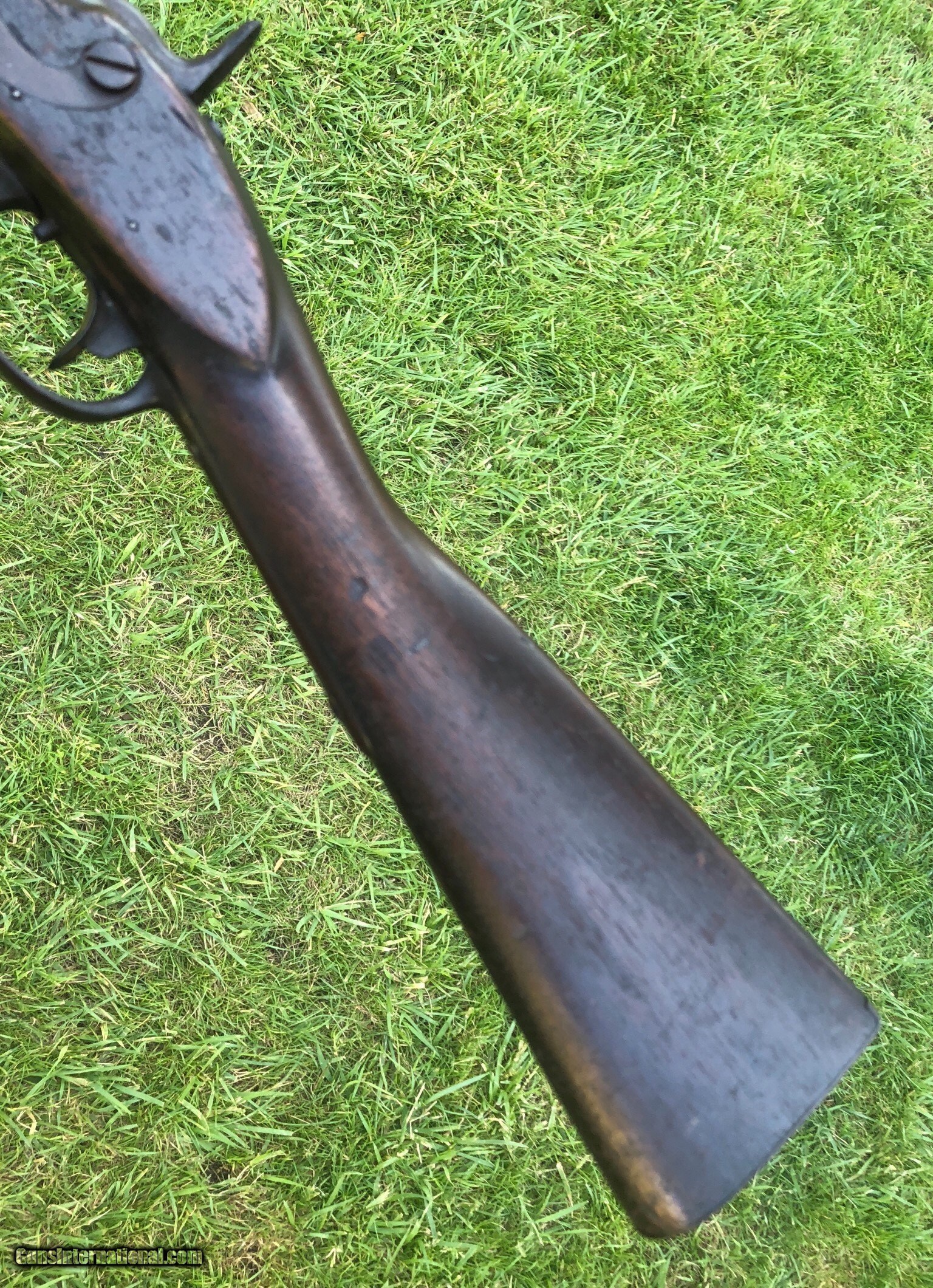 Description: This is a nice Harpers Ferry Model 1816 Musket dated 1820 Altered by Henry Leman in Pennsylvania. This musket is in an overall attic untouched patina condition. Mechnaicallly functions fine. These are desirable bolster conversions by Leman as he was a quality gunsmith during the period and very famous. There is a “WR” scratched in the wood from the period. This is a great musket and a nice wall hanger fit for a Civil war collection or a Musket collection! Shipping is $70 fully insured. Thank you! asking $975 sold SOLD Antique: Yes |