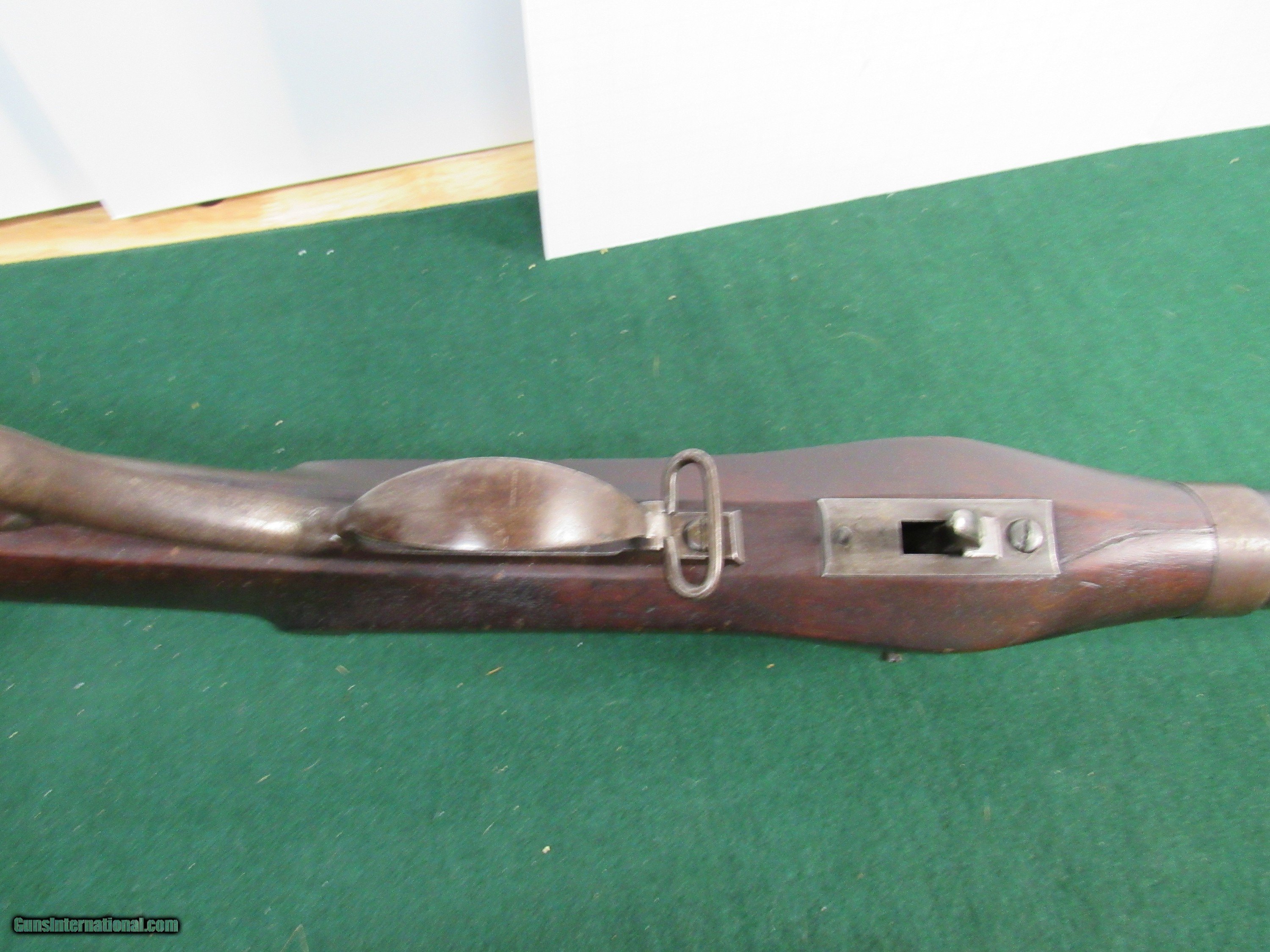 Description: J.H. Hall Harpers Ferry Breech Loader Rifle - .52 Cal - Circa 1832 in Fine Condition - Model M1819 Second Model The rifle has the unique Hall breechblock mechanism that pivots upward for loading and distinctive trigger guard with grip extension. The barrel, barrel bands, receiver, trigger guard, and buttplate have a brown lacquer finish. The breechblock and lock are casehardened, and the iron button head ramrod is bright - Black walnut stock - The fixed blade and notch sights are offset to the left because of the position of the action - Dated 1832 - Barrel length is 33 inches with an overall length of 53 inches. Overall condition is fine. This is a second model. Bore is excellent. Metal is a brown purple. Has the original ram rod, and is a 3 band. This is an exceptional complete rifle in fine condition, being scarce to find these circa 1832 rifles in this condition. This one is fit for the discriminating collector, from the 19th Century historic Harpers Ferry Arsenal - Payment forms accepted: Checks / Money Orders / Mastercard & Visa add 2.5% SOLD Manufacturer: Harpers Ferry Model: M1819 Caliber Info: .52 cal |
