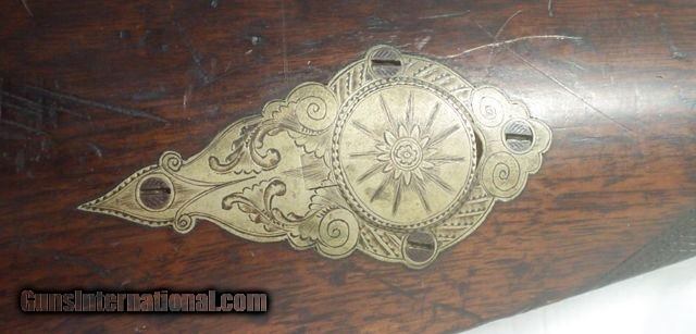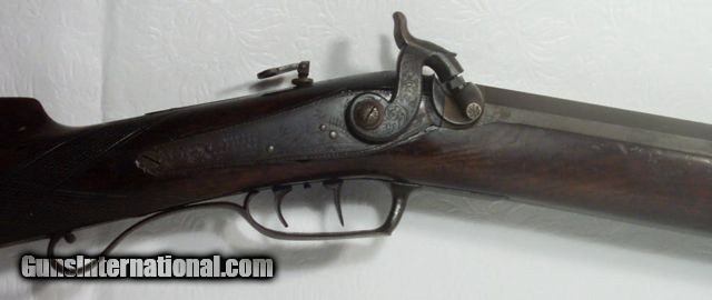 Description: Heavy Sporting or Target Rifle; barrel marked “J.M. Caswell Jr. Lansingburgh”; Lock marked “Warren & Steele, Albany”; Very High Quality Rifle with a 26” Octagon Barrel; 50 cal. measuring 1¼” across flats; rifle weighs 11½ lbs.; Fully function action & Double Set Triggers; tang sight; Very Nice patch box & squirrel on left side of stock (I know there’s lots of squirrels in New York but they must grow ‘em big to need a 50 cal. to kill one!); Overall Excellent Antique Condition; Caswell operated in New York from about 1812 till around 1850; Great American Made Antique Rifle; antique, no FFL/C&R required for shipping; from my own personal collection; Long guns shipped by FedEx in a hard case $65; all other items shipped fully insured Priority Mail; - -Hand guns $30 -- Spurs $30-- Knives, Swords & Sabers $30—Grips $20 – Scopes $10; return policy: three days inspection from the date the item is received; full refund of shipping both ways ONLY IF THE ITEM IS MISREPRESENTED. SOLD Antique: Yes Manufacturer: JM Caswell Jr. Model: Sporting/Target |