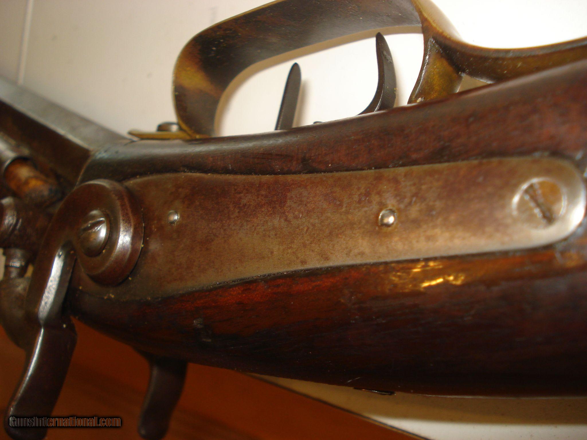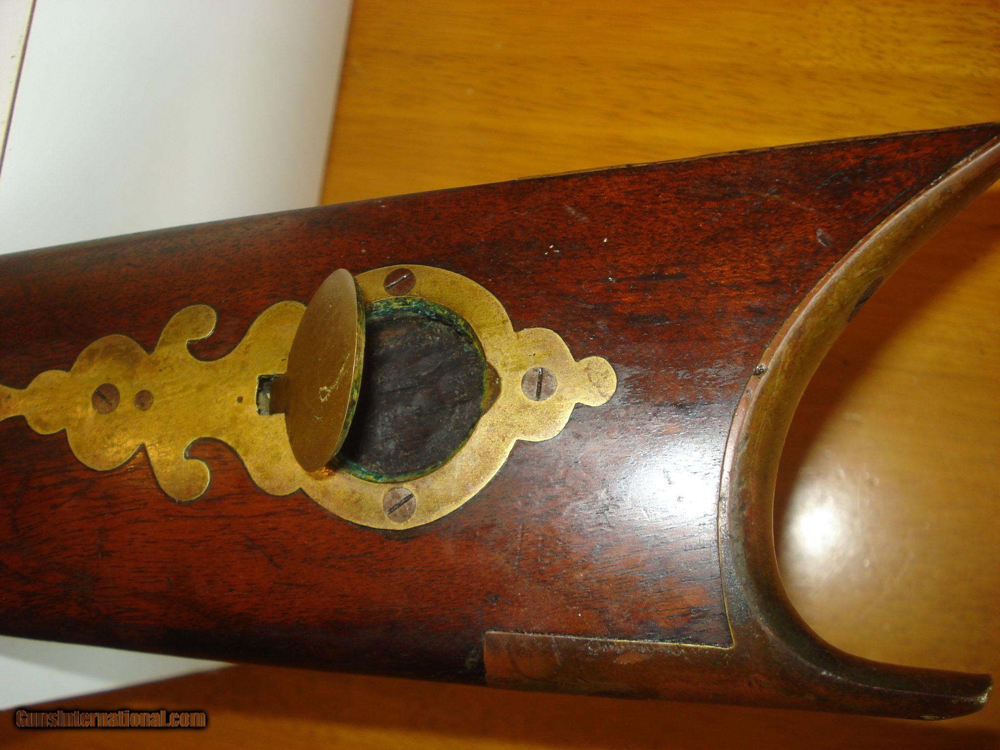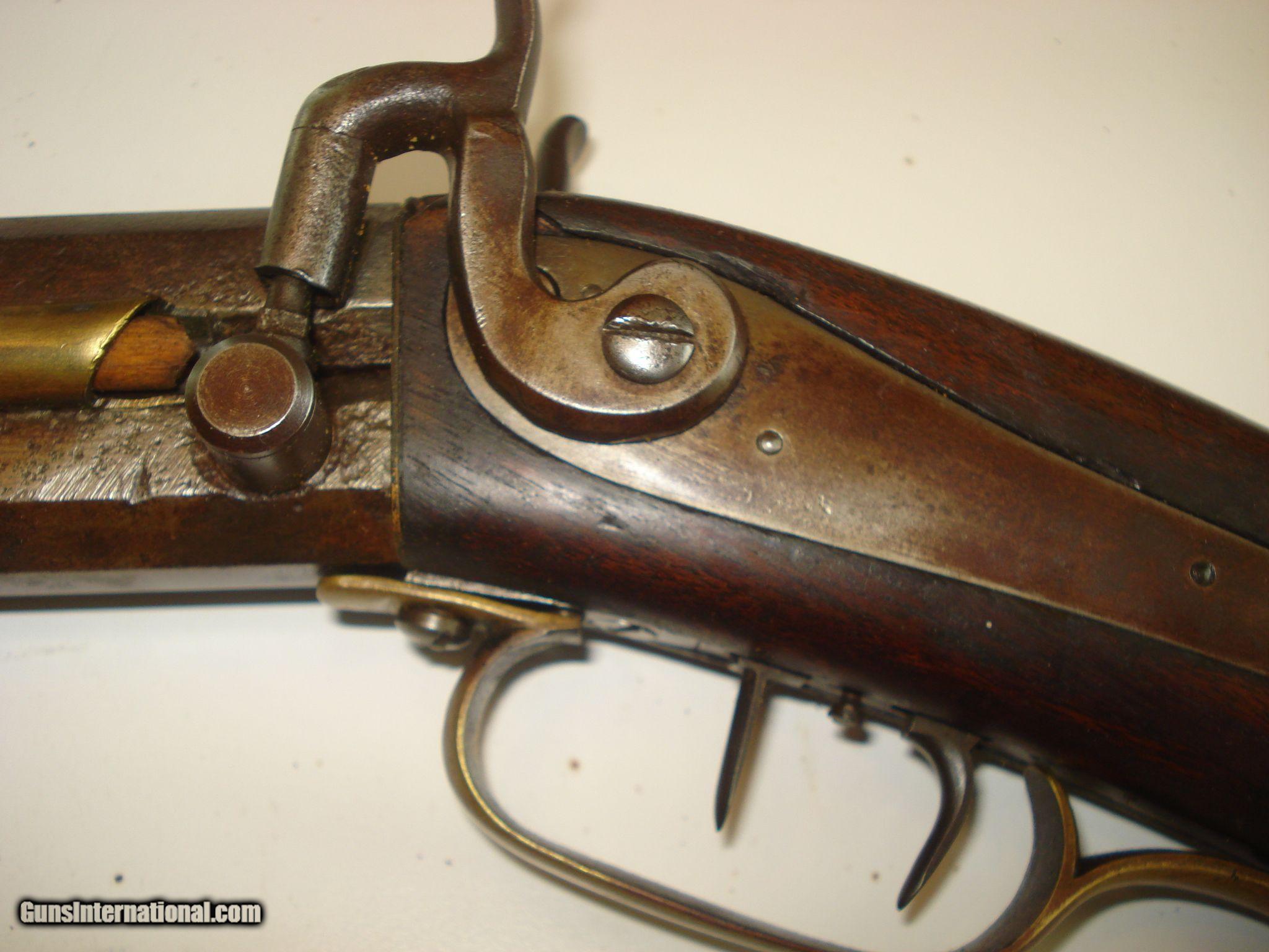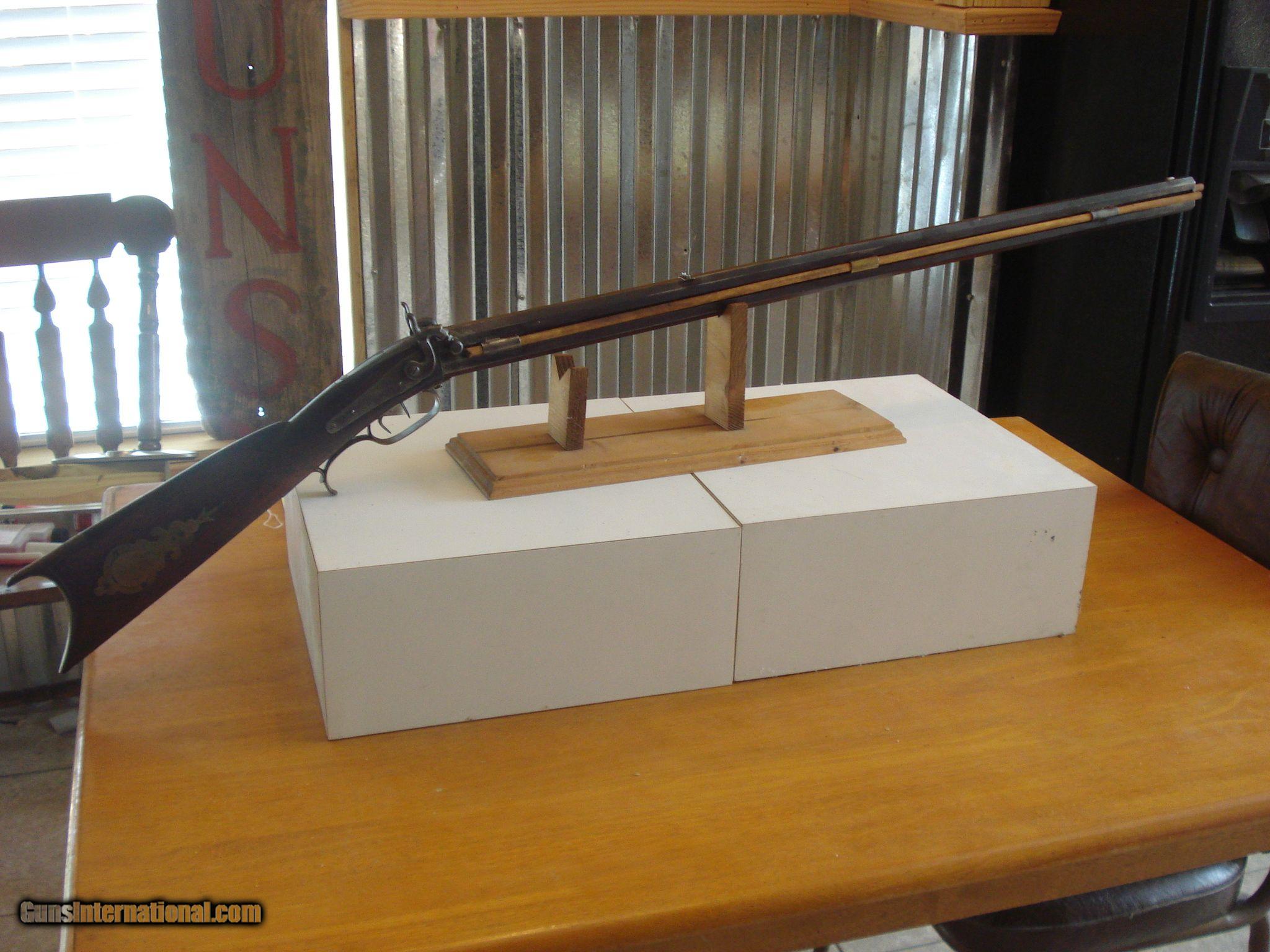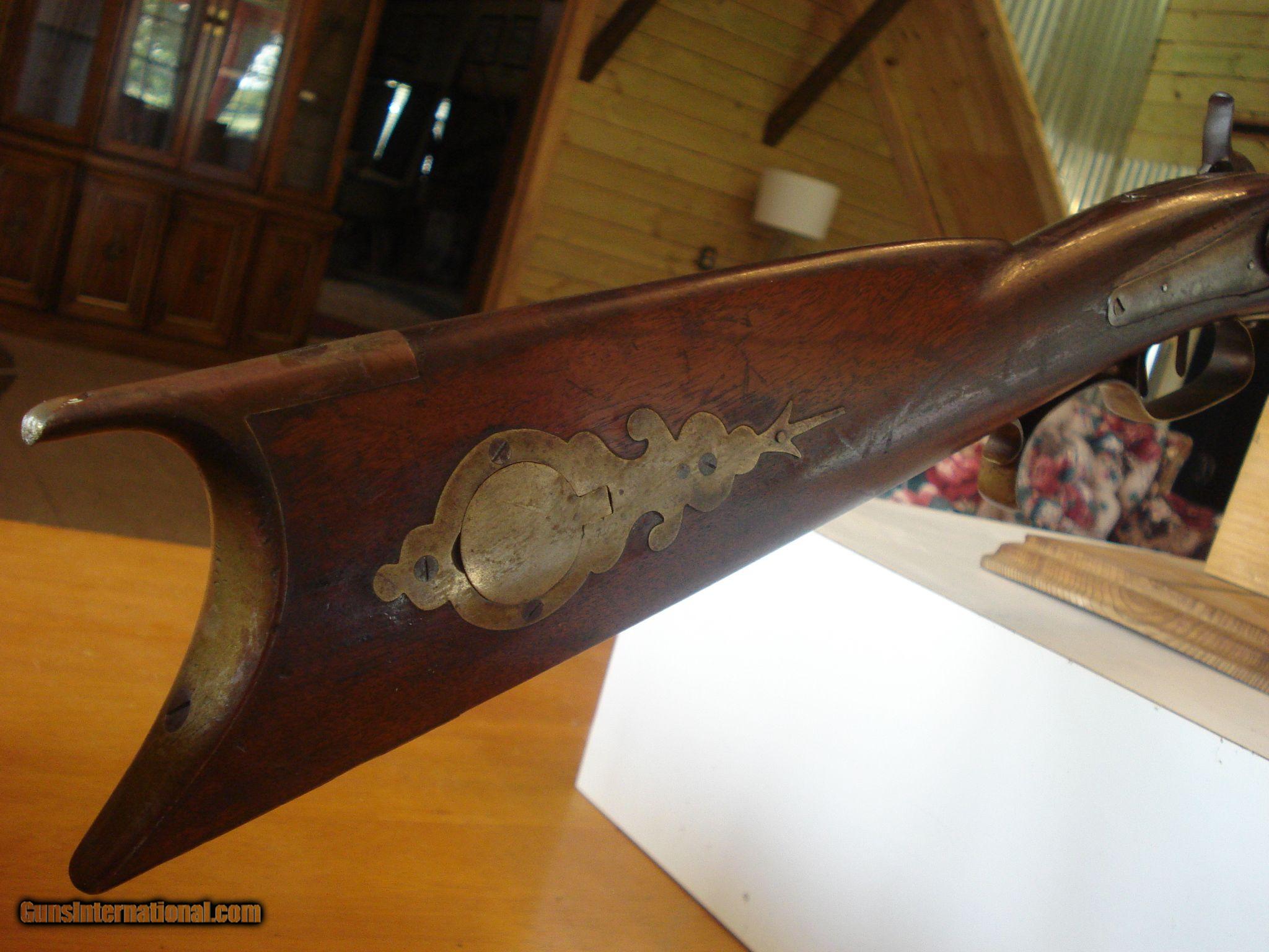Description: This is really a very nice, very unusual piece. According to American Gun Smiths by Sellers, he was in business from 1867 to 1875. The 45 caliber rifled barrels are 34 inches long and in fine condition. The gun is unusual in that it has a double set trigger, which functions for both barrels. The left barrel, or lower barrel has an extension to the hammer, so it will fire. The gun also has a nice, well fitted patch box. It also has double pipes and ram rods. A fine piece to collect or to use on a primitive weapon hunt! The barrel is marked J.P. Guyer Muncie, PA. in a single line. US only – no International sales. Buyer pays $35.00 shipping. Three-day inspection allowed if notification is given and item is returned UNALTERED, less shipping. Antique – no FFL required. If your state or area requires an FFL for antiques, buyer will need to provide one. Must be 21 years of age to purchase. Any weapon you plan to shoot should be inspected by a competent gunsmith before firing. SOLD Antique: Yes |