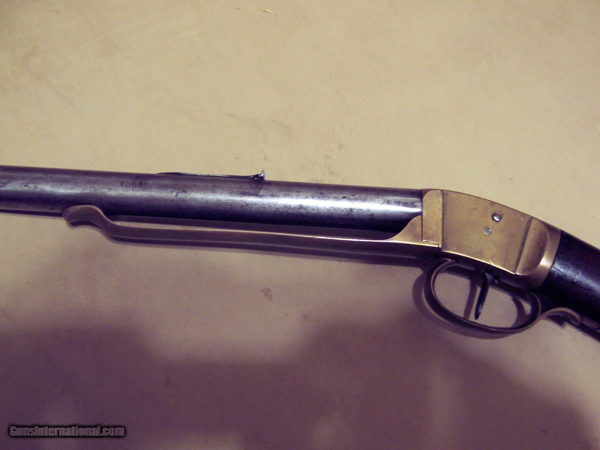 Description: works fine in dry fire , appx 22 caliber , patina finish , marked j weidner newark firse by percussion cap SOLD Antique: Yes |