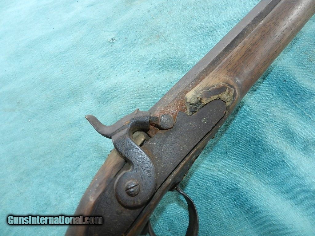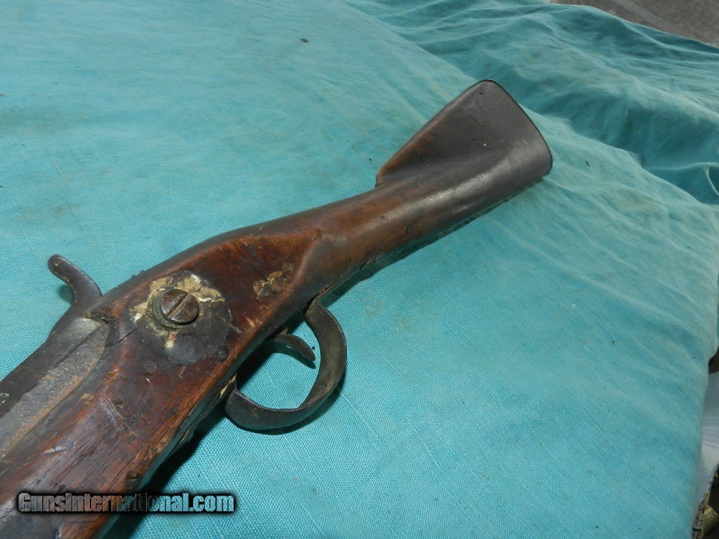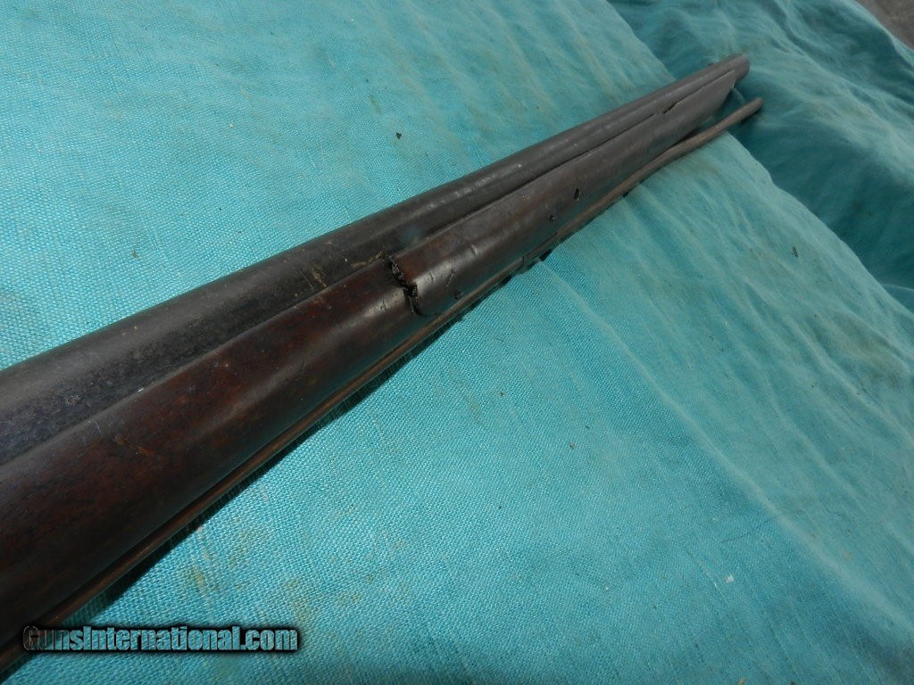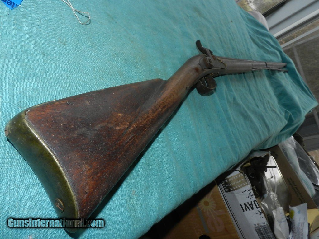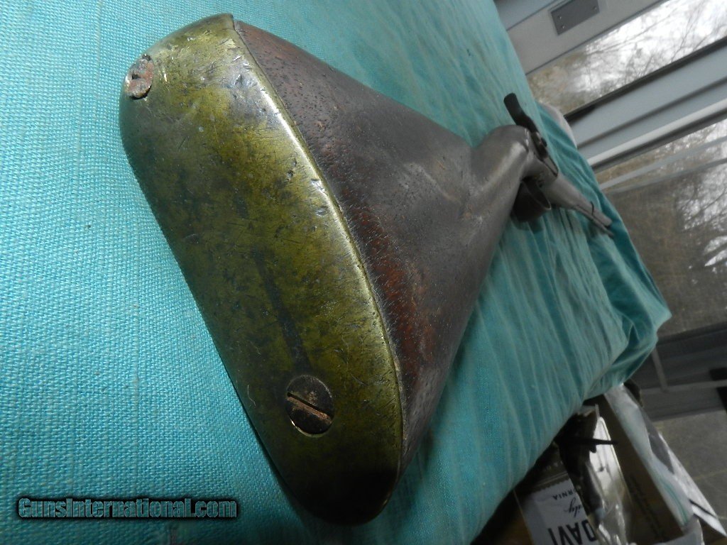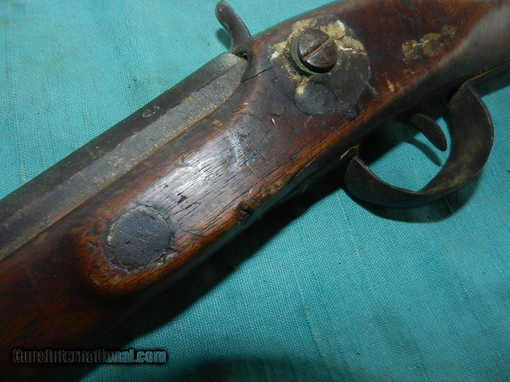 Description: <<<SOLD>>>An interesting 19th century fowler with a lock-plate named: L.T. Cooper, and a 36" long round barrel with a flared muzzle, and the bore is about .58 to .60 caliber? The lock works well, and the walnut wood has some section missing near the lock plate and around the side screws there is wood putty, and some was added around the trigger guard long ago, with the back end of the brass trigger guard missing but filled in. Comes with a plain hard wood ram-rod, and it appears that this was a flintlock at one time with an oval proof mark on the barrel. This is sold as a wall hanger for your mantle. Can be re-stored with some time and card added to up grade this old gal! Exterior metal is brown patina, and the butt-plate,and ram-rod ferrules are brass. Good project gun with already lots of character.Check my inventory of rare grips, unusual gun parts, barrels and holsters. Shipping may be higher than stated as shippers raise their prices twice year without notice! When buying a gun always have it examined by a competent gunsmith before shooting. To buy a gun from me you must get a direct email for me, with details, and shipping cost. We don’t have a web site .I prefer money orders or a check. Item ships when funds come in. If you can only pay with a card let me know. I try to keep guns affordable, which means I make less money than most dealers. You won’t get altitude sickness, or nose bleed, with my prices! I consistently have the best selection of older guns If you attempt to buy, you must still contact us for details . Best to email to buy. Sometimes a local person can stop buy and purchase before the gun is removed. Sometimes not home to get calls. Some guns are required shipment to a gun dealer near you for a transfer to you when it arrives. Otherwise many older or black powder guns ship to your door. With the widest selection of older guns at great prices, We don’t have a store, and sell on the internet only. I’m easy to get along with. Thank You. SOLD Antique: Yes |