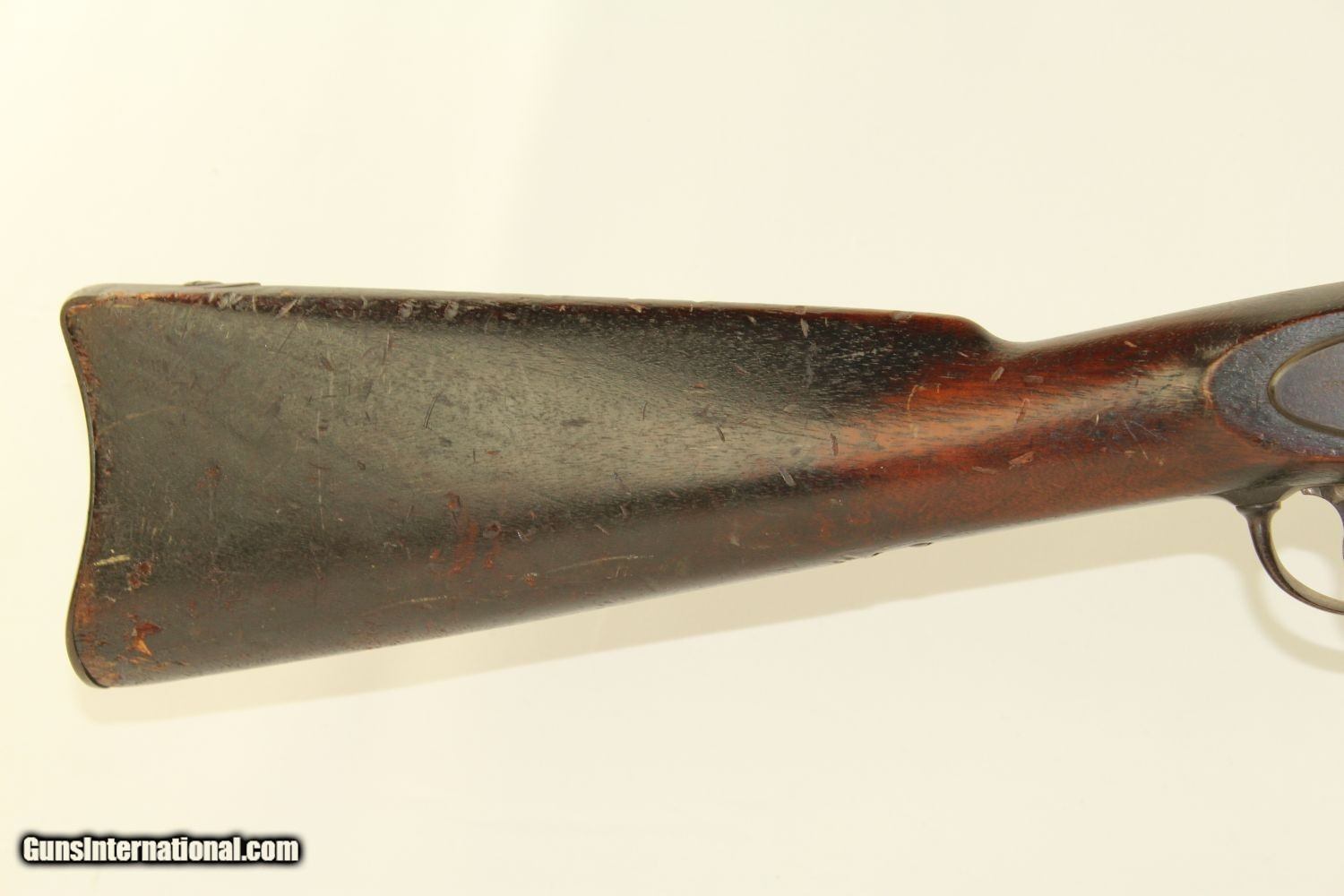 Description: NEW JERSEY STATE Contract CIVIL WAR COLT MUSKET “NJ” Marked Special Model 1861 by Samuel Colt! Here we present an antique Civil War Colt Special Contract Model 1861 Percussion Rifle-Musket, produced in 1863 at the Colts Patent Fire Arms Manufacturing Company of Hartford, Connecticut. Production began in September of 1862 while the war was in full swing. The Union was still trying to make up for arms shortages and the destruction of Harpers Ferry Armory with production at Springfield, supplementing this with contracts with over 20 other contractors, like Colt, for rifle-muskets. The American Civil War raged from April 12, 1861 to May 9, 1865 in which roughly 130,000 Special Model 1861 muskets were produced by Colt for the US government. Like the Springfield production of the Model 1861, the Colt could be considered the “everyman’s” infantry weapon. This musket is stamped with "N.J." on the left side of the barrel and left stock flat. There are four “kill” notches carved into the top of the comb of the stock, which are thought provoking to say the least. The overall condition is Very Good and untouched. The action is strong all around. You can tell the bore is in great shape even under the decades of dust. Some of the markings are faded, but all remain legible. With many bumps, dings, and scratches, this rifle has seen its fair share of battle. Indeed, a very fine addition to any Civil War collection. Own the original! This is a legitimate antique and not a reproduction. Barrel is 39 inches. Caliber: .58 Percussion Overall condition as seen in photos. Very Fast. Very Safe. FREE SHIPPING WORLDWIDE. Delivered directly to your door by express mail! Guaranteed AUTHENTIC & Includes CERTIFICATE OF AUTHENTICITY. ancestryguns $2150 #190952 SOLD Antique: Yes |