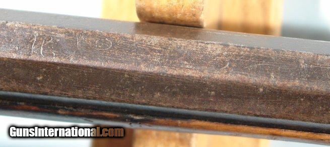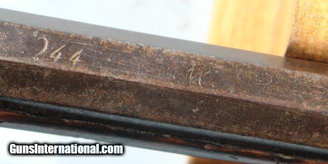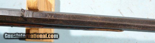 Description: NORTH CAROLINA DEEP RIVER SCHOOL PERCUSSION HALF STOCK RIFLE CIRCA 1840’S-1850’S. .44 caliber rifled 42” octagon barrel signed in script “L W.” and numbered on the top flat “244”. Typical iron mounted very plain rifle with distinctive features of the Deep River School in both the architecture of the stock as well as the form of the trigger guard and barrel tang. All original and in better than average condition for one of these rifles that saw long and hard use with many still in service during the Great Depression. Original ramrod and set triggers in working order. Dark bore and faint rifling. Scarce North Carolina rifle at a reasonable price. SOLD Antique: Yes |