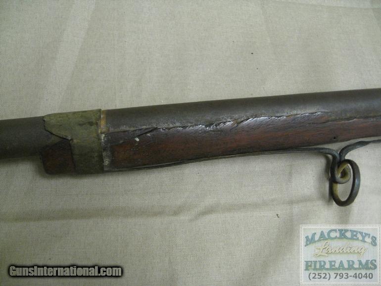 Description: Ottoman Camel Gun with a 45" barrel and inlaid bone. The wood shows some damage and cracking, as shown in the photos. Beautiful patina--a nice piece for display. Knives as shown. Give us a call for more information at 252-793-4040. Please reference our inventory #87982. No FFL required for shipping. No shipping outside of the US.