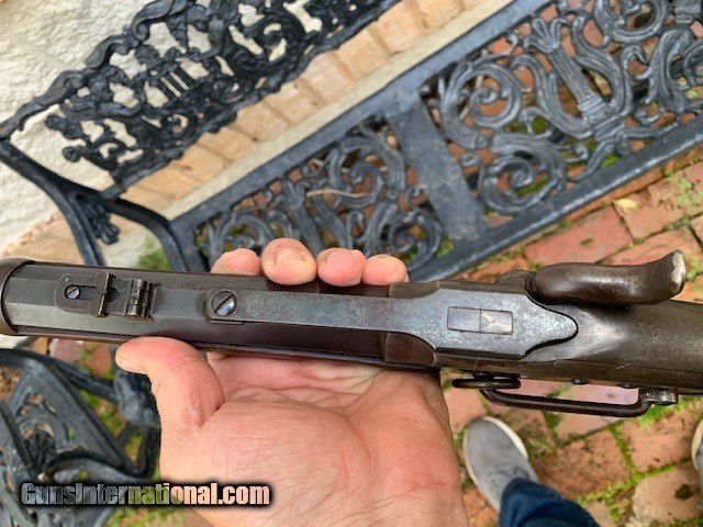 Description: Here is a really nice Smith Carbine Serial # 5193 with Lots original original blue and some case colors, Wood is really nice also with a nice bold deep inspectors cartouch. Mechanics perfect also SOLD Antique: Yes Manufacturer: Smith Serial Number: 5193 |