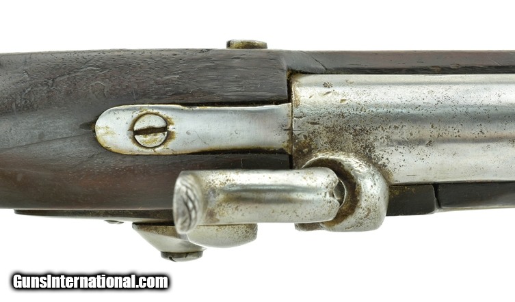P.S. Justice Percussion rifled musket. .69 Caliber. Barrel length 39”. Bore is excellent. Rifling is excellent. This is the third type variation. Barrel is in the white (or arsenal bright). Lock marked “P.S. Justice Phila. PA.”. Stock shows normal handling marks but no cracks of chips. Brass parts have a nice patina. Approximately 2,100 made for the Civil War.