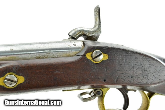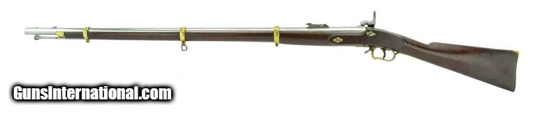 Description: P.S. Justice Percussion rifled musket. .69 Caliber. Barrel length 39”. Bore is excellent. Rifling is excellent. This is the third type variation. Barrel is in the white (or arsenal bright). Lock marked “P.S. Justice Phila. PA.”. Stock shows normal handling marks but no cracks of chips. Brass parts have a nice patina. Approximately 2,100 made for the Civil War. SOLD Antique: Yes |
