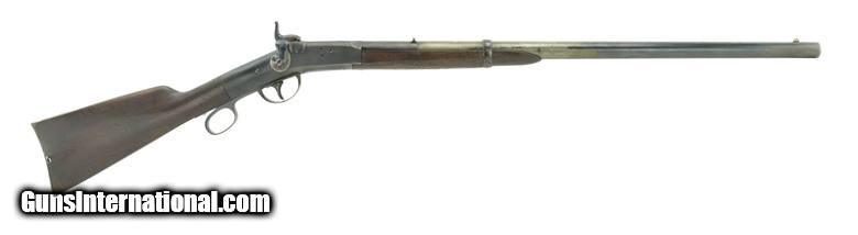 Perry Sporting Rifle .54 caliber rifle. Scarce breech loading percussion rifle, circa 1850’s -1860’s. Barrel and receiver have approximately 75% of a restored blue. Small parts have beautiful case colors. Wood is excellent as restored. Barrel is 26”. Very good plus overall condition.