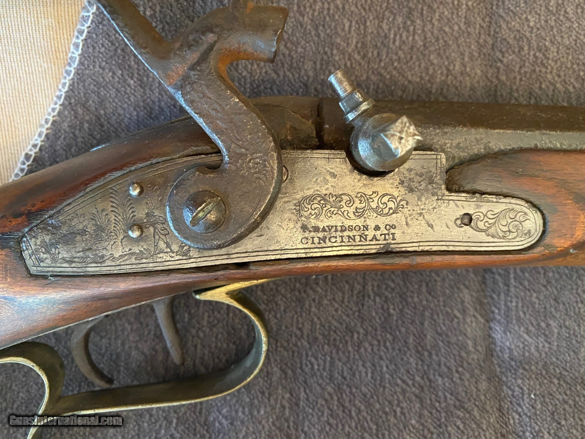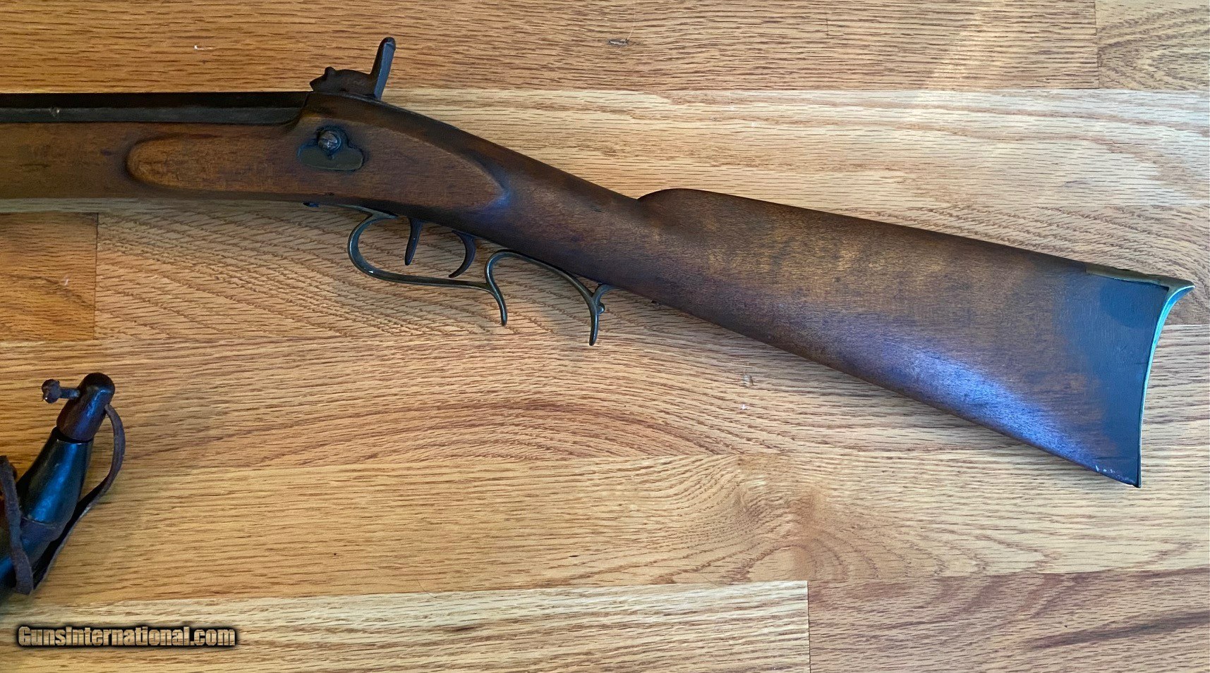 Description: Original unsigned Tennessee Mountain Percussion Rifle by Charlie B. Whitaker. This Upper Cumberland Percussion Rifle was made in Putnam County Tennessee by Charlie B. Whitaker, the last of the old time gunsmiths. This was his personal rifle that he used up until his death. It comes with his shooting pouch and powder horn. Barrel is 41 inches, approximately .47 caliber, and 1 one across the flats. LOP is 13 inches. The barrel was rifled on an old rifling jig that originally belonged to Wyatt Atkinson. Rifle comes with original shooting pounch and powder horn that belonged to Mr. Whitaker and accompanied the rifle when I acquired it. Layaway is available upon request. Please contact me at zamagiyahoo if you have questions. SOLD Antique: Yes Rifle Caliber: .45 Manufacturer: Hand Made Barrel Length: 41 inches Barrel Type: Octagon Triggers: Double Set |