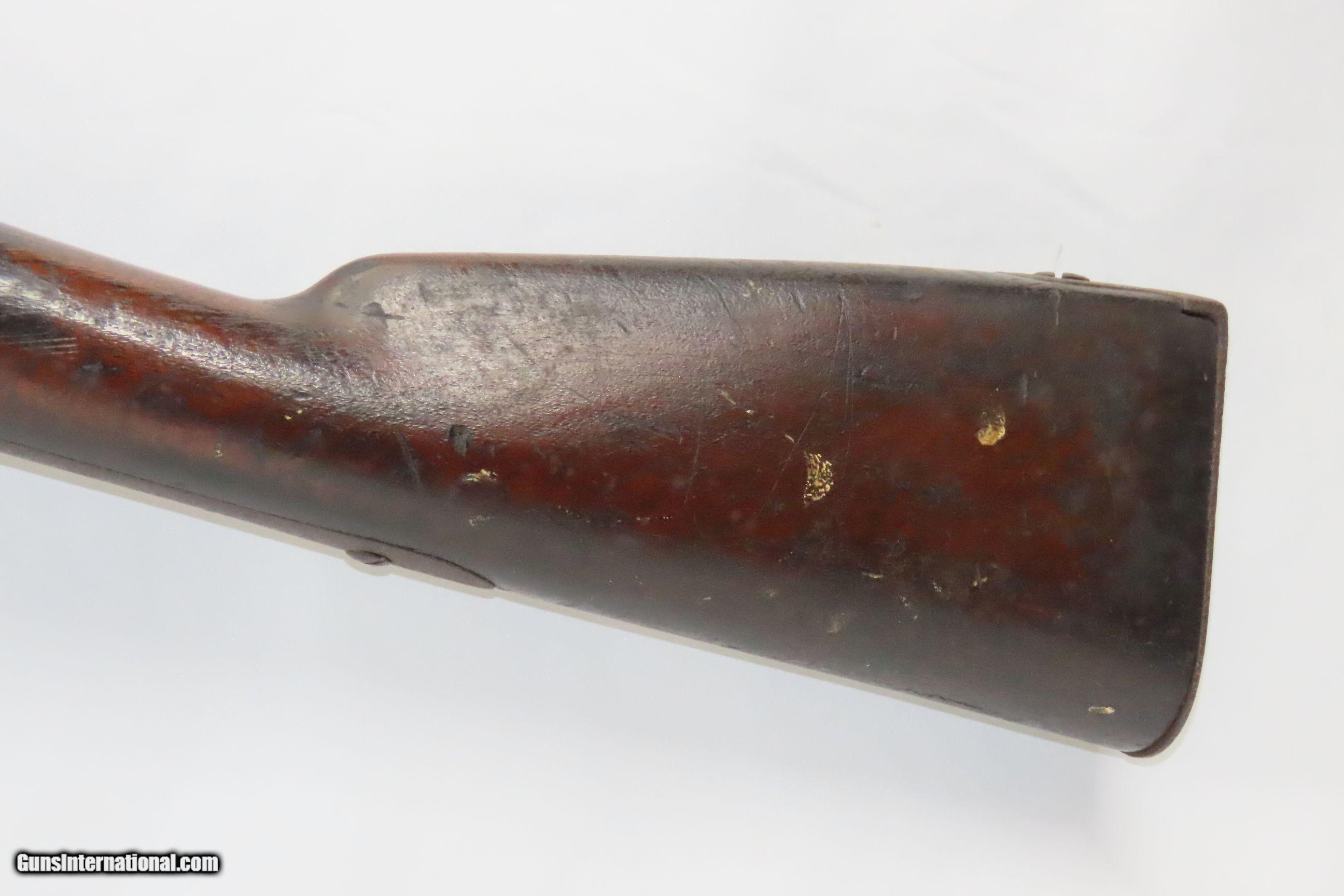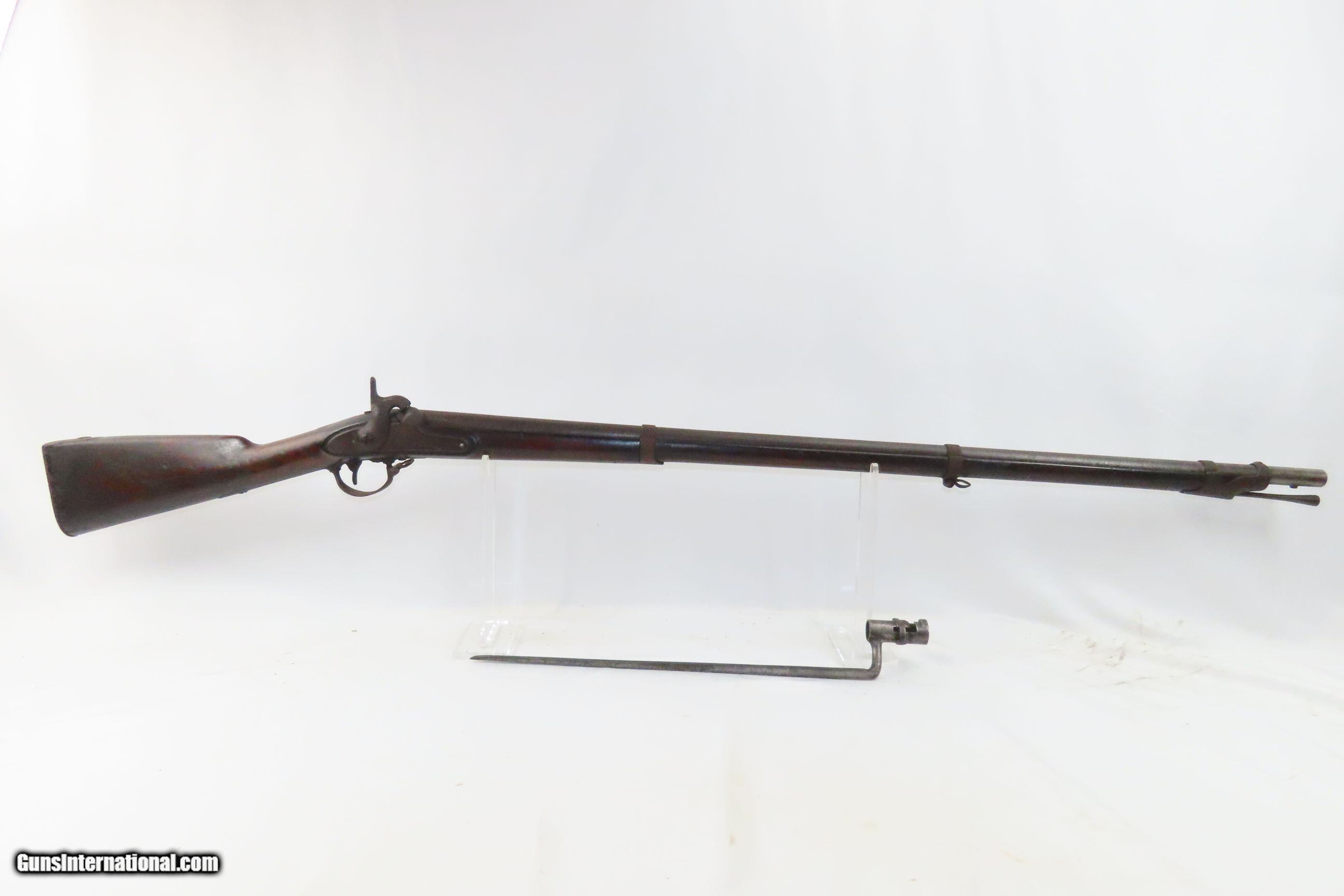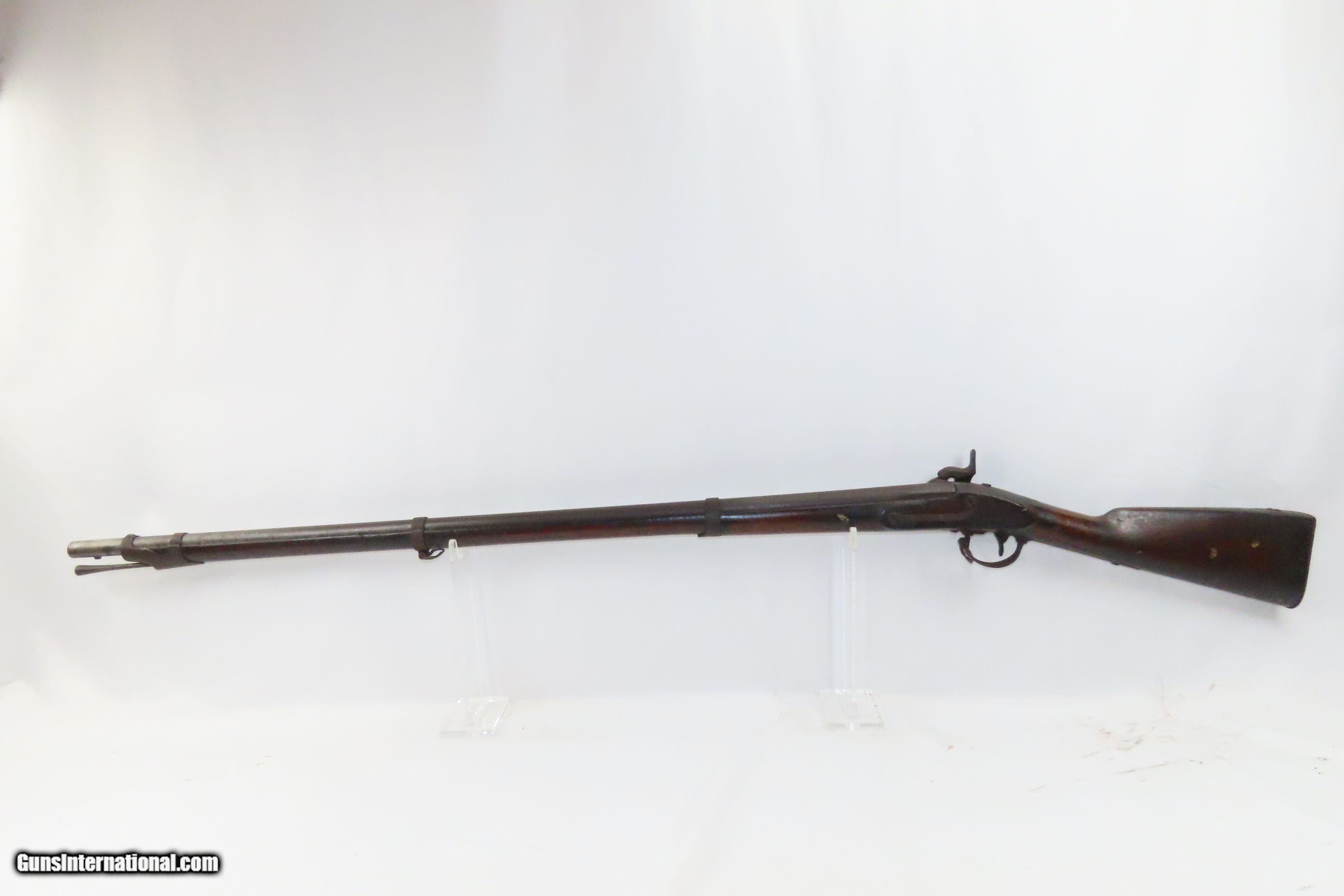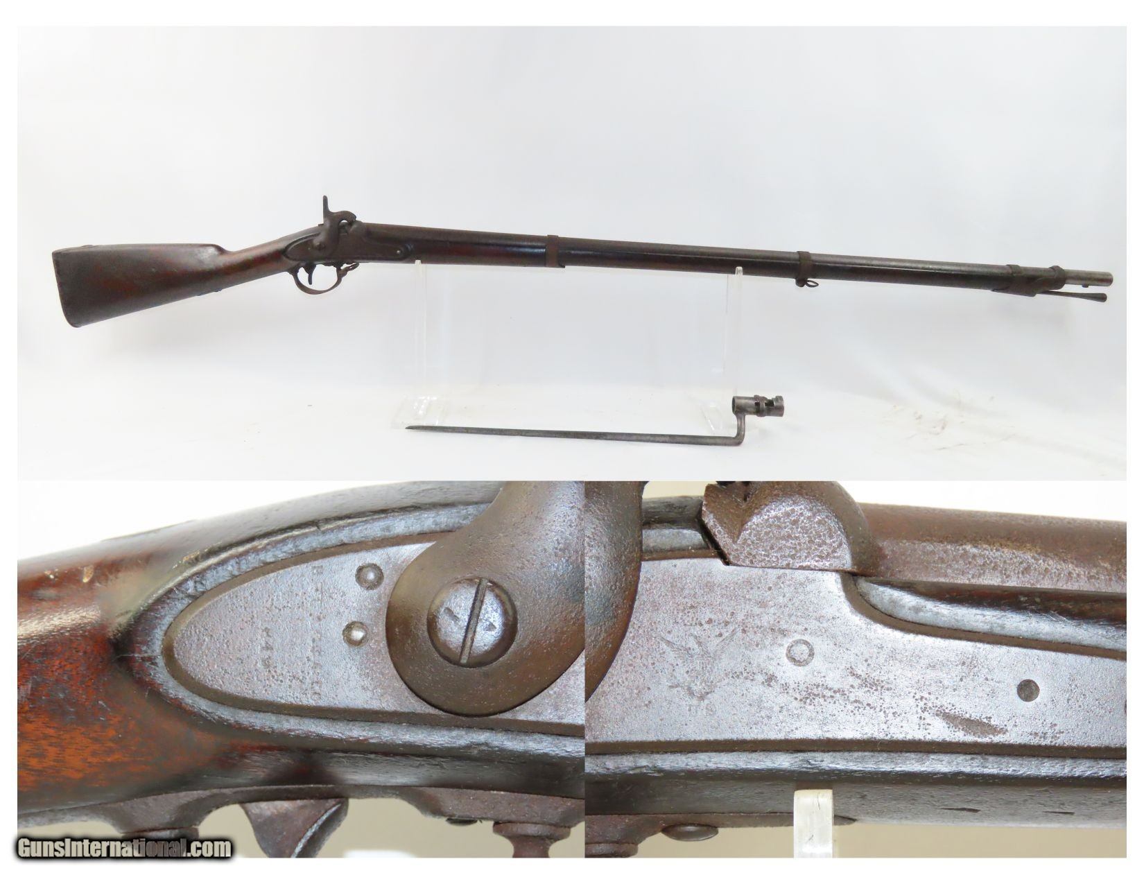 Description: SCARCE Antique BENJAMIN FLAGG M1842 .69 Musket CIVIL WAR Smoothbore Musket with BAYONET Here we present an antique Benjamin Flagg & Co. U.S. Model 1842 Percussion Musket, manufactured circa 1849 in Millbury, Massachusetts. From the period of 1844 until 1855, about 275,000 Model 1842 muskets were manufactured at the Springfield and Harpers Ferry Armories. Small numbers of the Model 1842 muskets were also made by private contractors. Some were made by A.H. Waters and Benjamin Flagg & Co, both of Millbury, Massachusetts. These were distinguished by having brass furniture instead of iron. A.H. Waters went out of business due to a lack of contracts in New England, and Flagg entered into a partnership with William Glaze of South Carolina. They relocated the machinery to the Palmetto Armory in Columbia, South Carolina. There were only 6,020 1842 type muskets produced on that contract and none were made there after 1853. These would have been in the hands of local militia all over the antebellum United States and used by both combatants at the outbreak of the American Civil War. Sights were not included in the smoothbore’s design but arrived later as the muskets were rifled later. The Model 1842 was the first regulation percussion musket to be manufactured at both Springfield and Harpers Ferry Armories, as well as the first to be produced by both national armories with fully-interchangeable parts. These were also the last .69 caliber smoothbore arms to be produced by the U.S. government. “B. FLAGG & Co. MILLBURY 1849” is marked vertically at the tail of the lock. The center of the lock features the US federal eagle over “US”. The overall condition is good. Weather marked and dark patina throughout. The action is excellent. The bore is smooth and slightly reflective. The stock shows the kind of use and age you would expect of a pre-American Civil War military arm. Own the original! This is a legitimate antique and not a reproduction. Barrel is 42 inches. Caliber: .69 Percussion Overall condition as seen in photos. Very Fast. Very Safe. FREE SHIPPING WORLDWIDE. Delivered directly to your door by express mail! Guaranteed AUTHENTIC & Includes CERTIFICATE OF AUTHENTICITY. ancestryguns $1900 #228524 SOLD Antique: Yes |