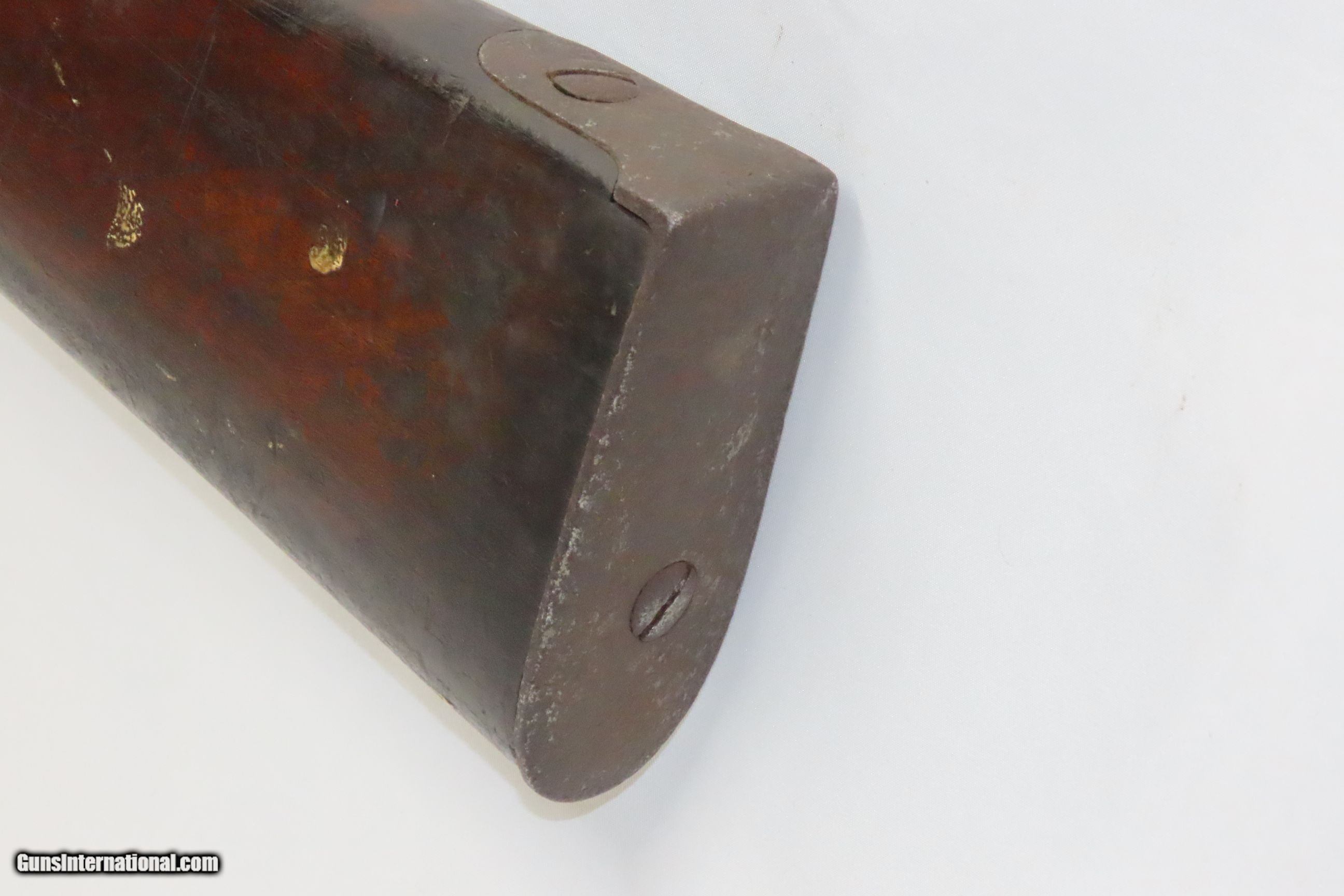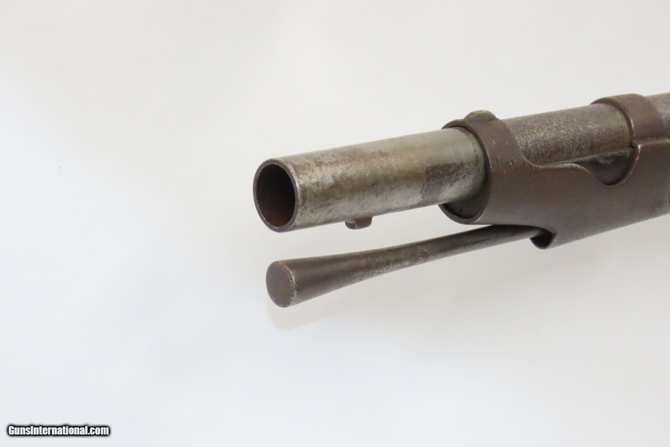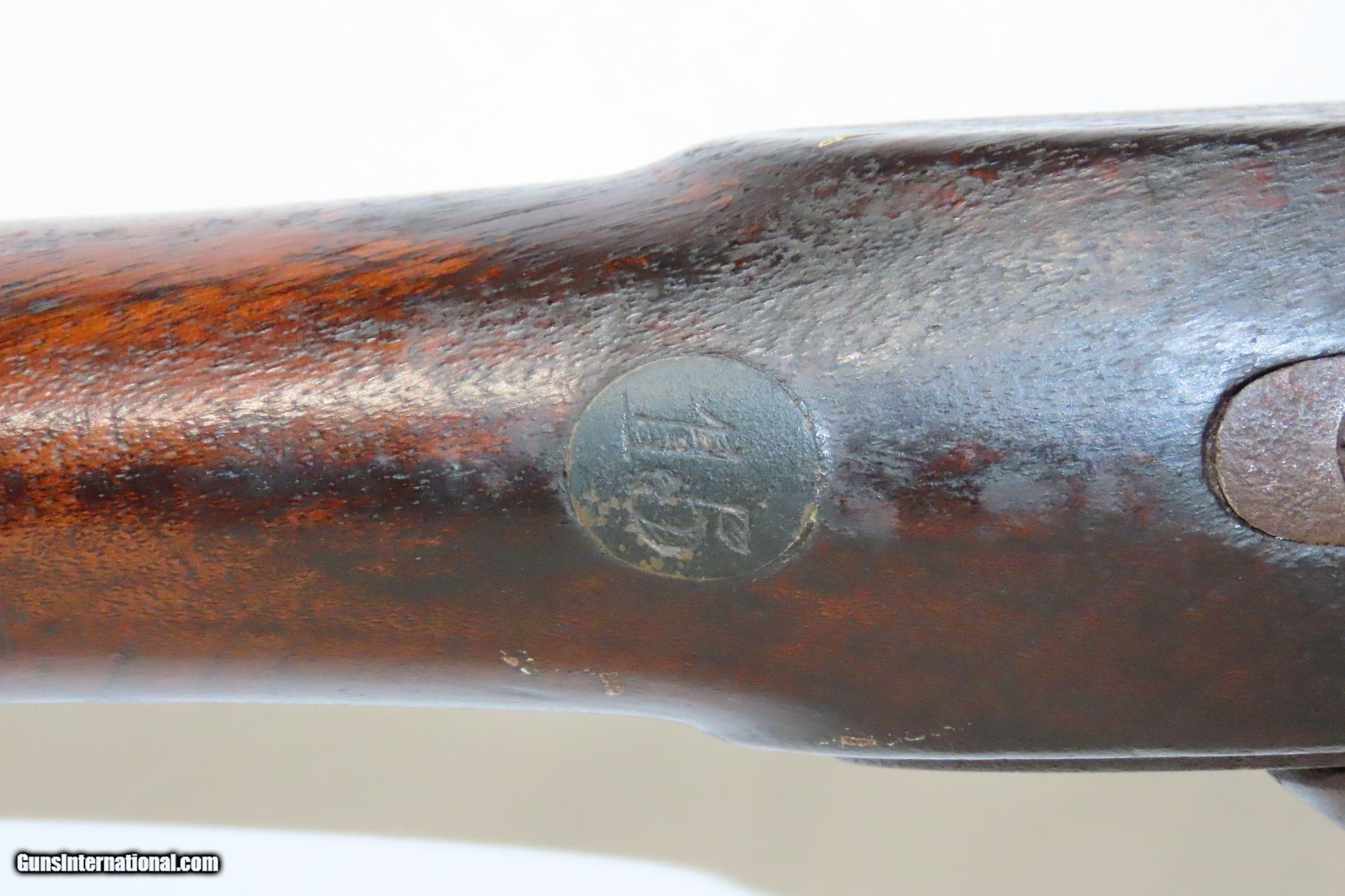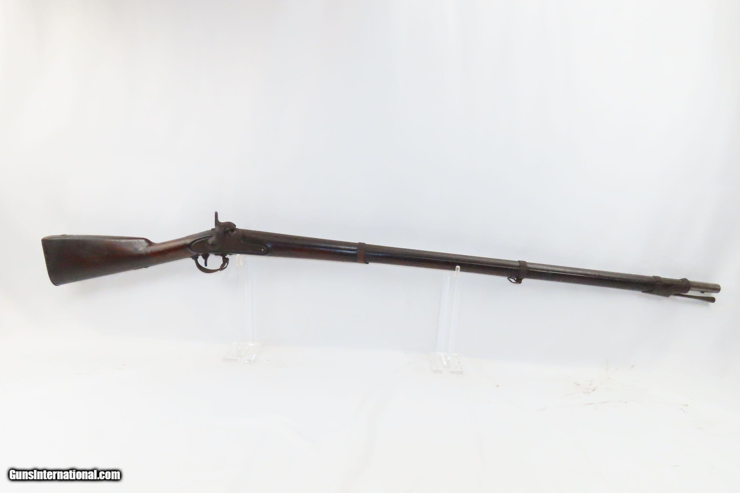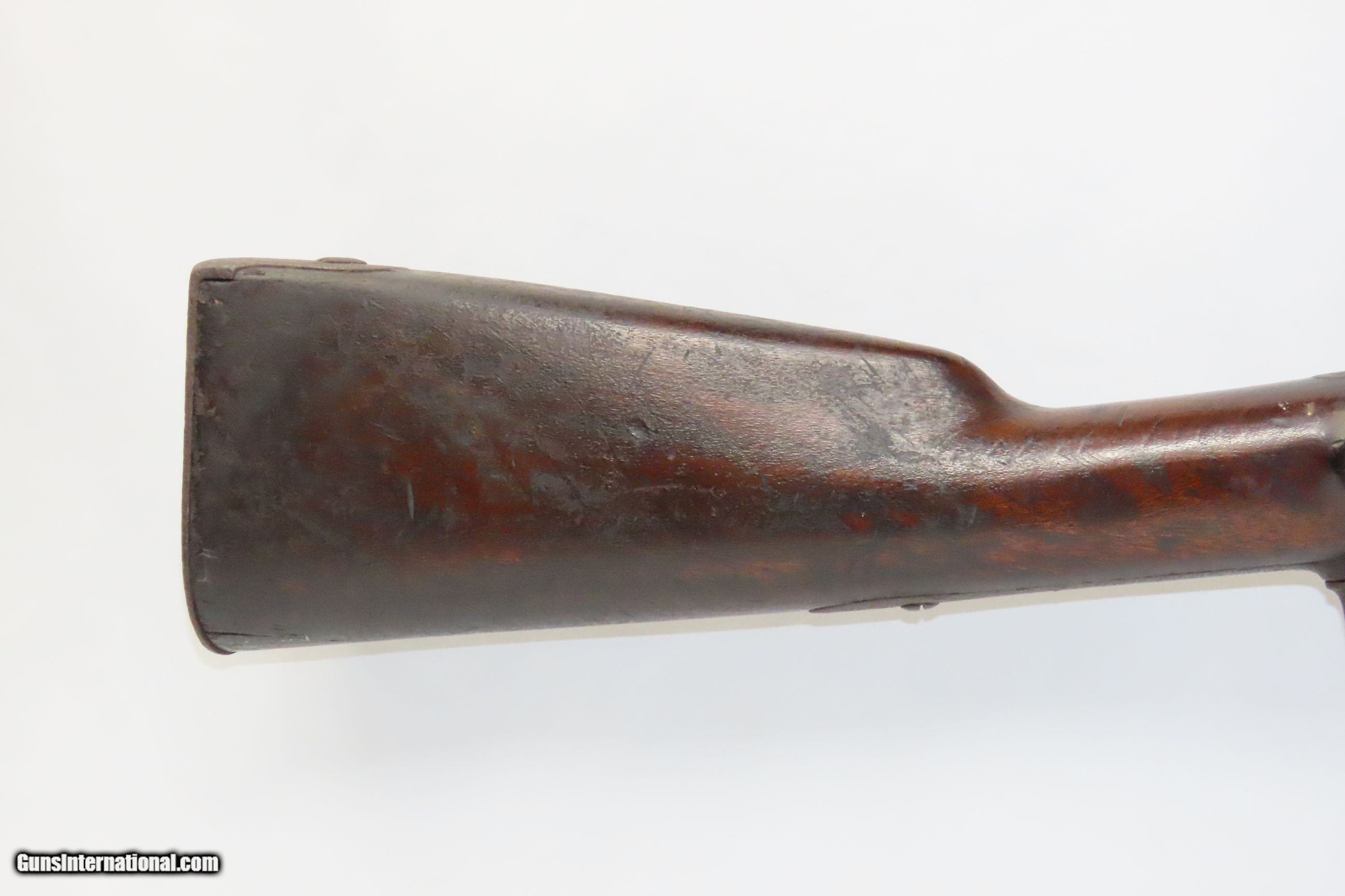 Description: SCARCE Antique BENJAMIN FLAGG M1842 .69 Musket CIVIL WAR Smoothbore Musket with BAYONET Here we present an antique Benjamin Flagg & Co. U.S. Model 1842 Percussion Musket, manufactured circa 1849 in Millbury, Massachusetts. From the period of 1844 until 1855, about 275,000 Model 1842 muskets were manufactured at the Springfield and Harpers Ferry Armories. Small numbers of the Model 1842 muskets were also made by private contractors. Some were made by A.H. Waters and Benjamin Flagg & Co, both of Millbury, Massachusetts. These were distinguished by having brass furniture instead of iron. A.H. Waters went out of business due to a lack of contracts in New England, and Flagg entered into a partnership with William Glaze of South Carolina. They relocated the machinery to the Palmetto Armory in Columbia, South Carolina. There were only 6,020 1842 type muskets produced on that contract and none were made there after 1853. These would have been in the hands of local militia all over the antebellum United States and used by both combatants at the outbreak of the American Civil War. Sights were not included in the smoothbore’s design but arrived later as the muskets were rifled later. The Model 1842 was the first regulation percussion musket to be manufactured at both Springfield and Harpers Ferry Armories, as well as the first to be produced by both national armories with fully-interchangeable parts. These were also the last .69 caliber smoothbore arms to be produced by the U.S. government. “B. FLAGG & Co. MILLBURY 1849” is marked vertically at the tail of the lock. The center of the lock features the US federal eagle over “US”. The overall condition is good. Weather marked and dark patina throughout. The action is excellent. The bore is smooth and slightly reflective. The stock shows the kind of use and age you would expect of a pre-American Civil War military arm. Own the original! This is a legitimate antique and not a reproduction. Barrel is 42 inches. Caliber: .69 Percussion Overall condition as seen in photos. Very Fast. Very Safe. FREE SHIPPING WORLDWIDE. Delivered directly to your door by express mail! Guaranteed AUTHENTIC & Includes CERTIFICATE OF AUTHENTICITY. ancestryguns $1900 #228524 SOLD Antique: Yes |