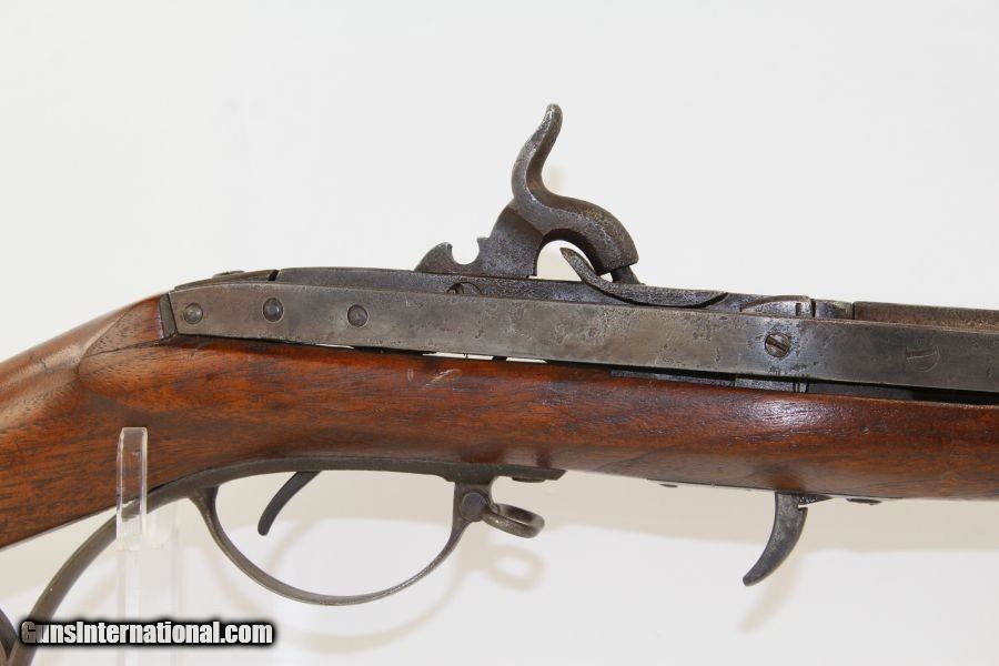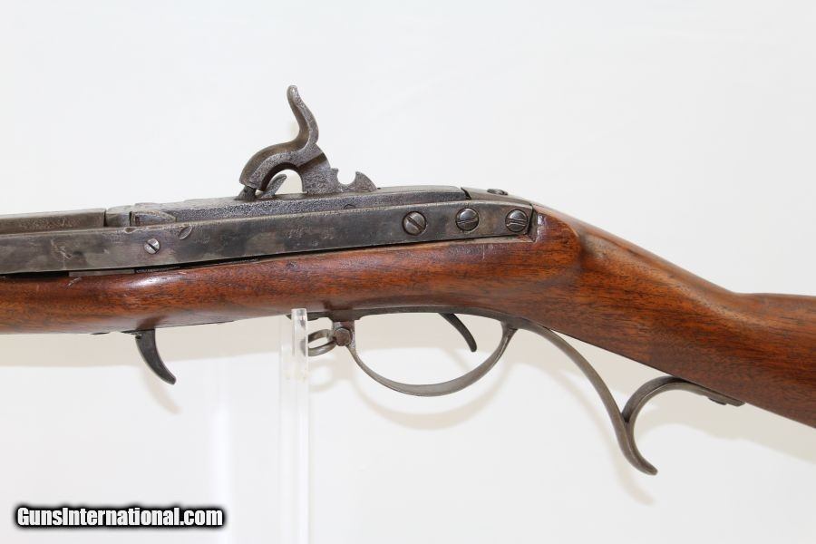 Description: Scarce HARPERS FERRY US M1819 Hall Conversion Originally Flintlock Converted to Percussion Dated “1831” Here we present a U.S. Harpers Ferry Hall Breech-Loading Model 1819 Percussion Musket, manufactured in 1831. John Harris Hall was an innovative inventor and forward thinking gunsmith during his time. Aside from his contributions to mass production, Hall also designed and developed the M1819 Hall Rifle that bears his name. Though a single shot long gun, the best quality of this rifle was its patented breech loading system which allowed the operator to load and reload his weapon at the action as opposed to the muzzle. This meant the shooter no longer had to stand his weapon on its butt and engage in a time-consuming reloading process. The M1819 Hall Rifle became the first breech loading rifle in the world to be adopted in significant quantities by a national army. In 1819, the United States Army formally adopted the Hall Rifle into inventory with an order for 1,000 Hall Rifles, thus earning the designation of “Model 1819”. These guns were produced out of the Harpers Ferry Arsenal utilizing Hall’s assemble line methodology. As is this one, many Model 1819 muskets saw conversion to percussion in the years leading up to or even during the American Civil War, essentially converting it to a Model 1841 Hall. In total, 23,500 Model 1819 Hall Rifles were produced. Hall died long before the war on February 26, 1841, though not before leaving his imprint on firearms and mass production history. The lock is marked “J.H. Hall/H. Ferry/US/1831”. The overall condition is fair. The iron surfaces show weathering. The markings are legible. The barrel is slightly canted. The stock has been refinished. The bore is dark. The action is functional, though the mainspring is on the light side. Nevertheless, here is an example of a scarce US small arm that was revolutionary in its day and saw a lot of significant history pass since its creation. Own the original! This is a legitimate antique and not a reproduction. Barrel is 32 ¾ inches. Caliber: .52 Overall condition as seen in photos. Very Fast. Very Safe. FREE SHIPPING WORLDWIDE. Delivered directly to your door by express mail! Guaranteed AUTHENTIC & Includes CERTIFICATE OF AUTHENTICITY. ancestryguns $1950 #8242 SOLD Antique: Yes |
