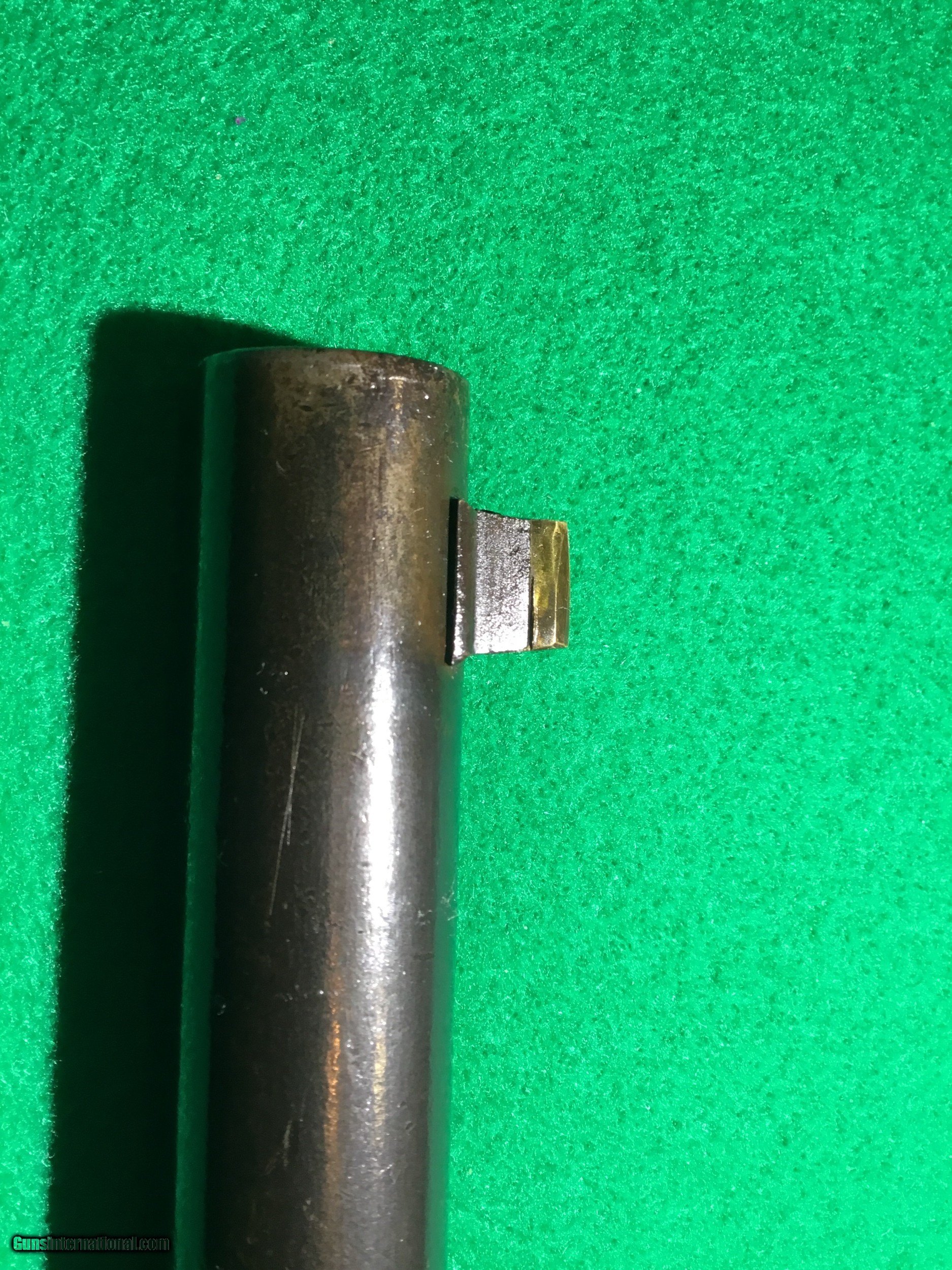 Description: Smith Carbine Civil War Era , Mfg. Mass Arms Co. .50 cal. The Smith Calvary carbine .50 caliber – had a unique rubber cased bullet. This Civil War arm was an interesting “top break“ breech-loading carbine. This Carbine is .50 caliber, percussion, in nice condition. The Union received almost the entire wartime production of all Smith Carbines, slightly over 30,000 were made. Connecticut, Illinois, Massachusetts, New York, Ohio, Pennsylvania, West Virginia, and an Alabama Union Calvary unit carried this arm. The serial number of this example is 12008 which is stamped on both the receiver and barrel breach assembly. It is also equipped with a saddle ring and bar. Brass push bar adds some nice color to the Carbine Note : The left side of the receiver, is stamped vertically, with "ADDRESS / POULTNEY & TRIMBLE / BALTIMORE, U.S.A." They were the distributors of Smith Carbines. Below the address line, also stamped vertically, just behind the ring bar, is "SMITH'S PATENT / JUNE 23 1857." Towards the front left side of the receiver, stamped at a slight angle , is "MANUFACTURED BY MASS ARMS CO. CHICOPEE FALLS.". The stampings are all still crisp and clear. The inspector mark is “LJR” stamped in cursive with a rectangle border around it. There is another oval stamped on the stock, it is diffi to see the inscription. There is no inspector’s mark that I can find on the barrel. Both the pieces, the barrel and the receiver, are marked 12008. The front sight is a thick brass blade. The rear site has no numbers on it, it moves and it looks to be original too. The rifling is good but shows some pitting. The barrel is nice and with period dark bluing and is very nice for it’s age (could be a period replacement?). The stock looks as if it has been repaired at some point during the war, I think by a US miltary armorer (the second inspestor‘s mark?). Nice oval washer and screw under forend grip wood. Please look at photos. No international shipping. Shipping cost to be determined by location and a time of sale. Thanks for looking. SOLD Antique: Yes Manufacturer: Massachusetts Arrms Company Model: Smith Carbine.50 cal Serial Number: 12008 Caliber Info: .50 Condition: Good Metal Condition: Good |