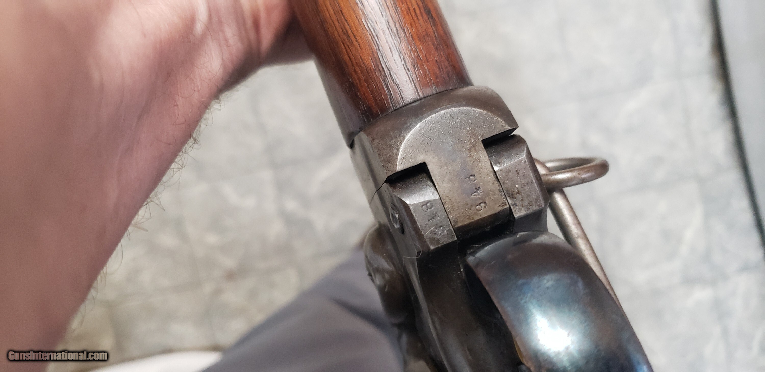 Description: Smith carbine is the best I've ever seen. Look at the pictures judge for yourself. Saddle ring carbine, 3 diget serial number. Shipping will be actual Shipping cost. Thank you and God bless America Antique: Yes Rifle Caliber: .50, .50 Spencer Manufacturer: Poultny and trimble Model: Smith carbine Serial Number: 948 Barrel Length: 20 Condition: Excellent Metal Condition: Fine Wood Condition: Excellent Bore Condition: Excellent Barrel Type: Round Action: Break action Stock: Wood Fore End: Wood Rib: N0 Finish: Blued / case coloring Sights: Adjustable Item Location: Maine Price: $11,000.00 Contact Seller |