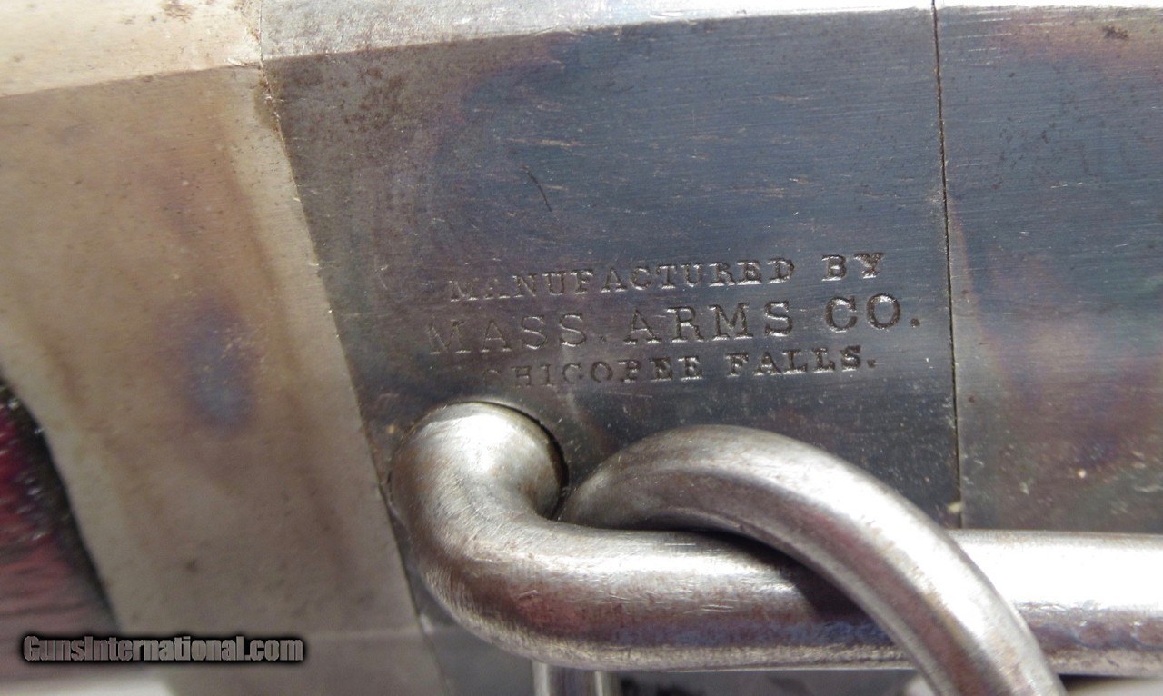 Description: Smith Civil War Carbine; Serial No. 11727; Early Model Manufactured by Mass. Arms Company; 50 Cal. Percussion Breech Loader; 21-5/8” Round Barrel; Octagon to Rear of Barrel Band; Fantastic Over-All Condition; Most of Original Finish Present; Perfect Function and Bore; Strong Cartouche on Left Side of Stock (See Photos for Condition); LIQUIDATING PERSONAL COLLECTION; Price: $3,500 Shipped; Price includes insured shipping; return policy: three days inspection from the date the items received; full refund of shipping both ways ONLY IF THE ITEM IS MISREPRESENTED. SOLD Antique: Yes Manufacturer: Mass. Arms Co. Model: Smith Carbine Serial Number: 11727 |