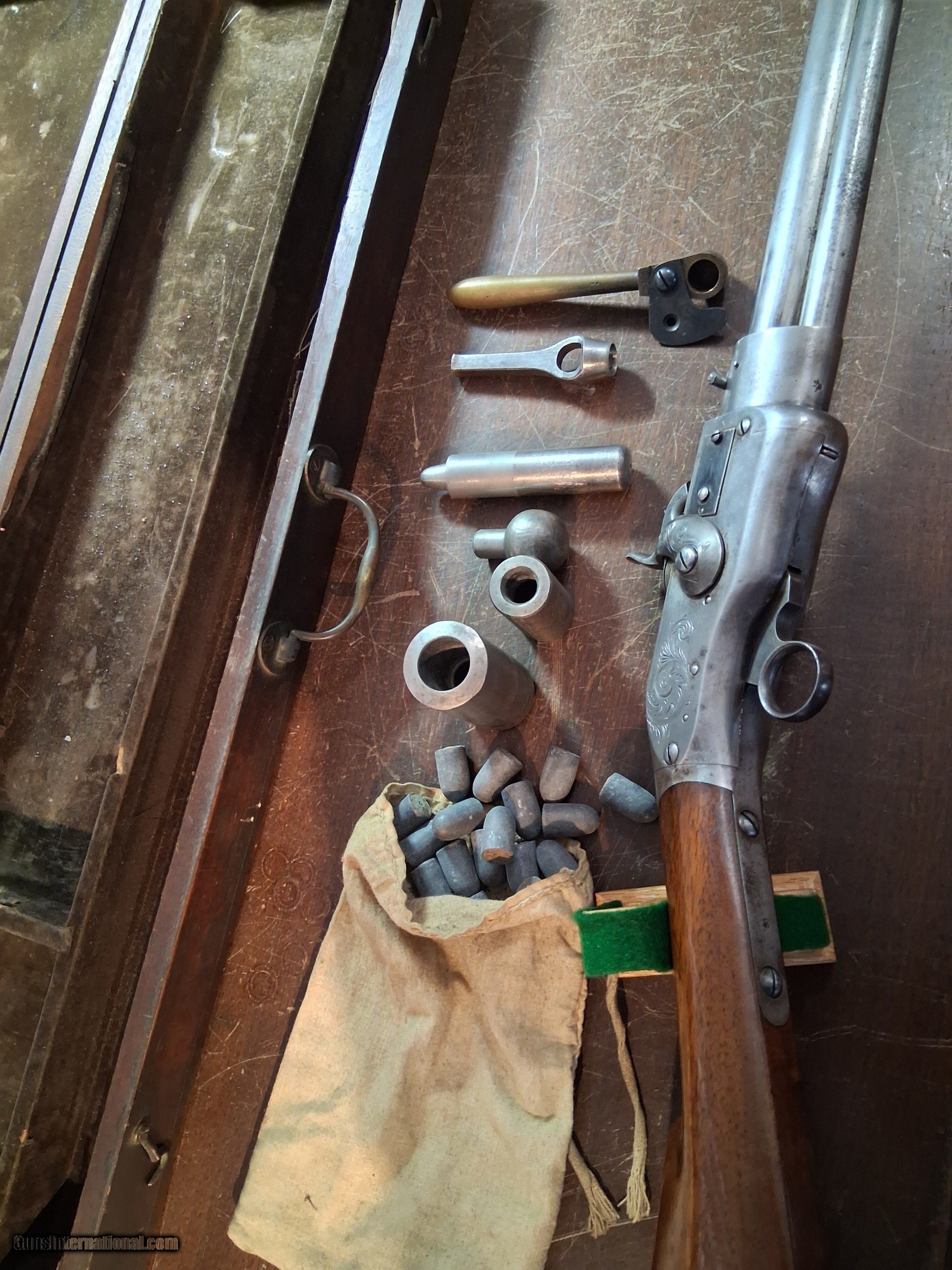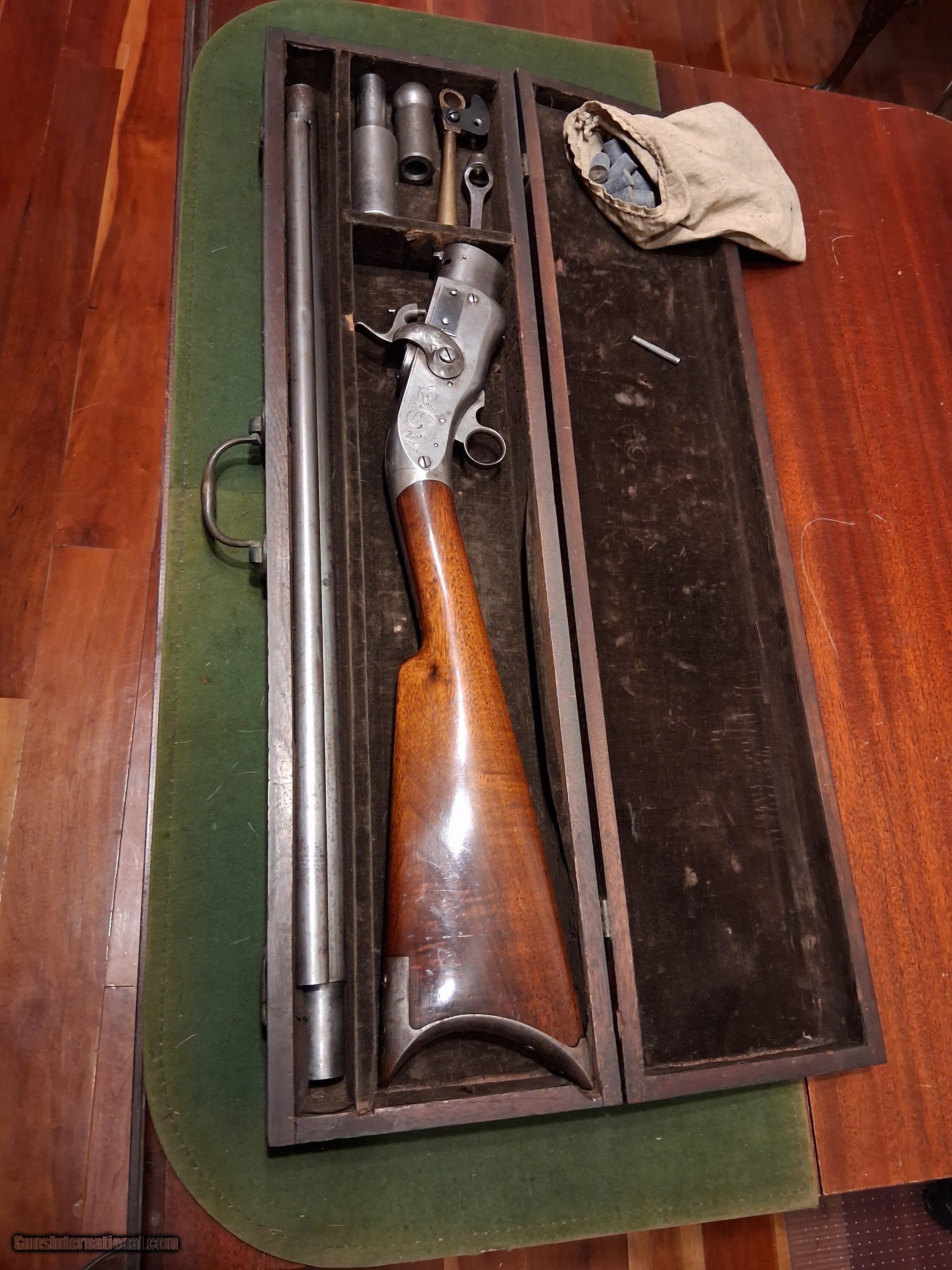 SMITH JENNINGS 1st model REPEATING RIFLE 54cal PERCUSSION with LOADING TOOLS & CASE 1850